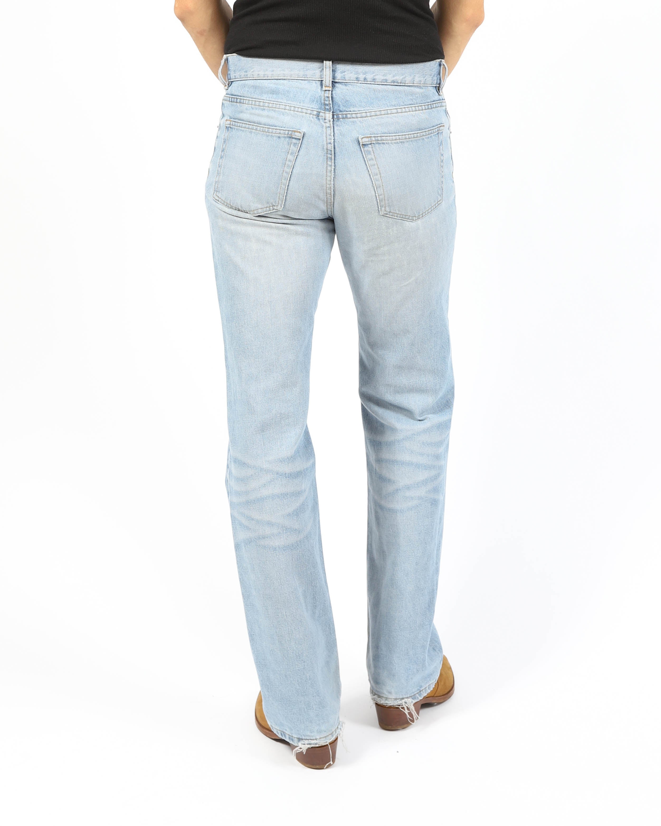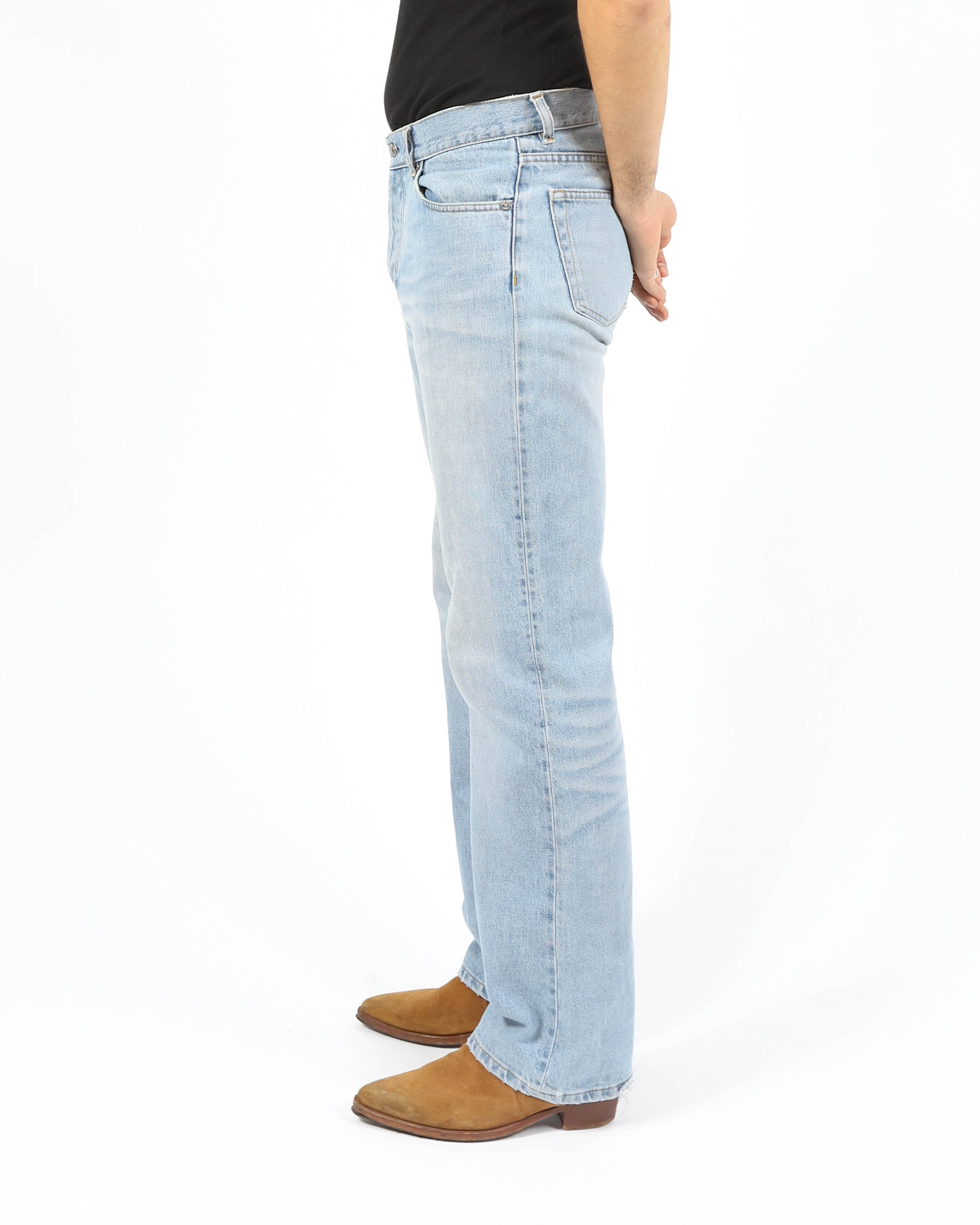 Classic five pocket construction and tonal stitching keep the design minimal and direct, emphasizing the quality of the denim. The silhouette draws from Helmut Lang’s late 90s approach to essential wardrobe pieces, combining precision with quiet restraint.