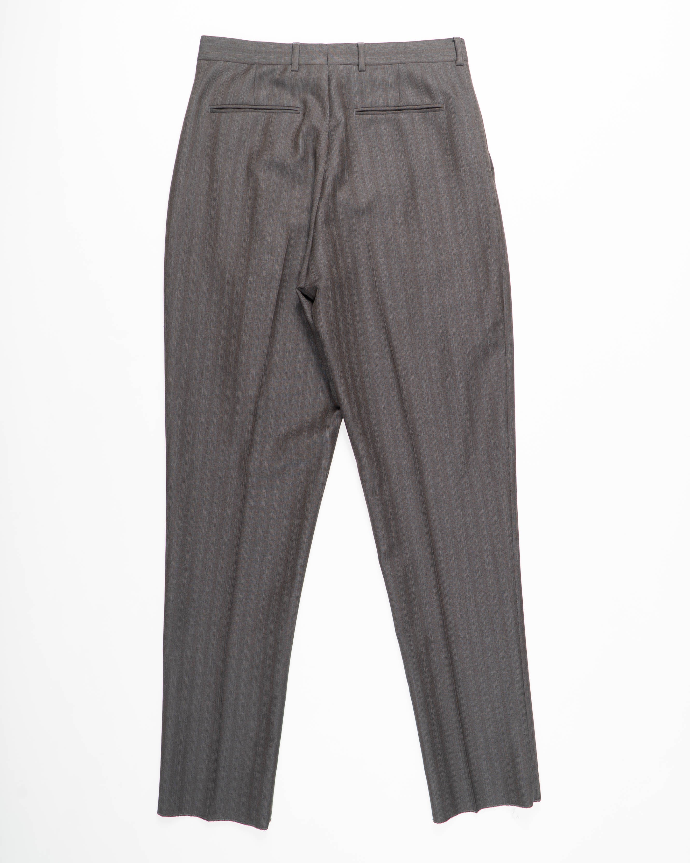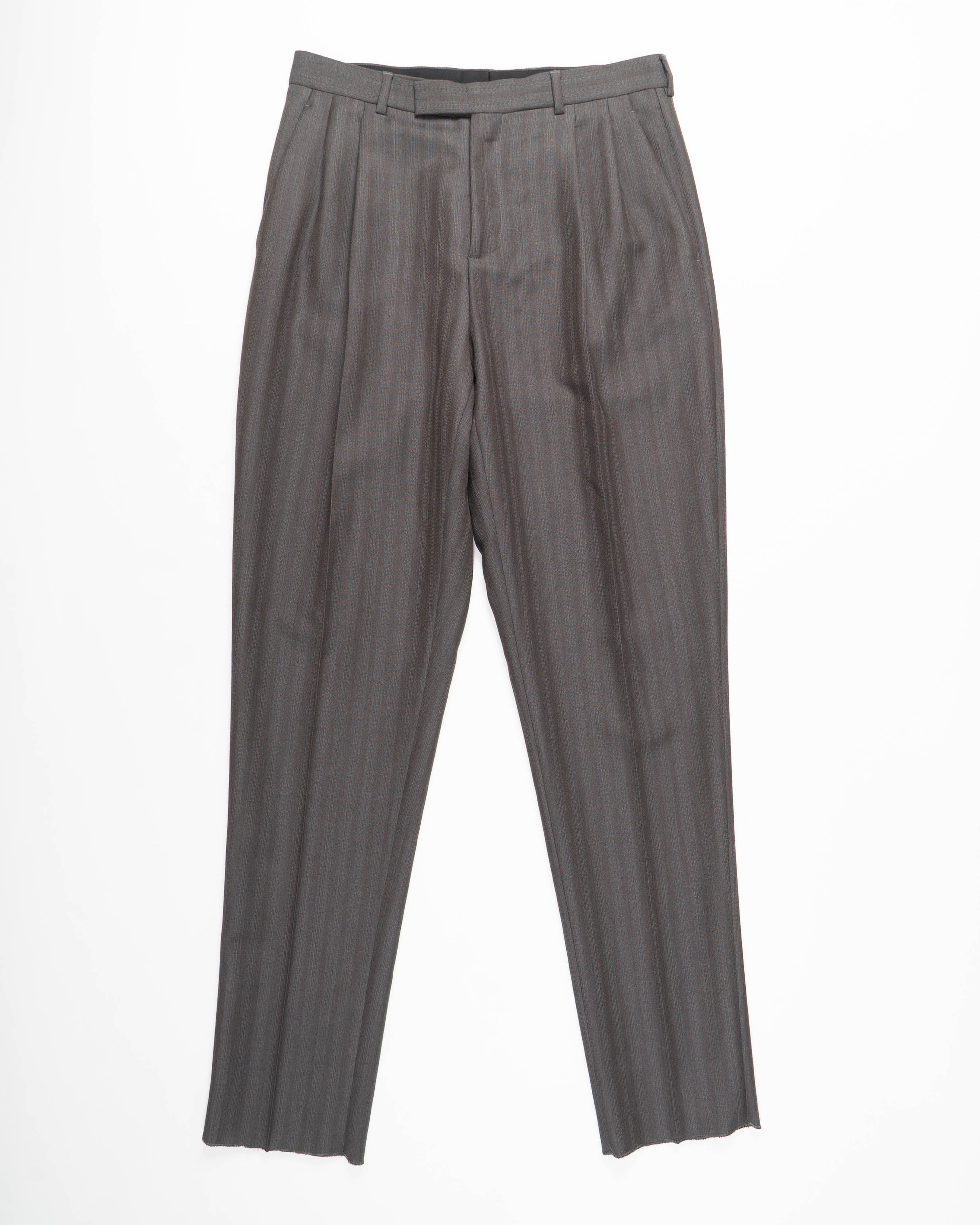These high waisted pleated trousers in grey wool by Dior are understated yet beautifully structured. The soft, midweight wool drapes elegantly while maintaining a clean silhouette.