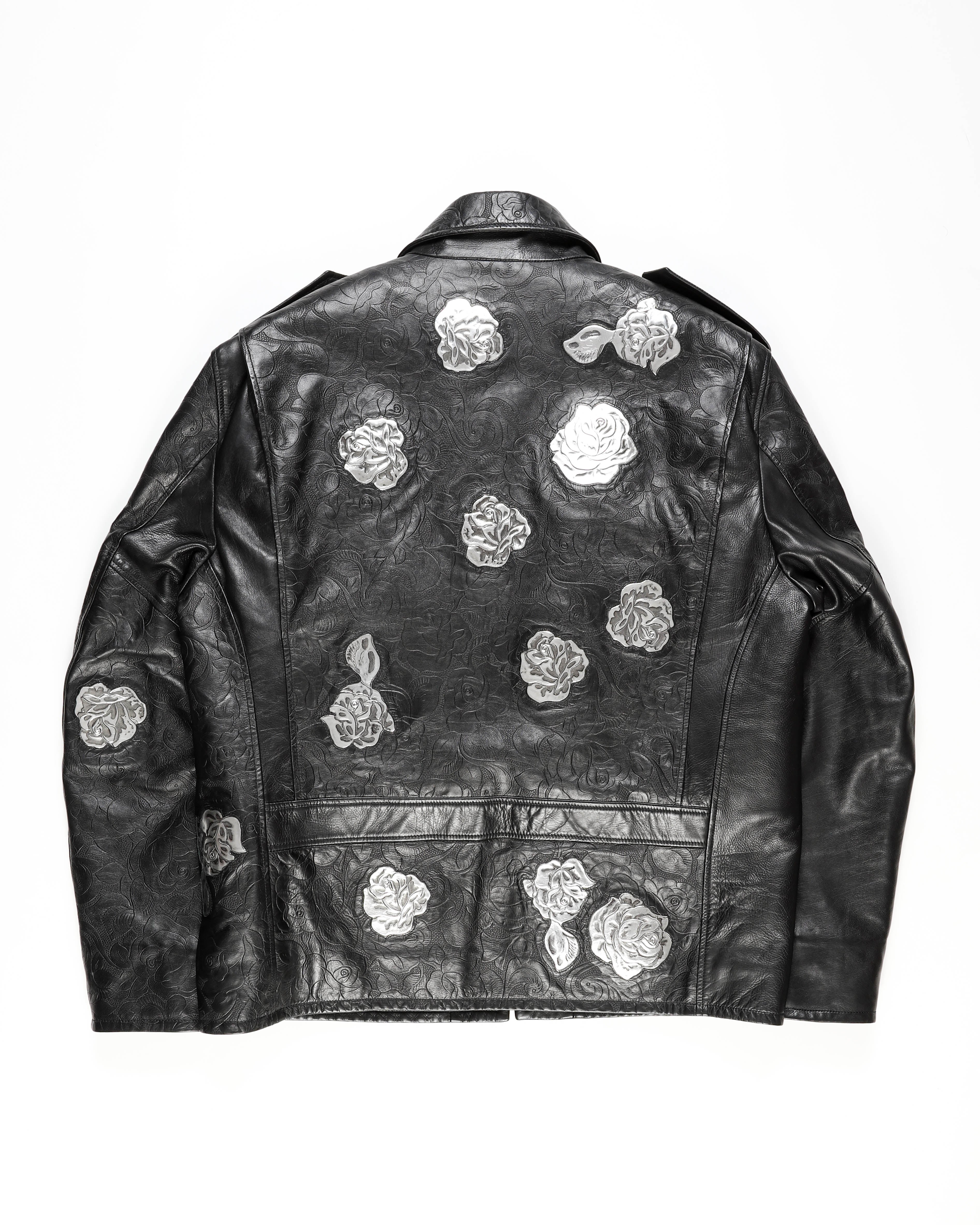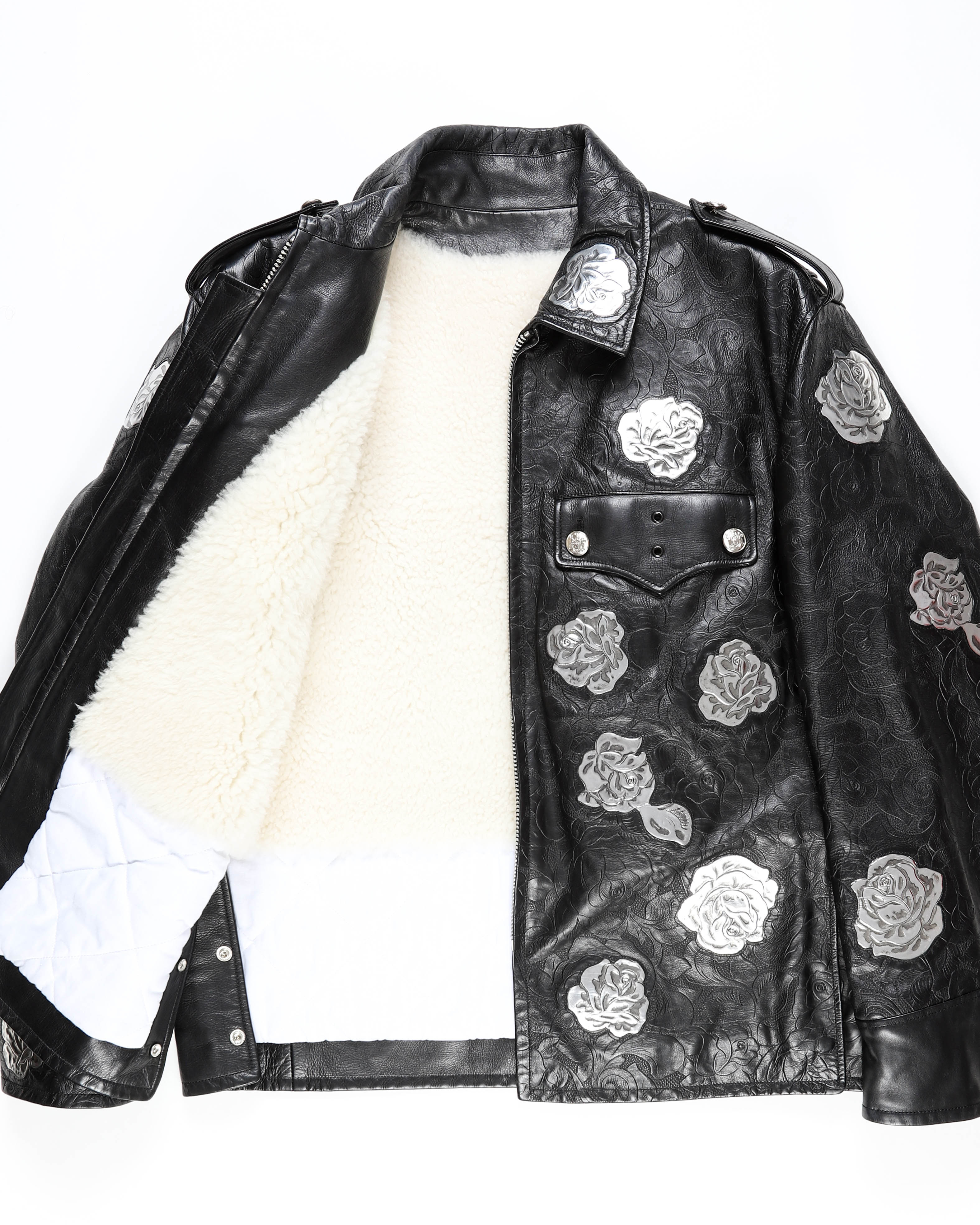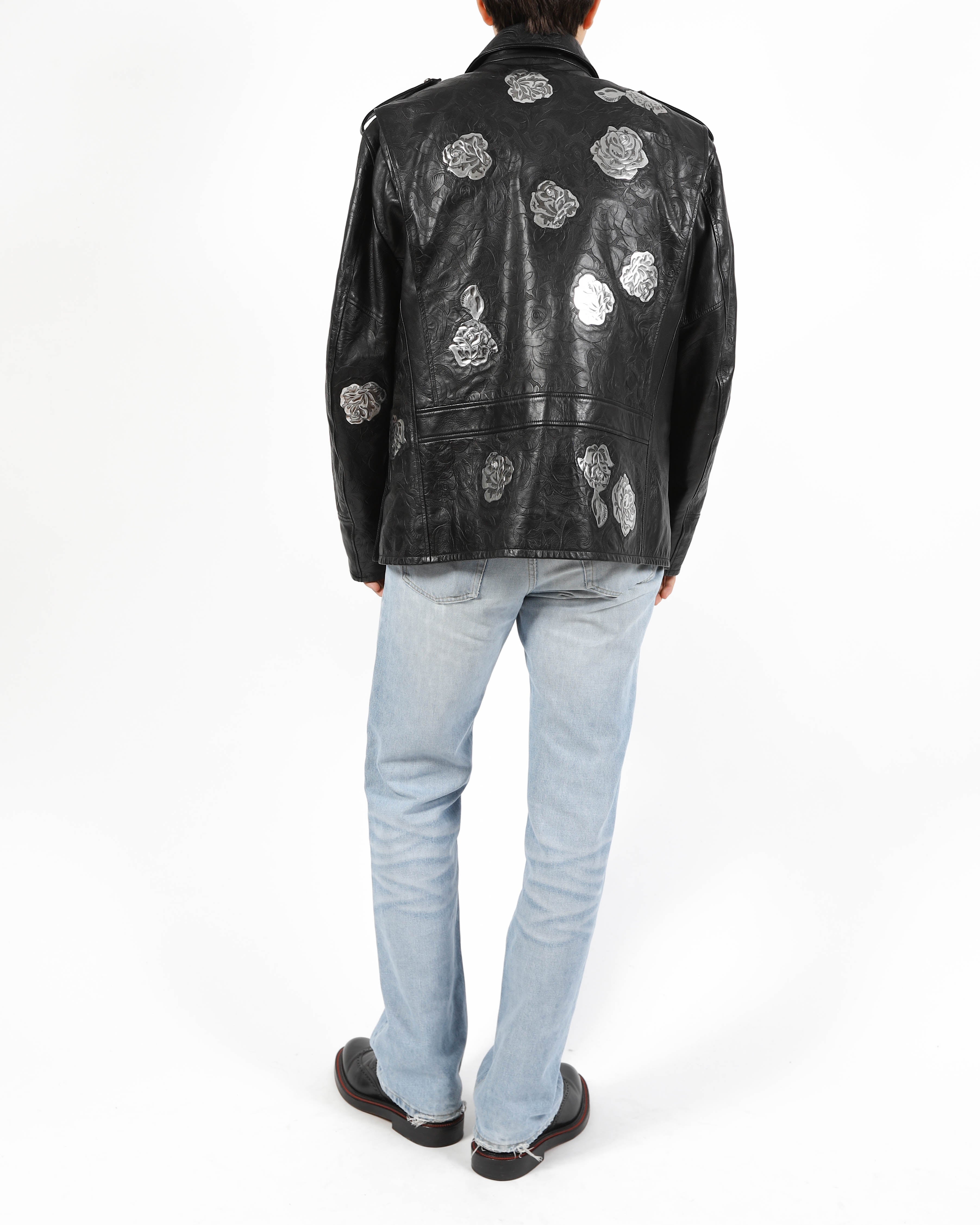 FW17 Rose Metal Appliqué Police Leather Jacket