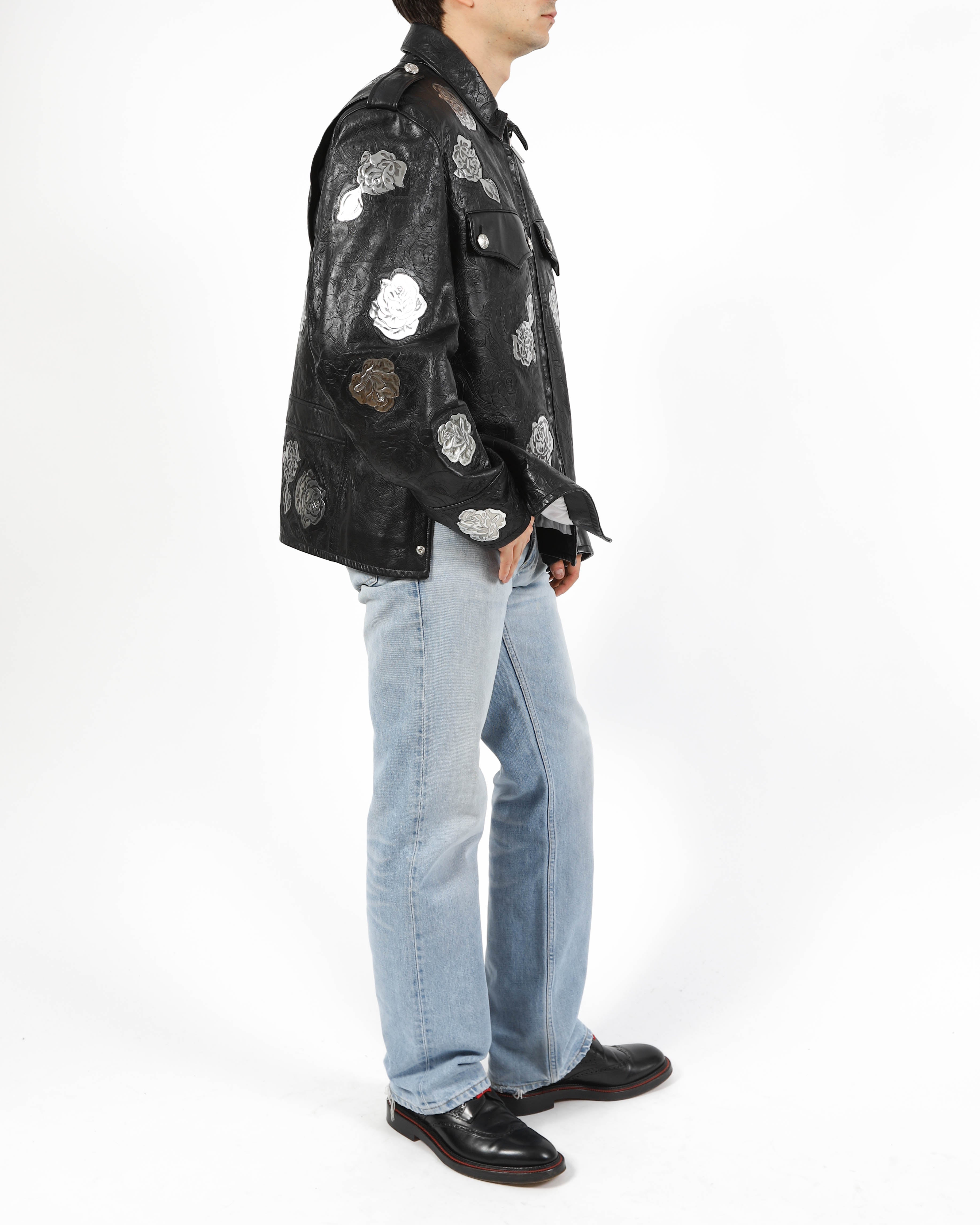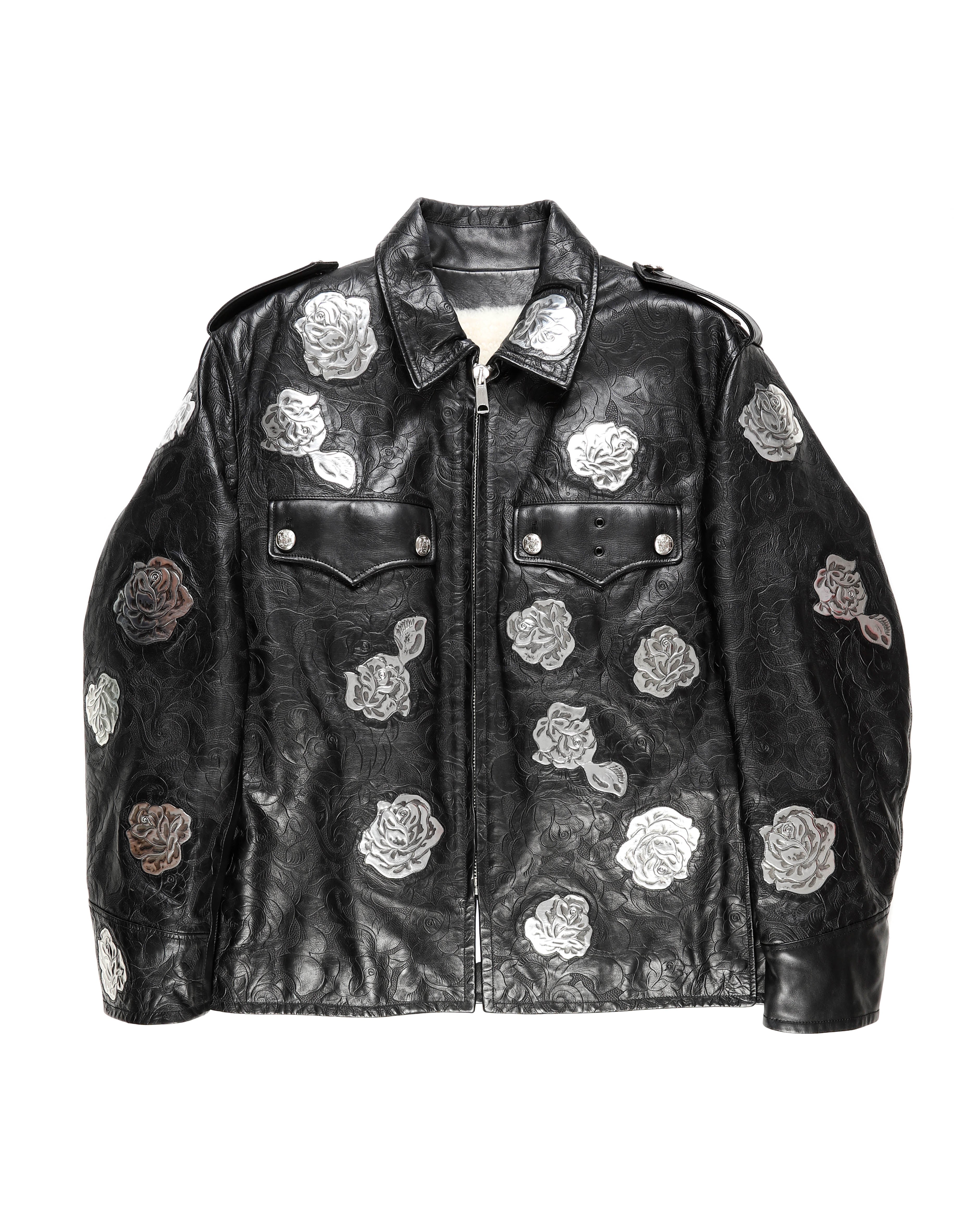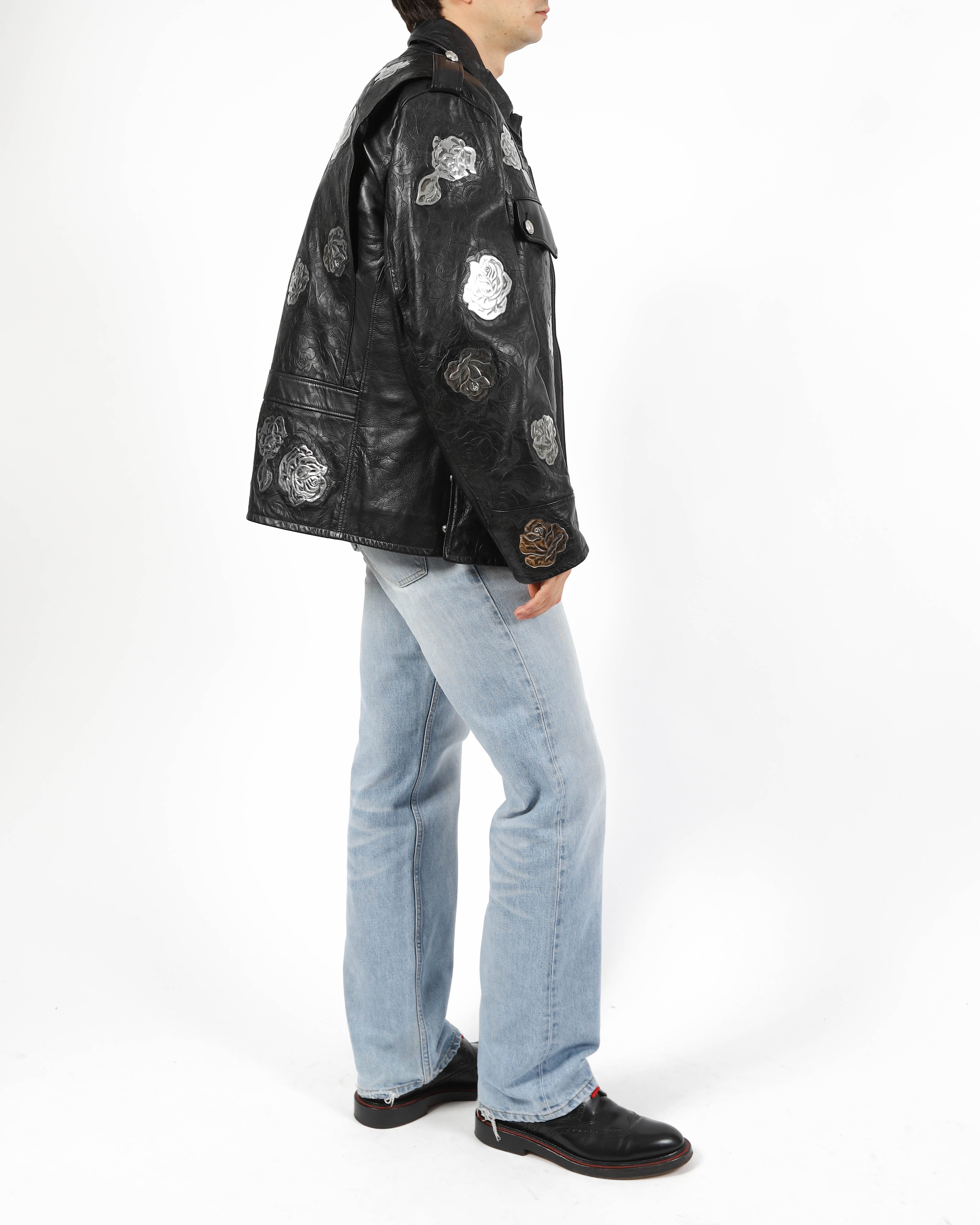 FW17 Rose Metal Appliqué Police Leather Jacket