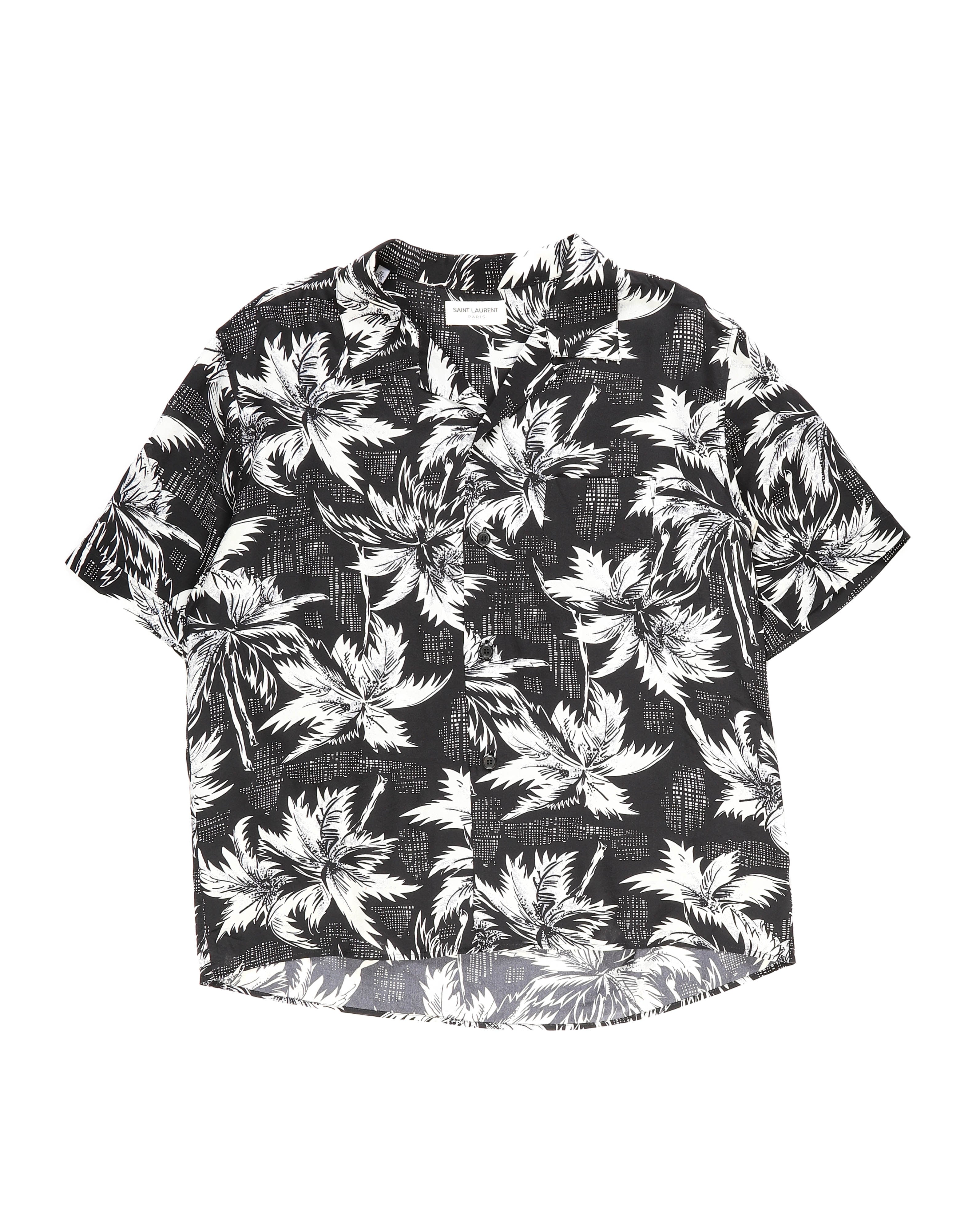 SS14 Shortsleeve Shirt in Black & White Floral Printed Silk