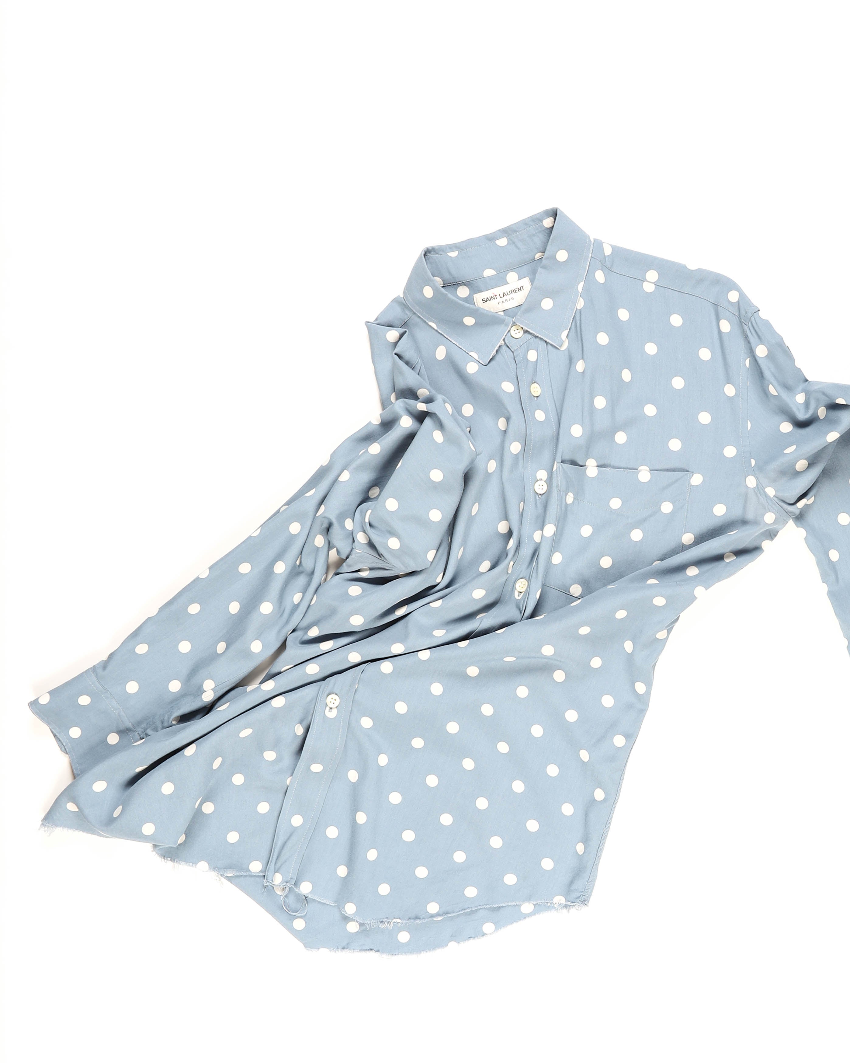 The print is playful but restrained, keeping the overall look clean and wearable. Released in SS16 by Saint Laurent the piece reflects a casual yet intentional approach to pattern, material, and cut.