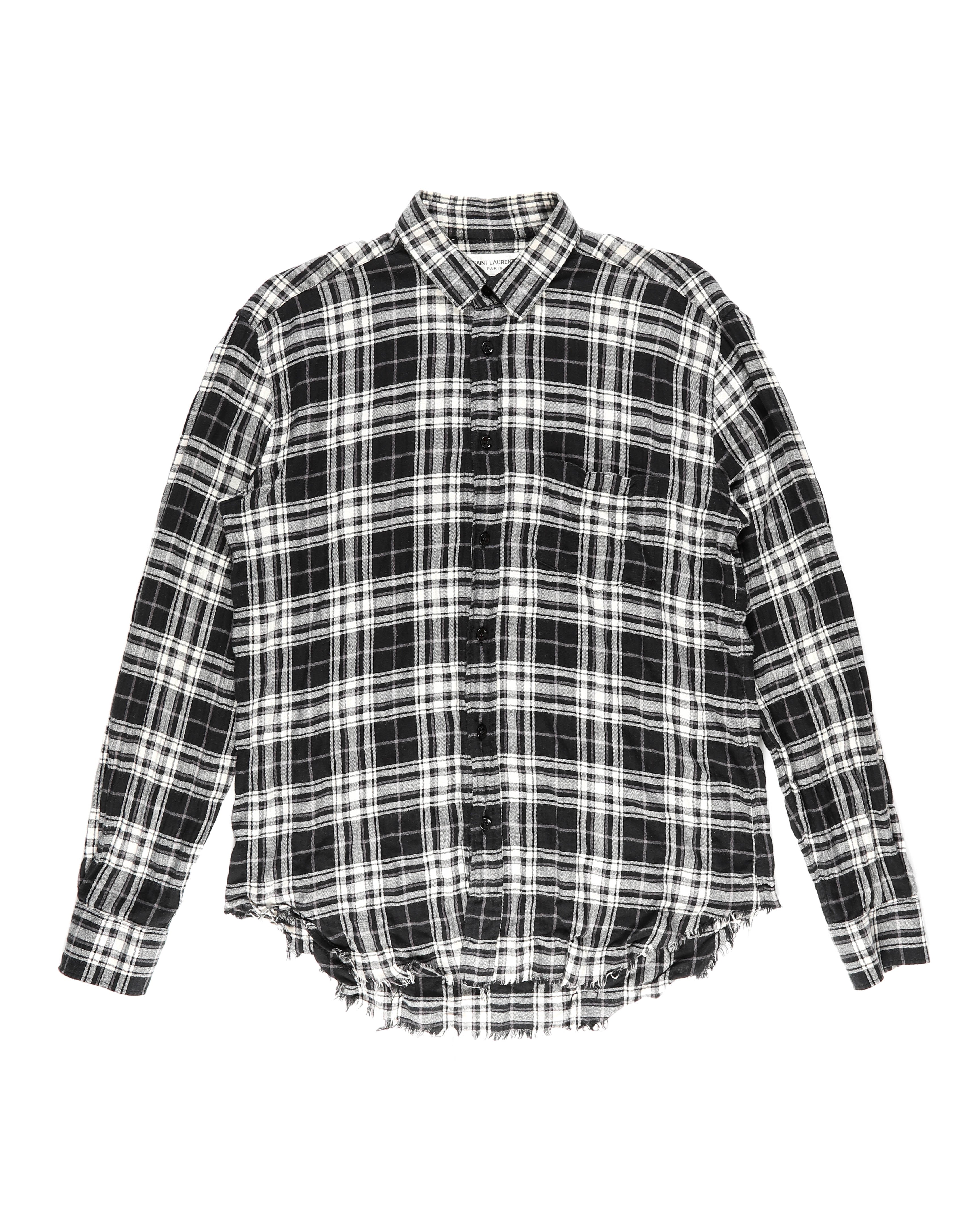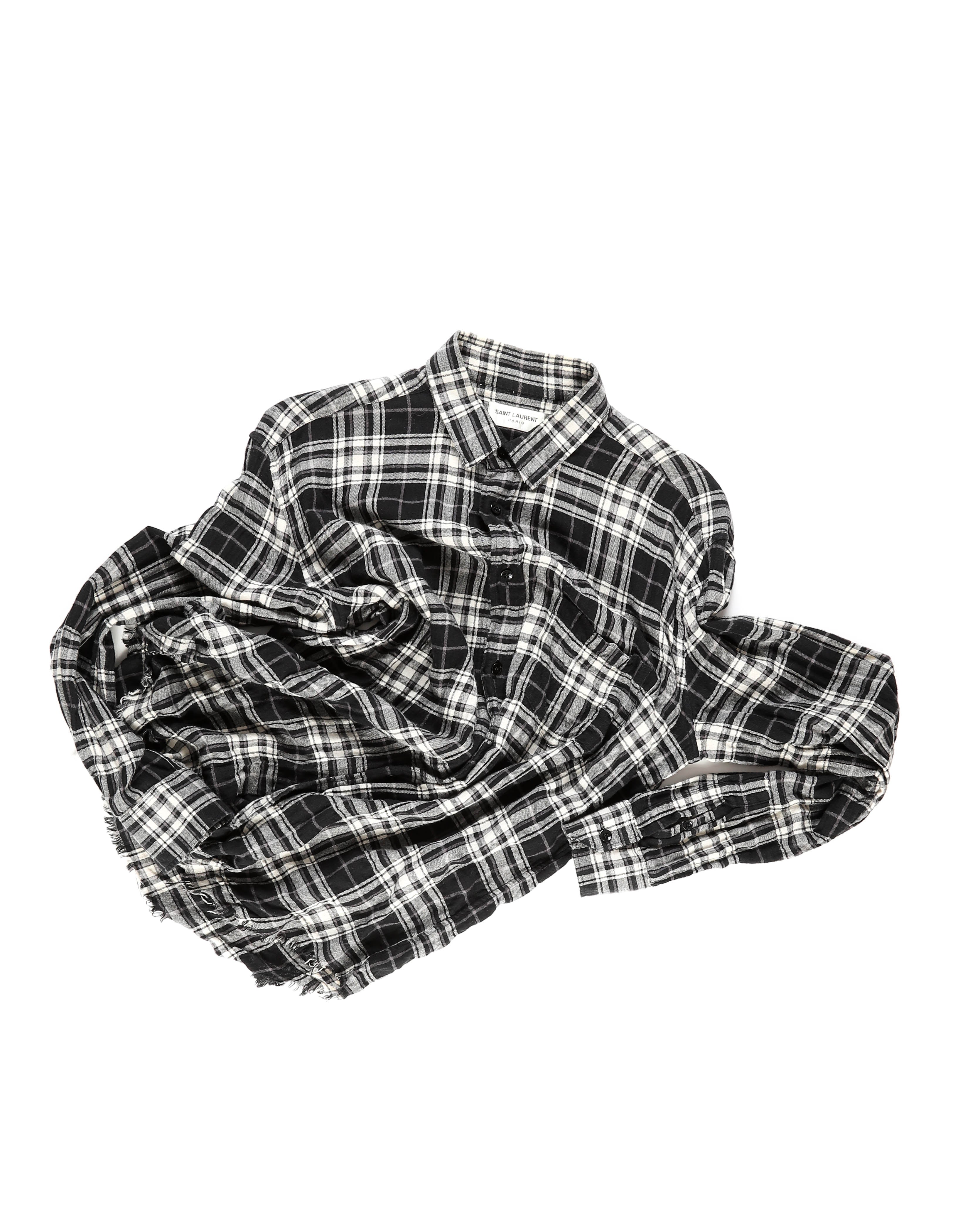 SS17 Crinkled Raw Hemk Flannel in Black & White Wool
