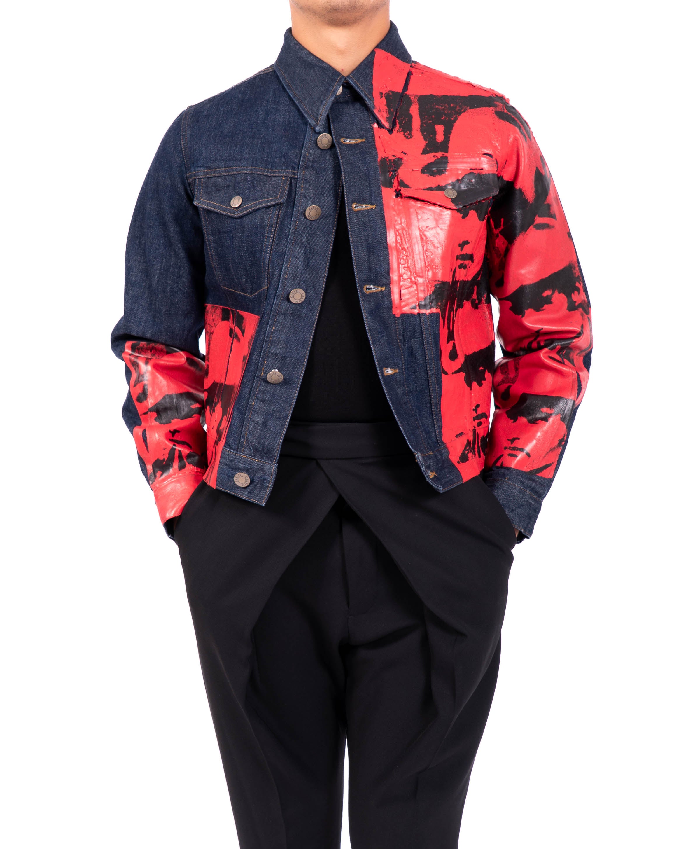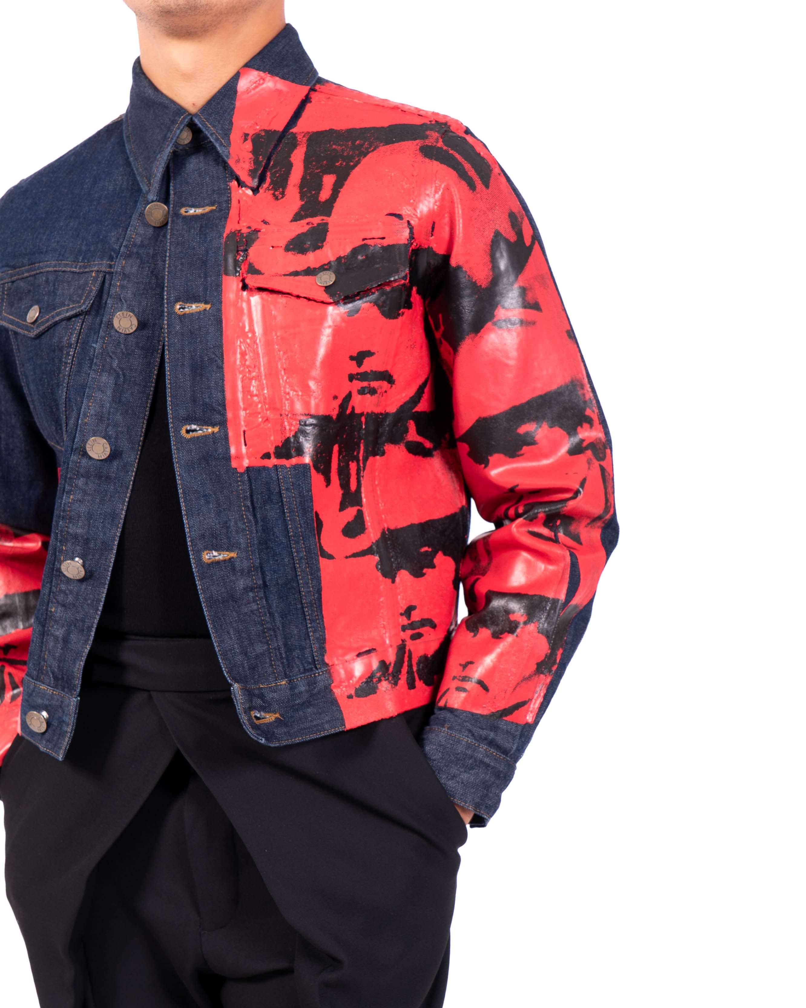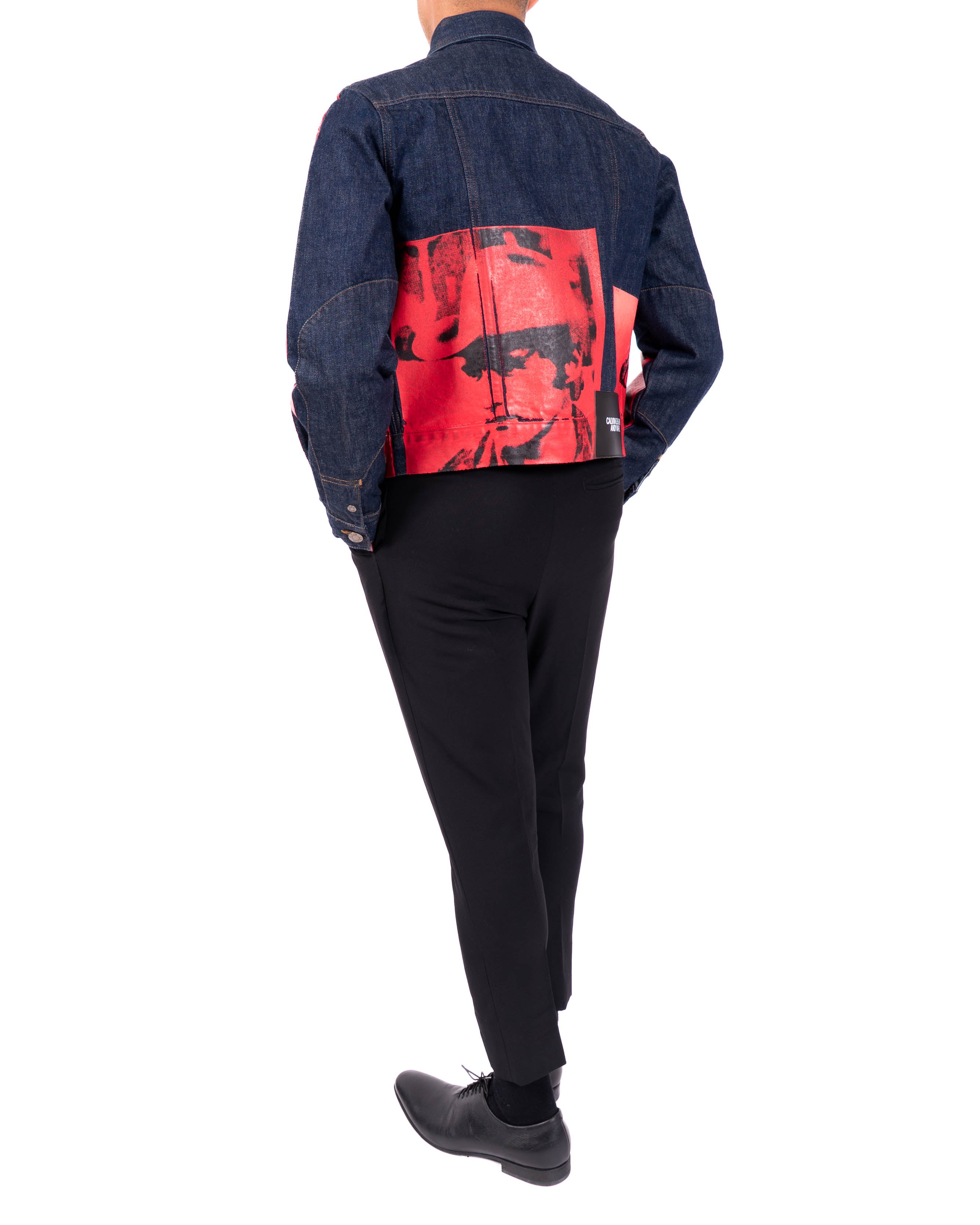 Featured on the Spring Summer 2018 runway of Calvin Klein 205W39NYC, this jacket marks one of Raf Simons’ most iconic collaborations with the Andy Warhol Foundation. Crafted from indigo denim, the piece features a thick screenprint of Andy Warhol’s photograph-turned-pop artwork of Sandra Brant, wife of Peter Brant, transforming the classic trucker silhouette into a statement of American art and culture.