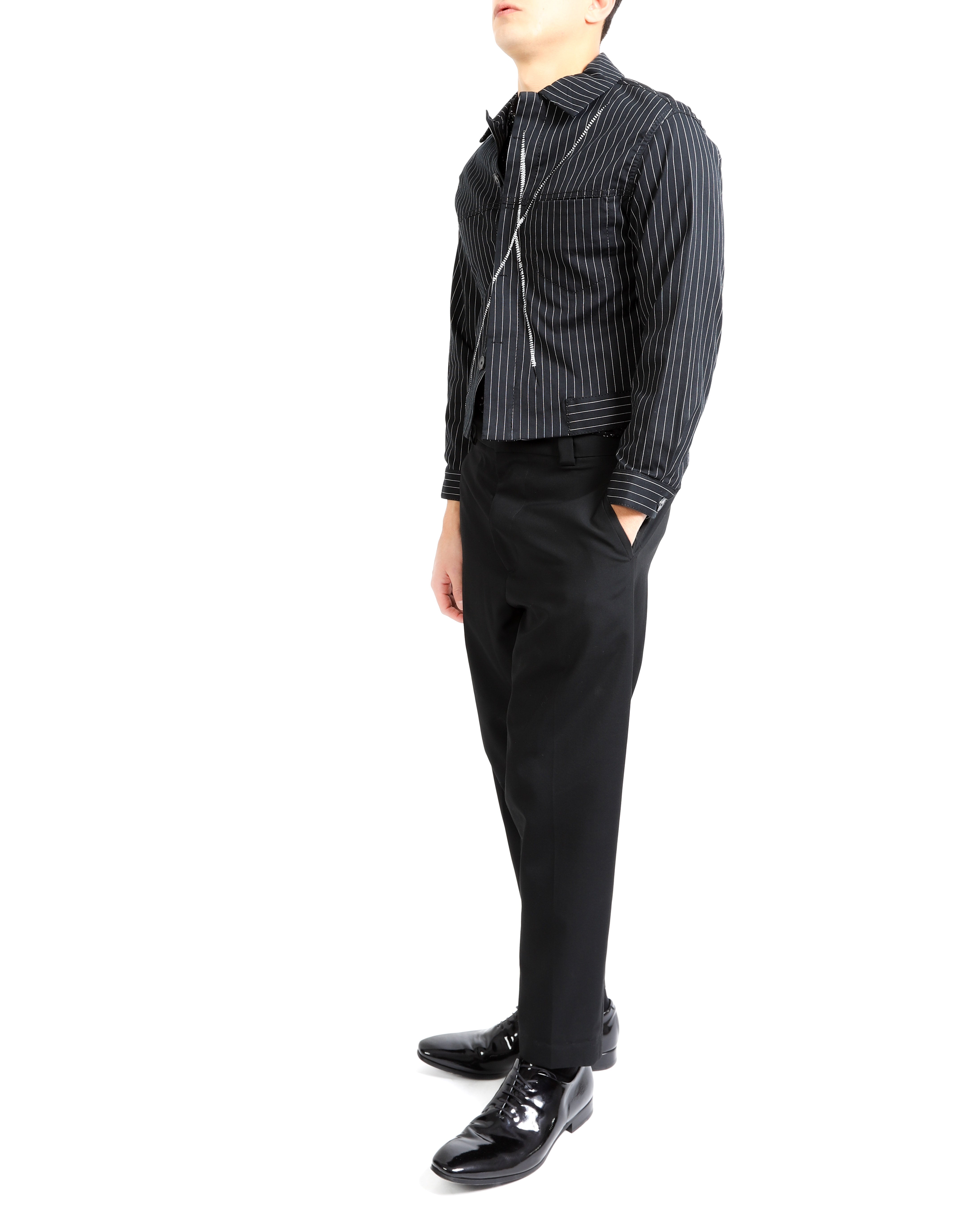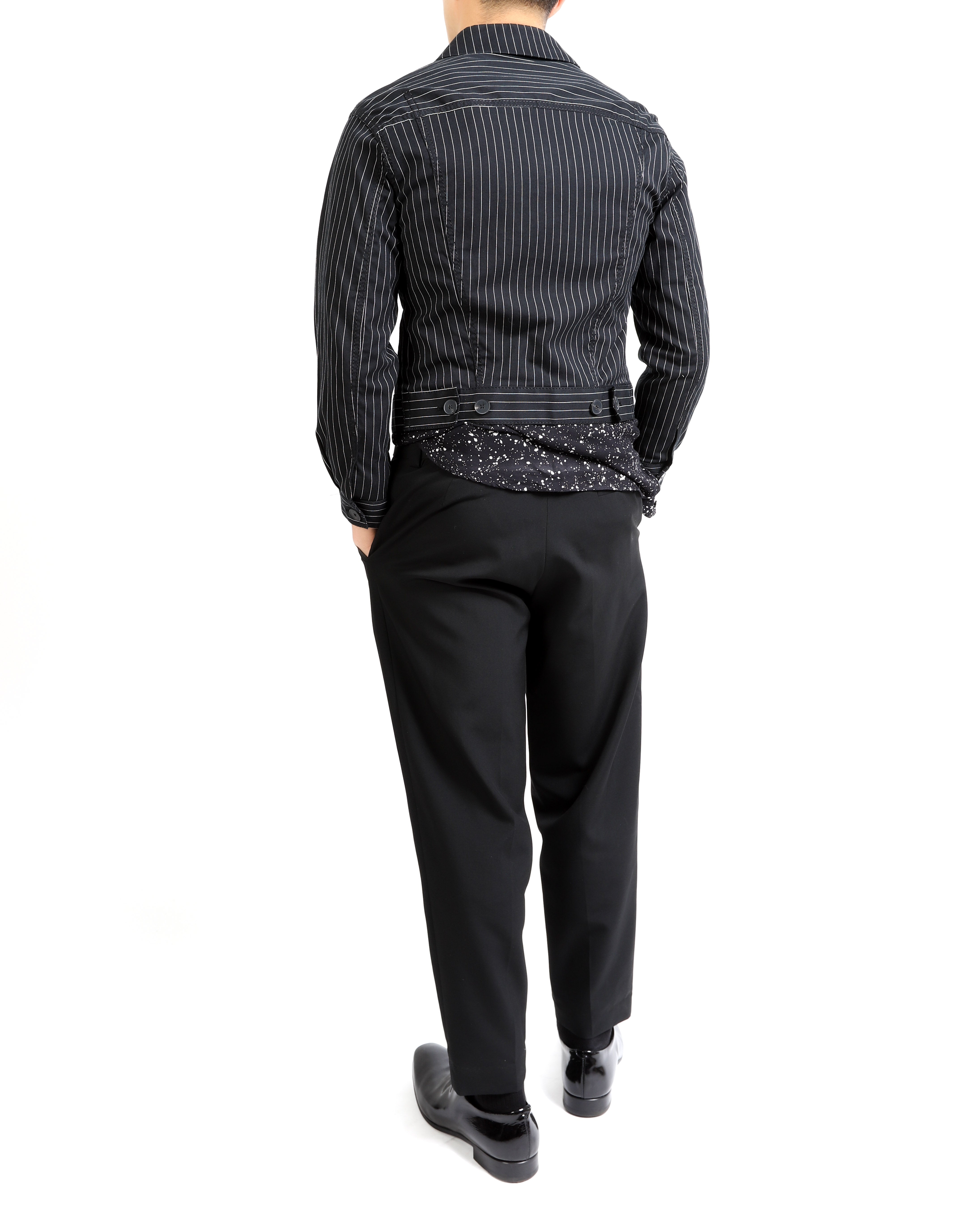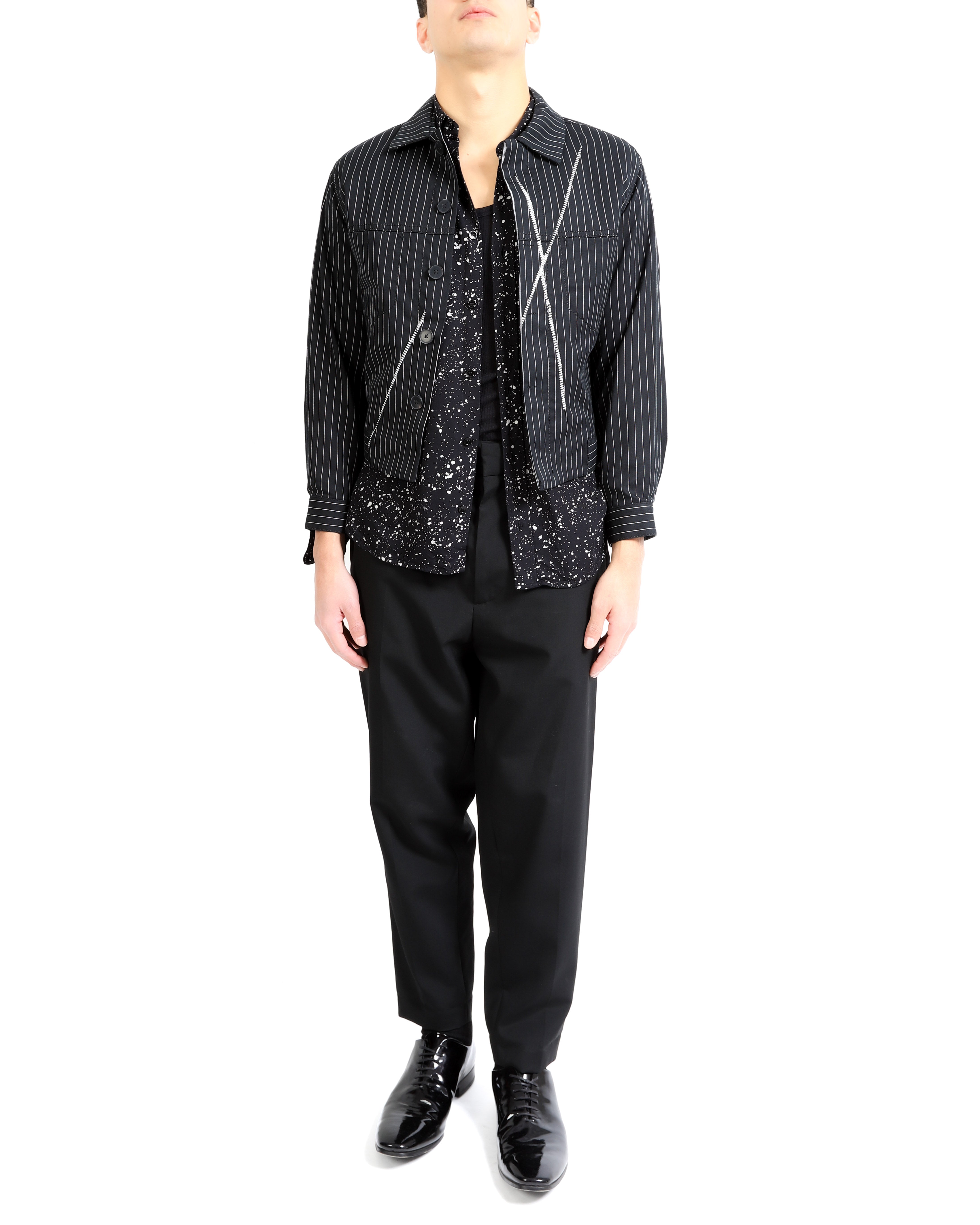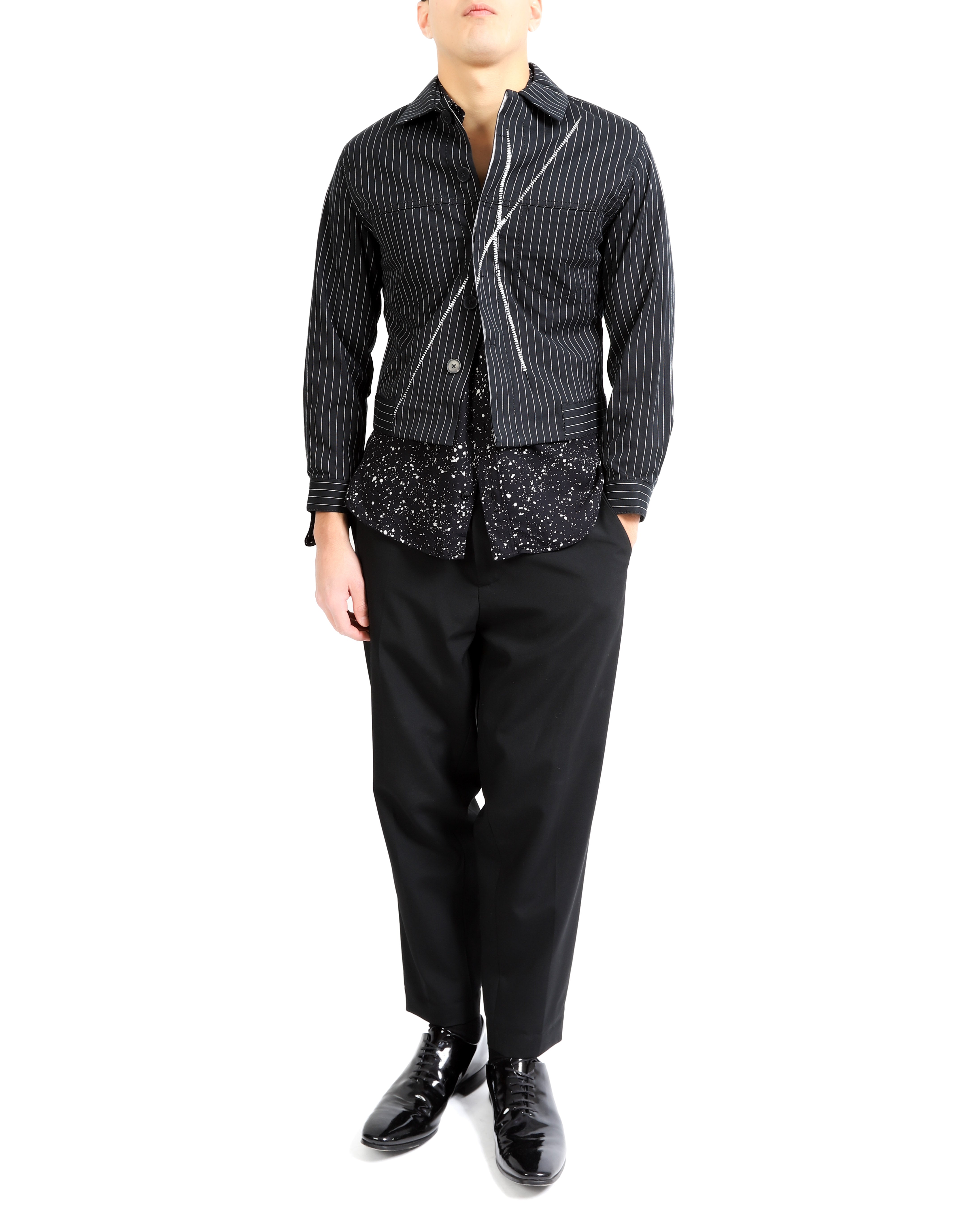 SS16 Embroidered Trucker Jacket in Pinstriped Cotton