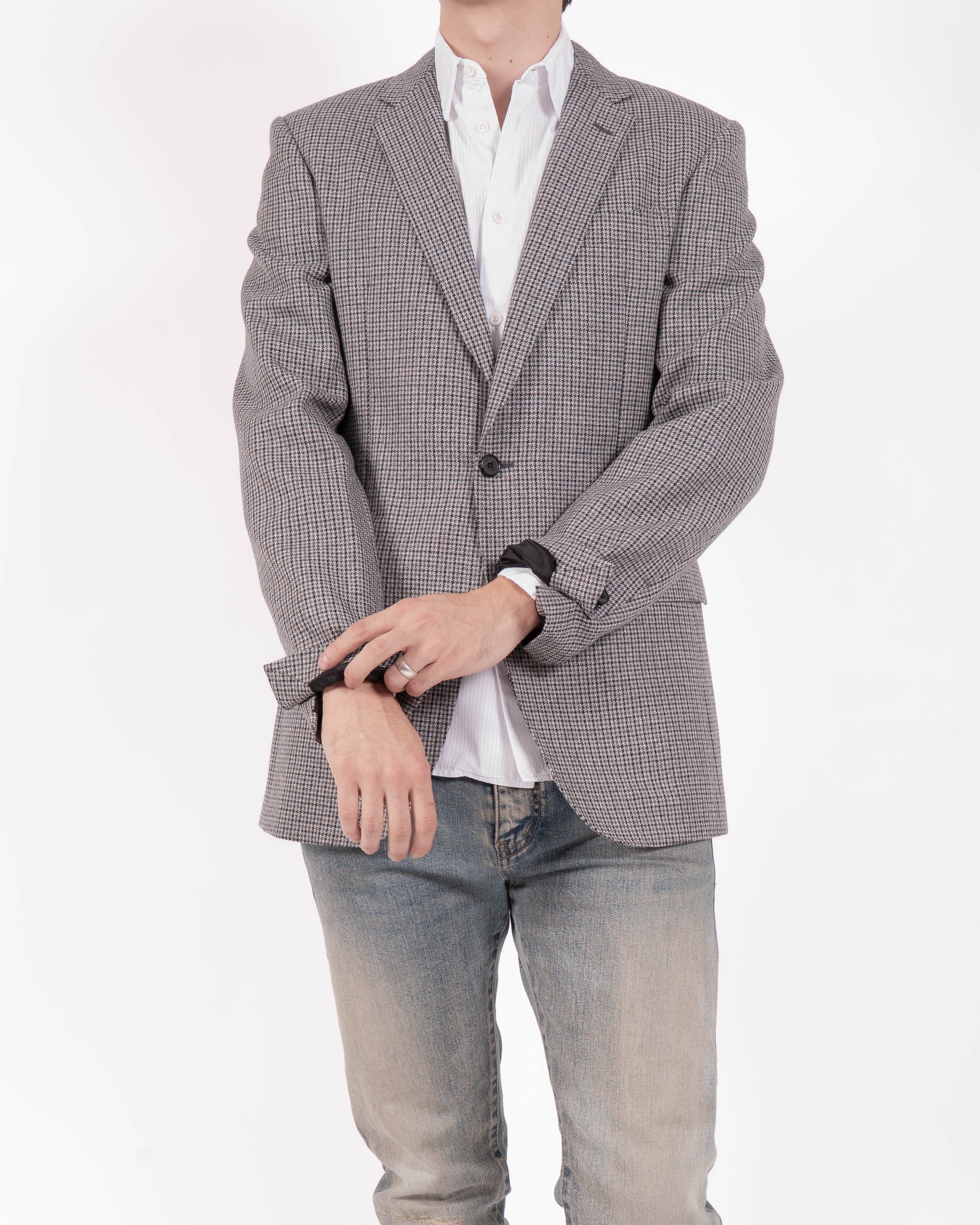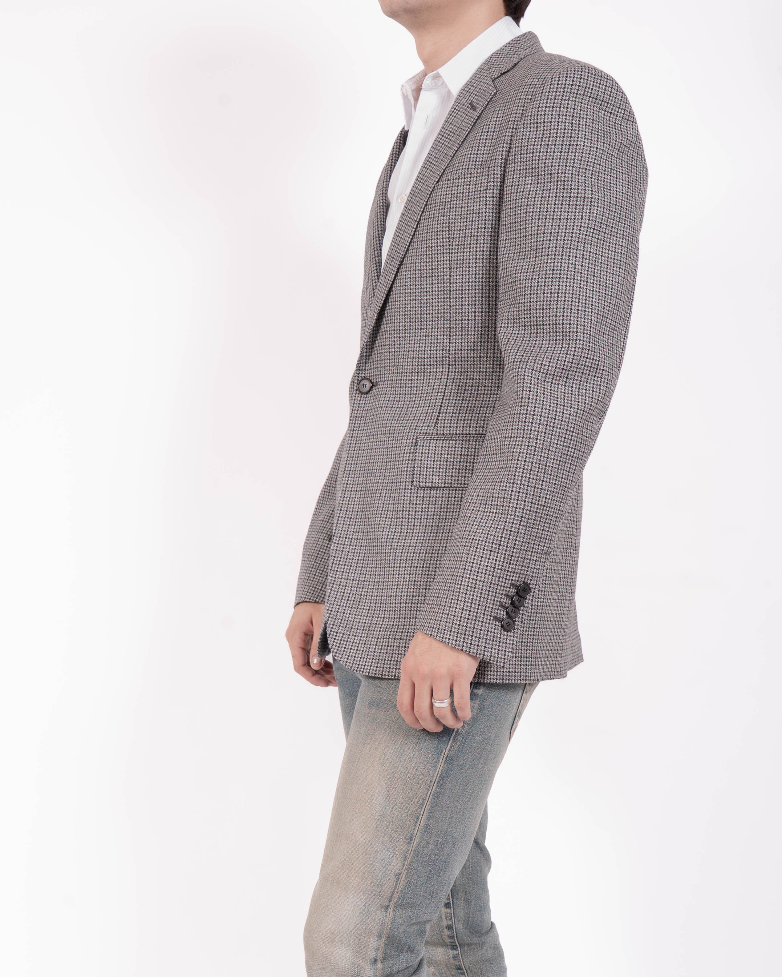 FW17 Classic 2-Button Blazer in Grey Houndstooth Wool