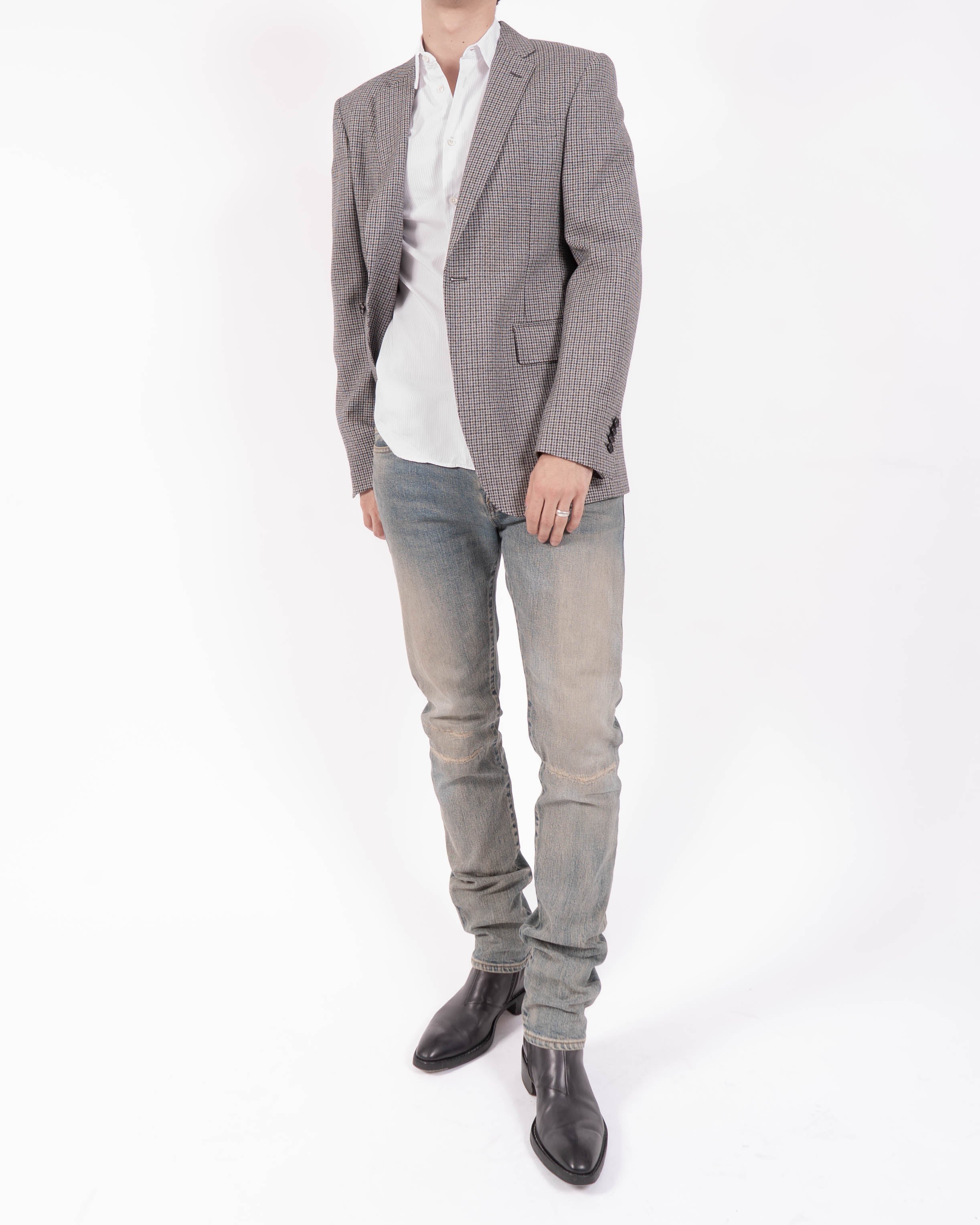 This blazer from Calvin Klein 205W39NYC’s FW17 lineup revisits traditional tailoring with a sharp, modern lens. Cut in grey houndstooth wool, it carries a timeless pattern that balances refinement with a twist. The two button closure and notched lapels nod to classic menswear codes, while the slightly structured shoulders and streamlined silhouette emphasize Raf Simons’ directional approach during his era at the house.
