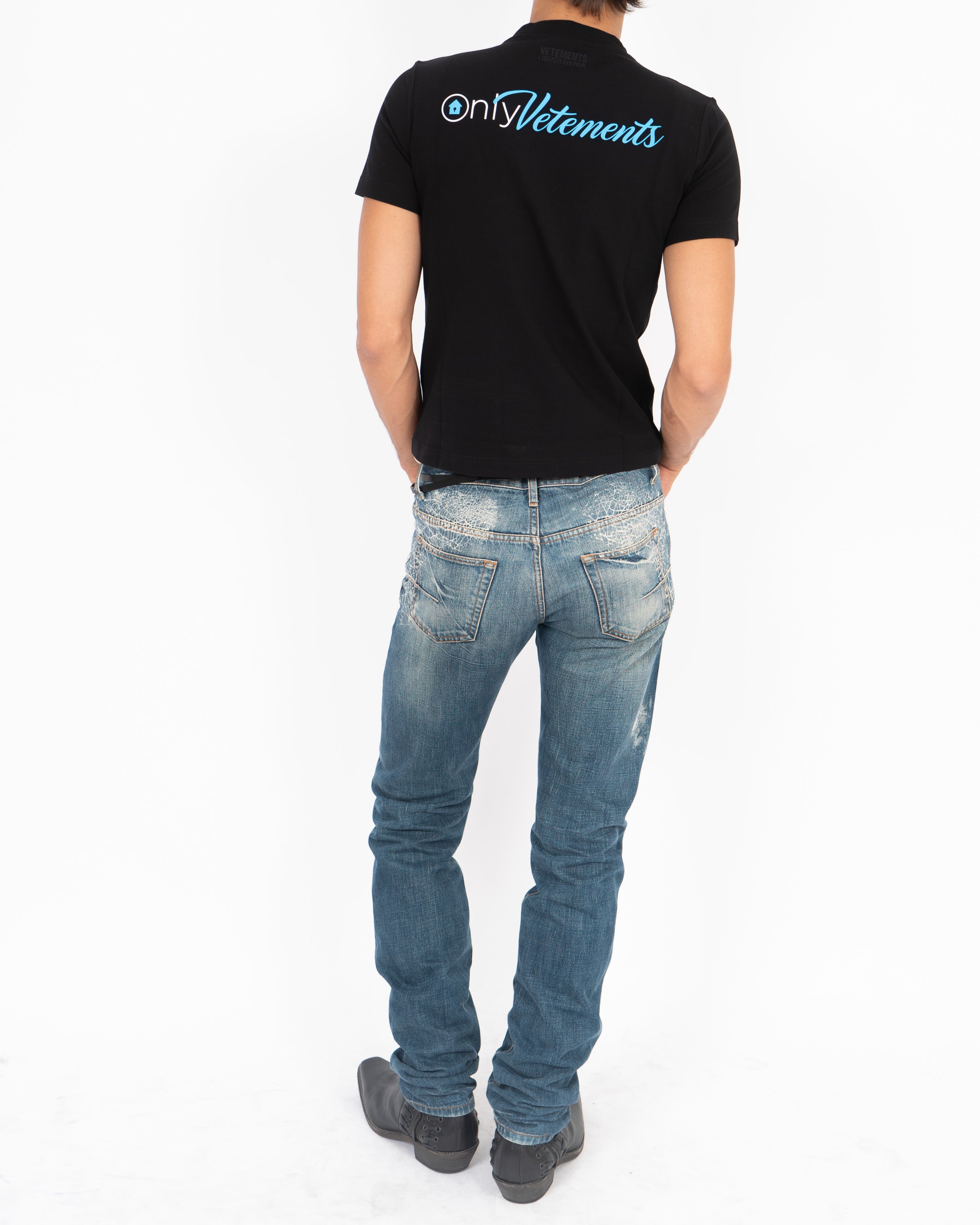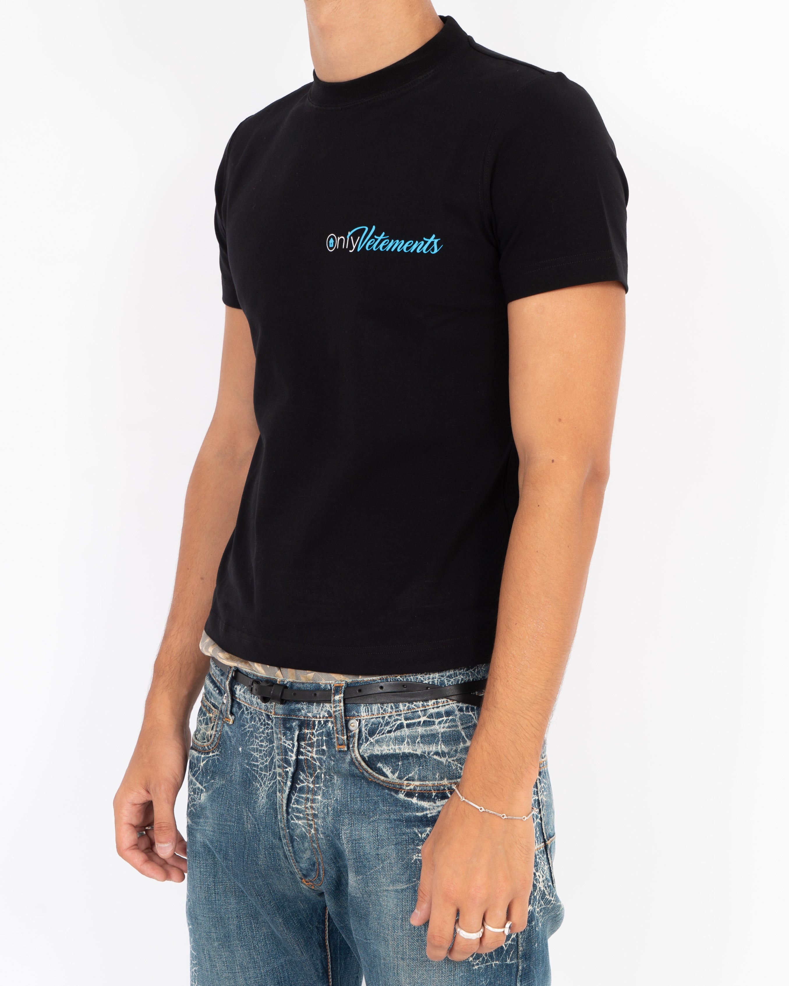From Vetements’ FW20 collection, this Only Vetements Slim T-Shirt showcases the brand’s signature tongue-in-cheek aesthetic through its playful “Only Vetements” print on the chest. Cut from 100% premium cotton, it offers a slim, slightly cropped fit that sits close to the body for a sharp, modern silhouette. Crafted in high quality cotton jersey, it features a ribbed crew neckline and minimalist finishing. A clean essential that merges irony and luxury in true Vetements fashion.