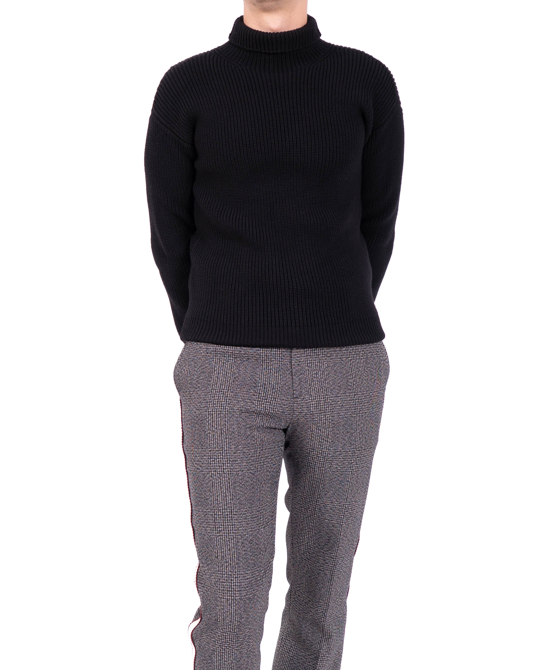 Tom Ford Era Chunky Knit Turtle Neck in Black Wool