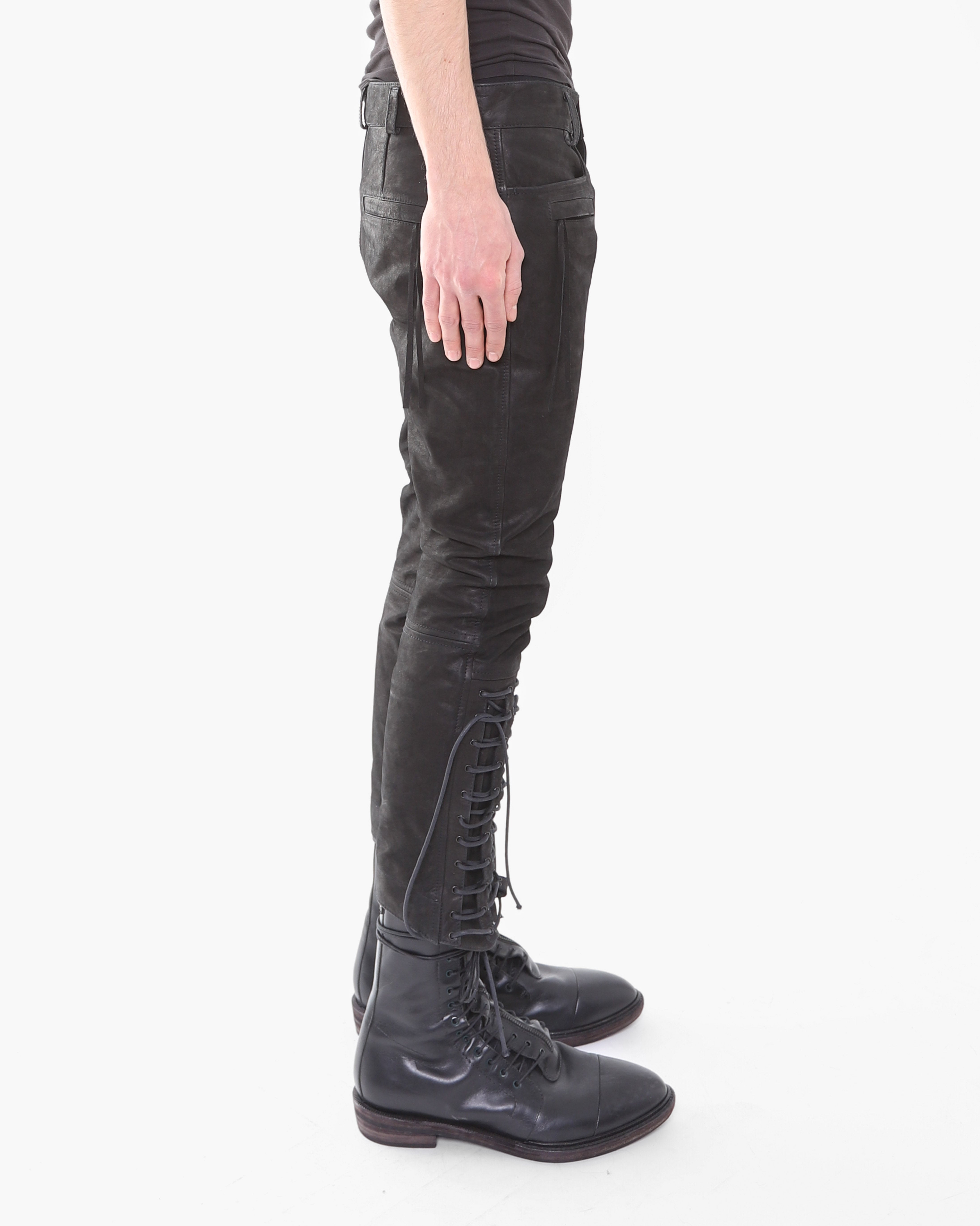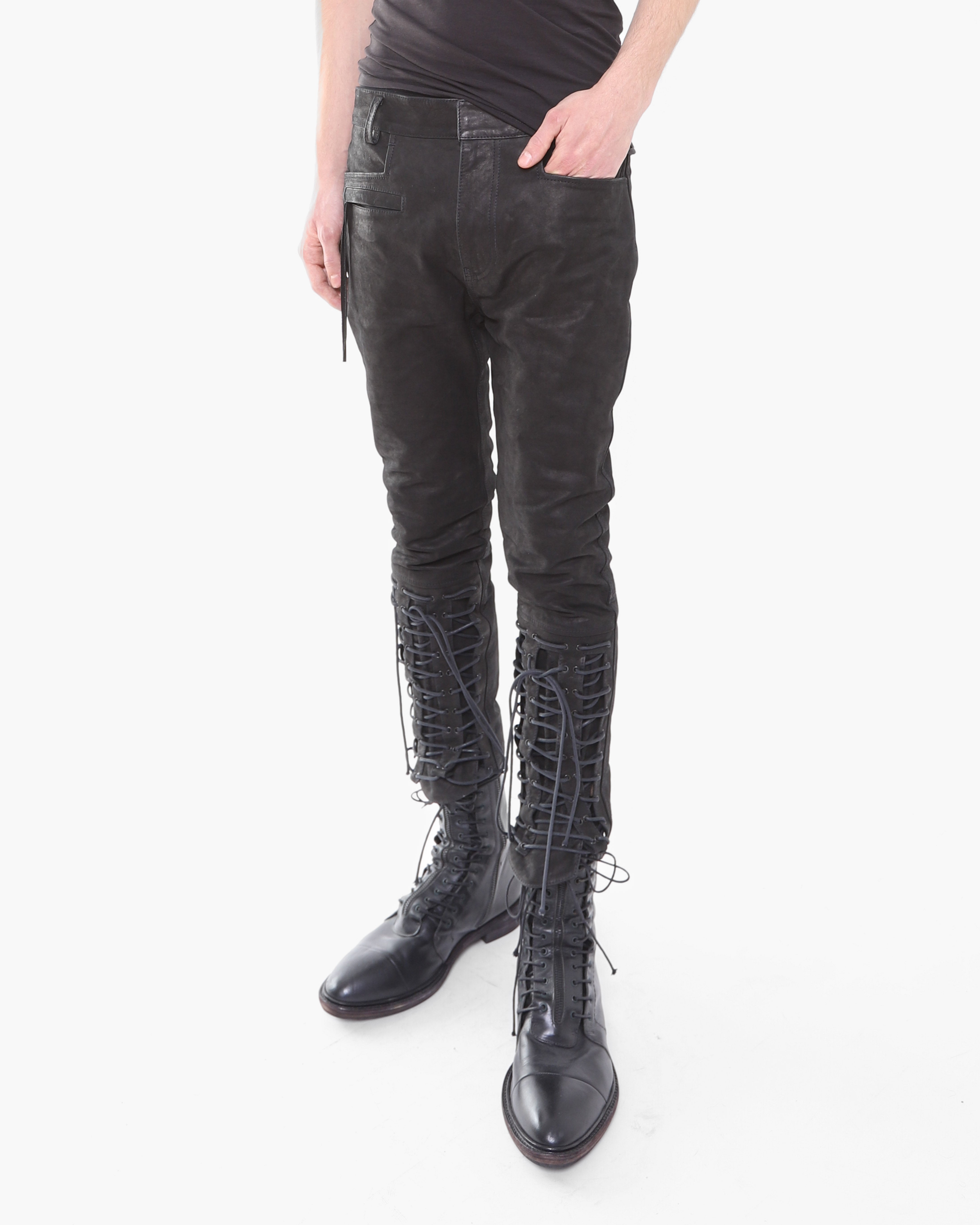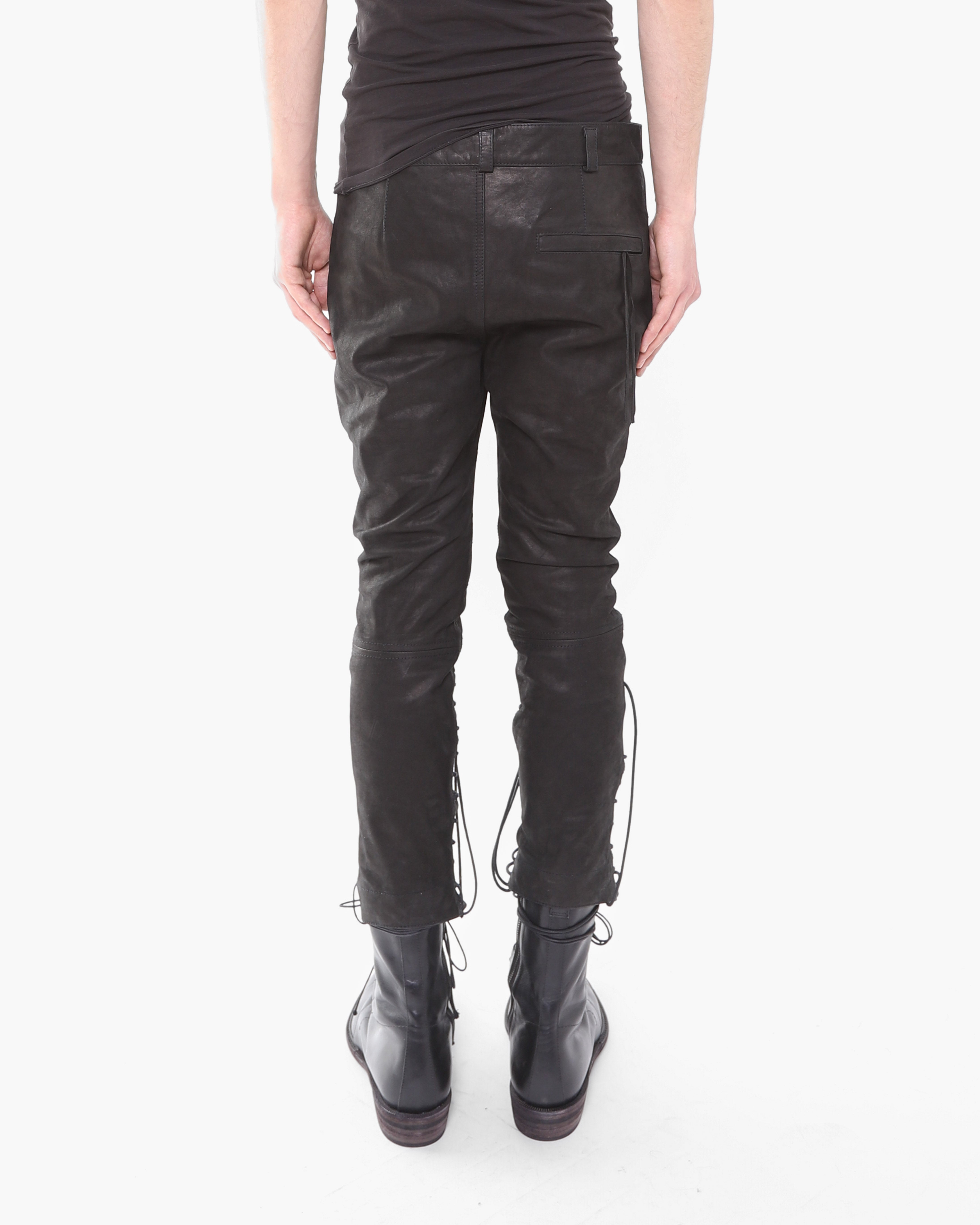 FW16 Cropped Laced Detail Trousers in Matte Black Leather