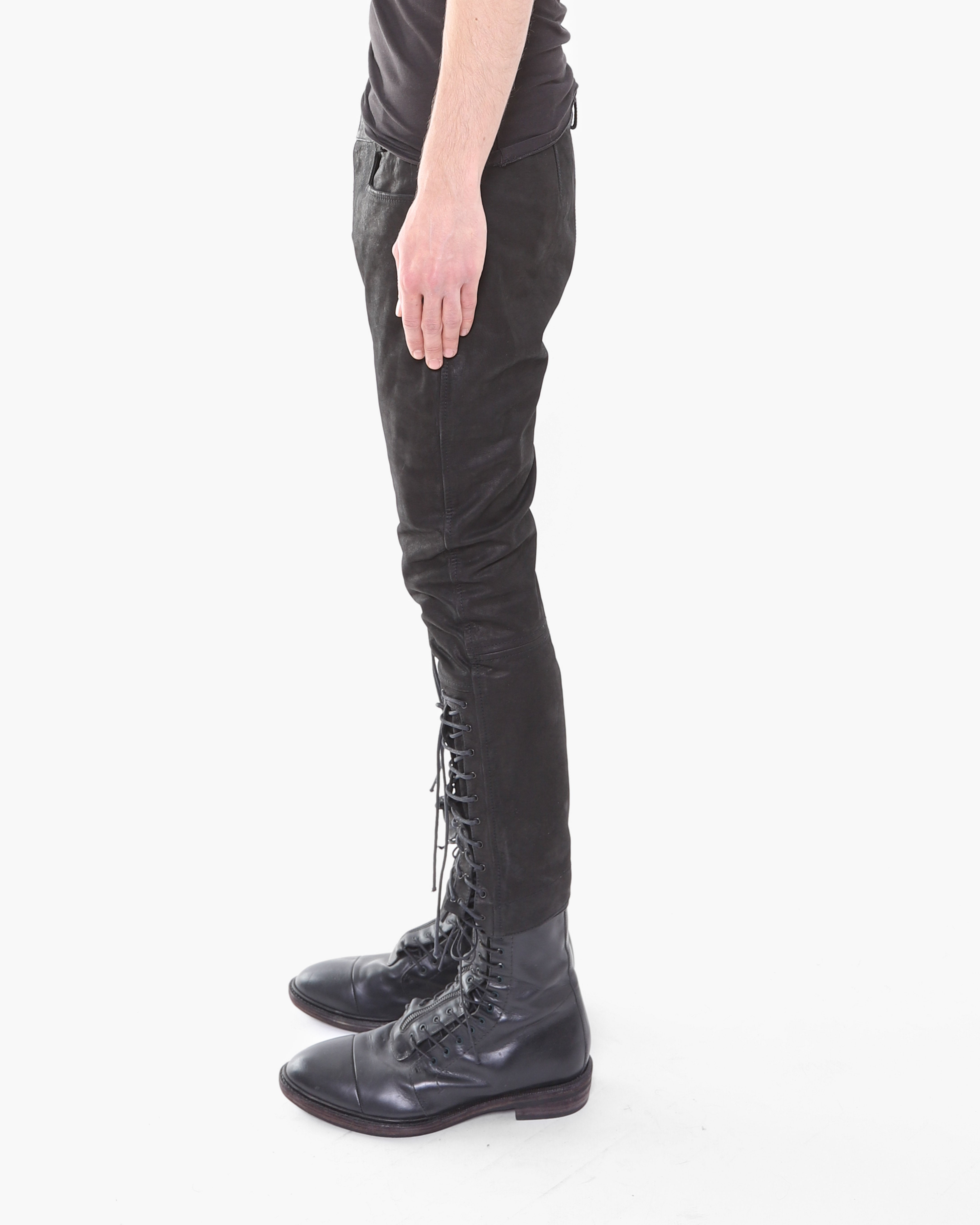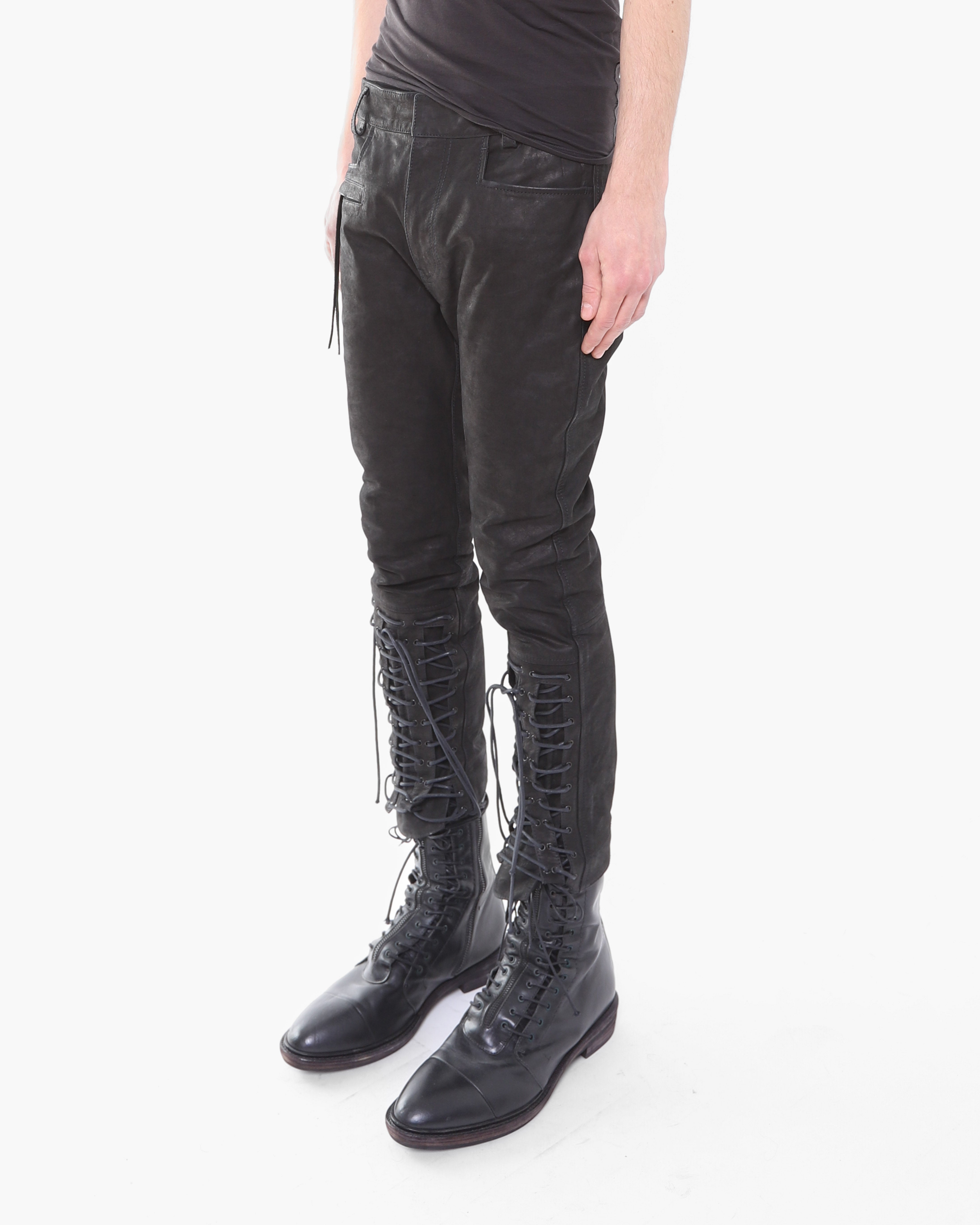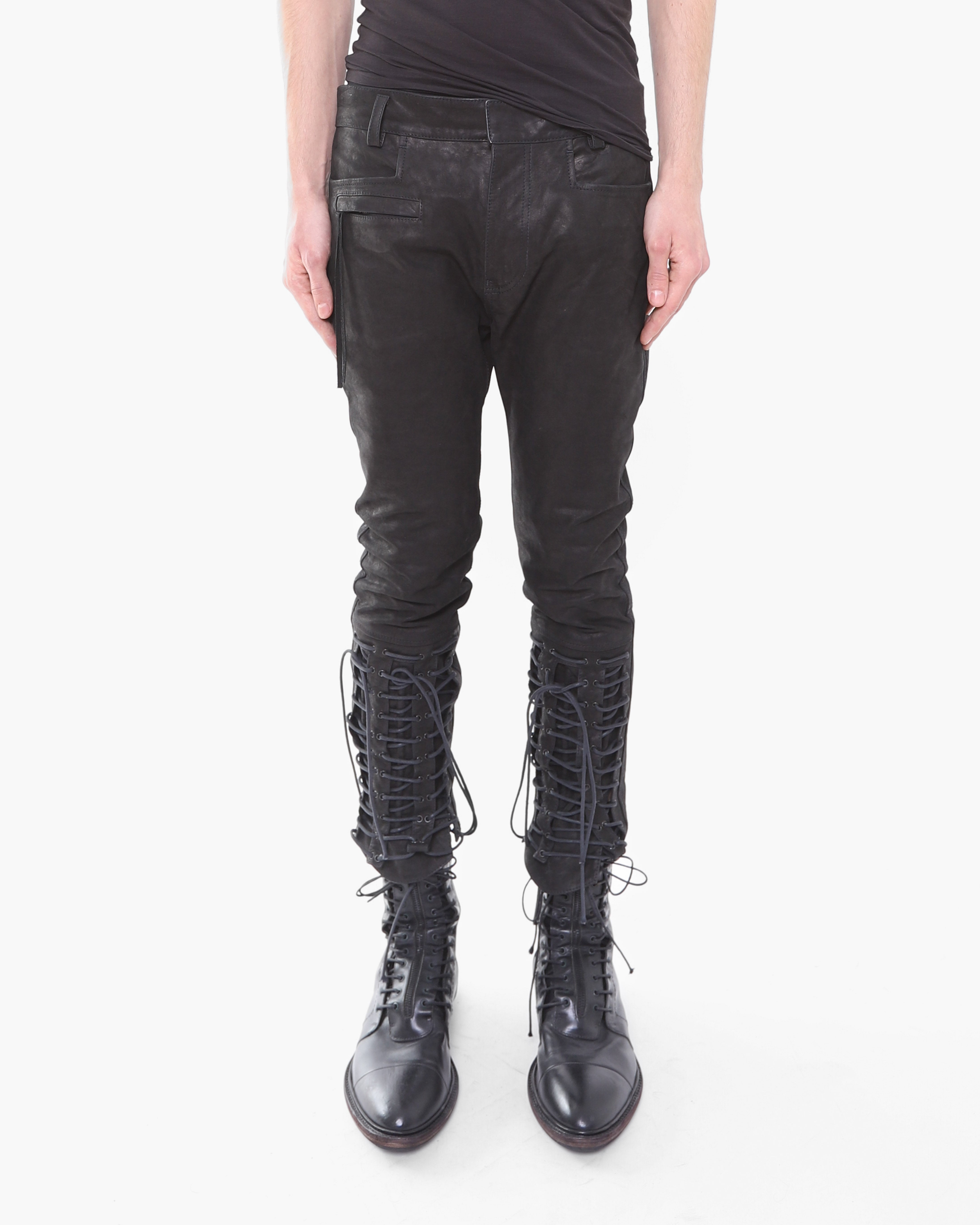 FW16 Cropped Laced Detail Trousers in Matte Black Leather