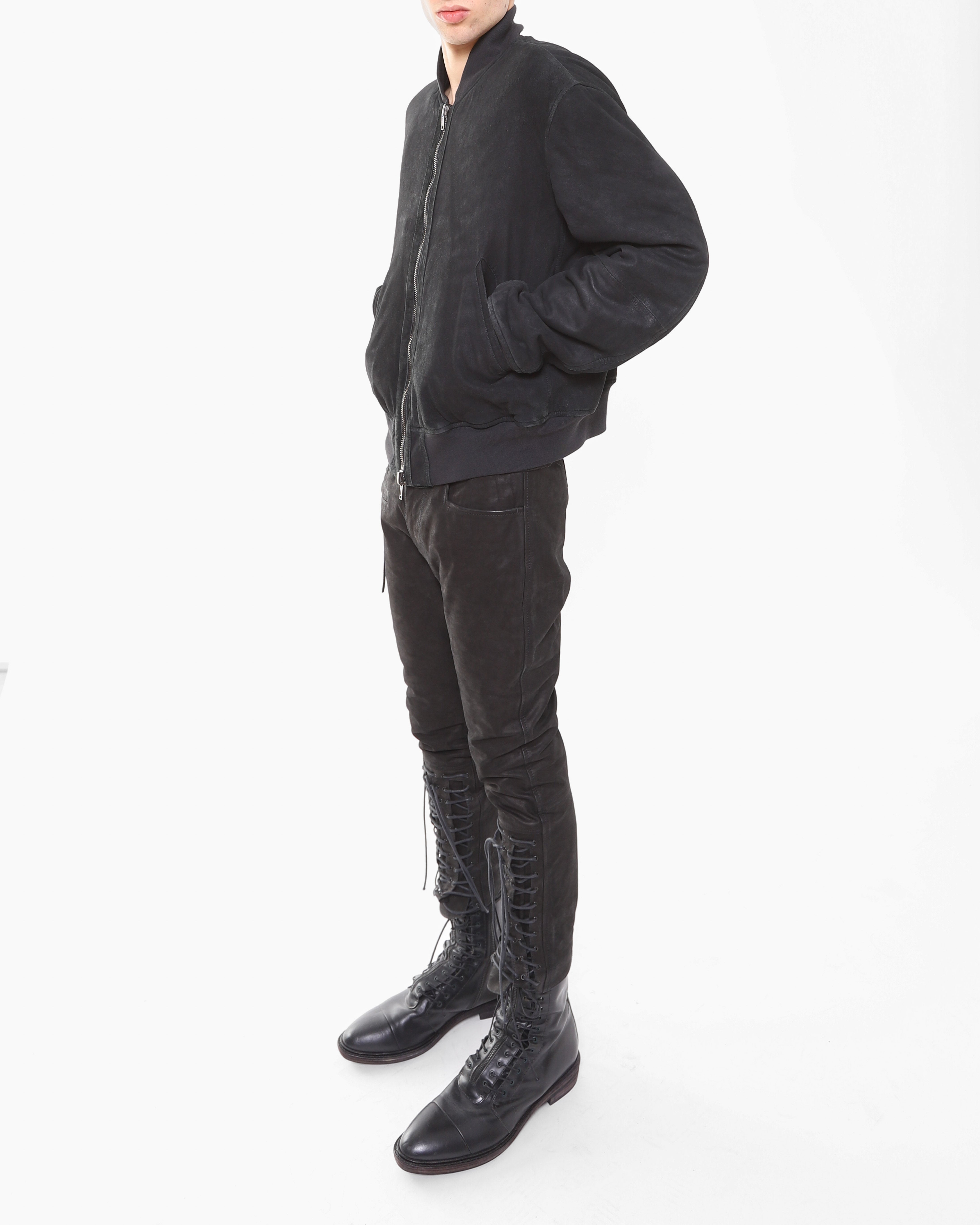 Alongside his iconic long, sharply tailored coats, Ackermann brought back his beloved bomber jackets, reimagining them with the same dark allure that defined the season. The bombers balanced the collection’s sleek refinement with a sense of rugged masculinity, creating a juxtaposition between structure and ease. The flowing lines and draped elements, combined with the weight of the fabrics, contributed to an almost theatrical aesthetic - each piece felt like part of a broader story, inviting viewers into Ackermann’s enigmatic world.