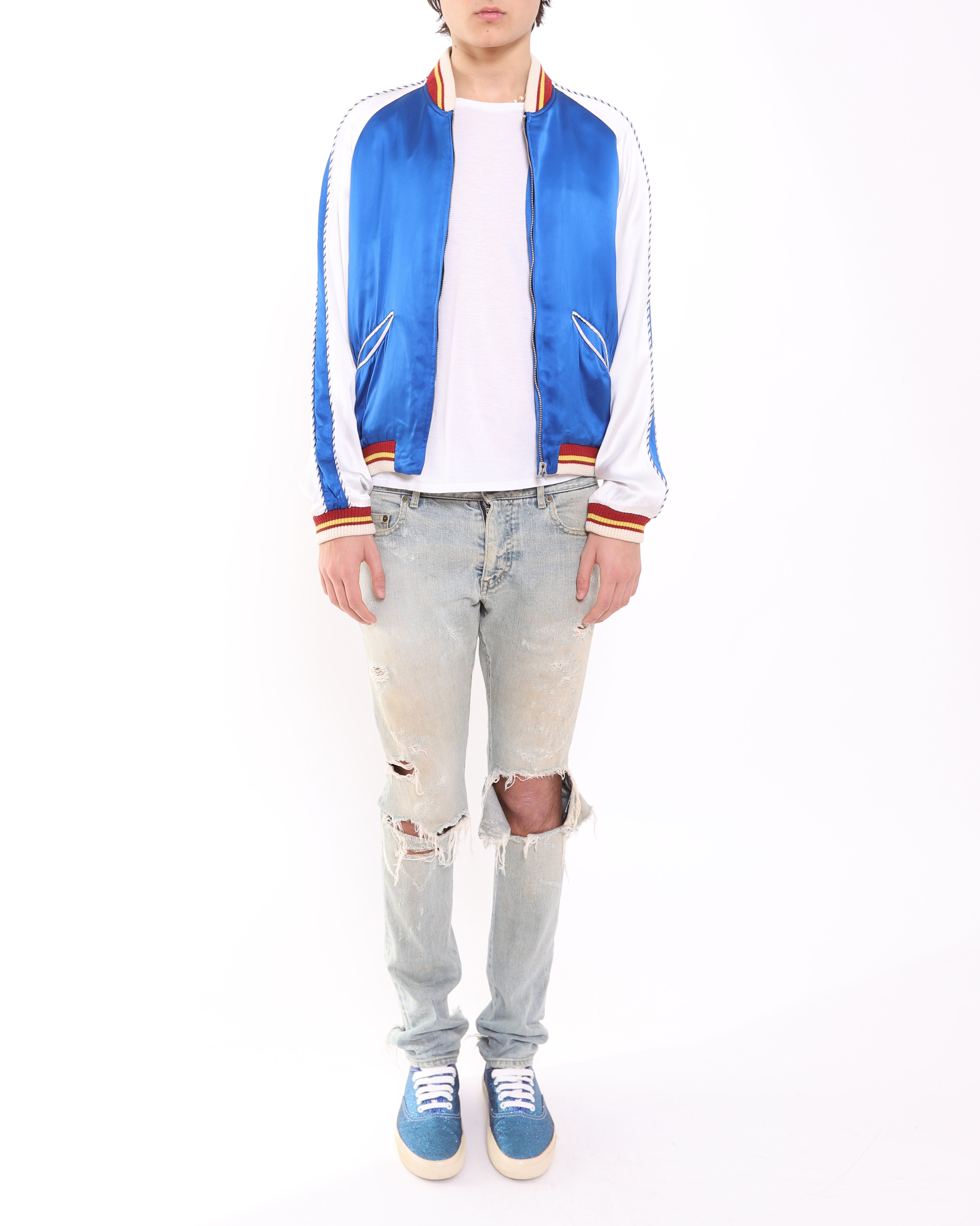 The Spring/Summer 2014 menswear collection by Hedi Slimane captured the energy of glam rock and the attitude of youth culture. Presented in a stage-like setting with flashing lights and a pulsing soundtrack, the show reflected Slimane’s fascination with performance and music.