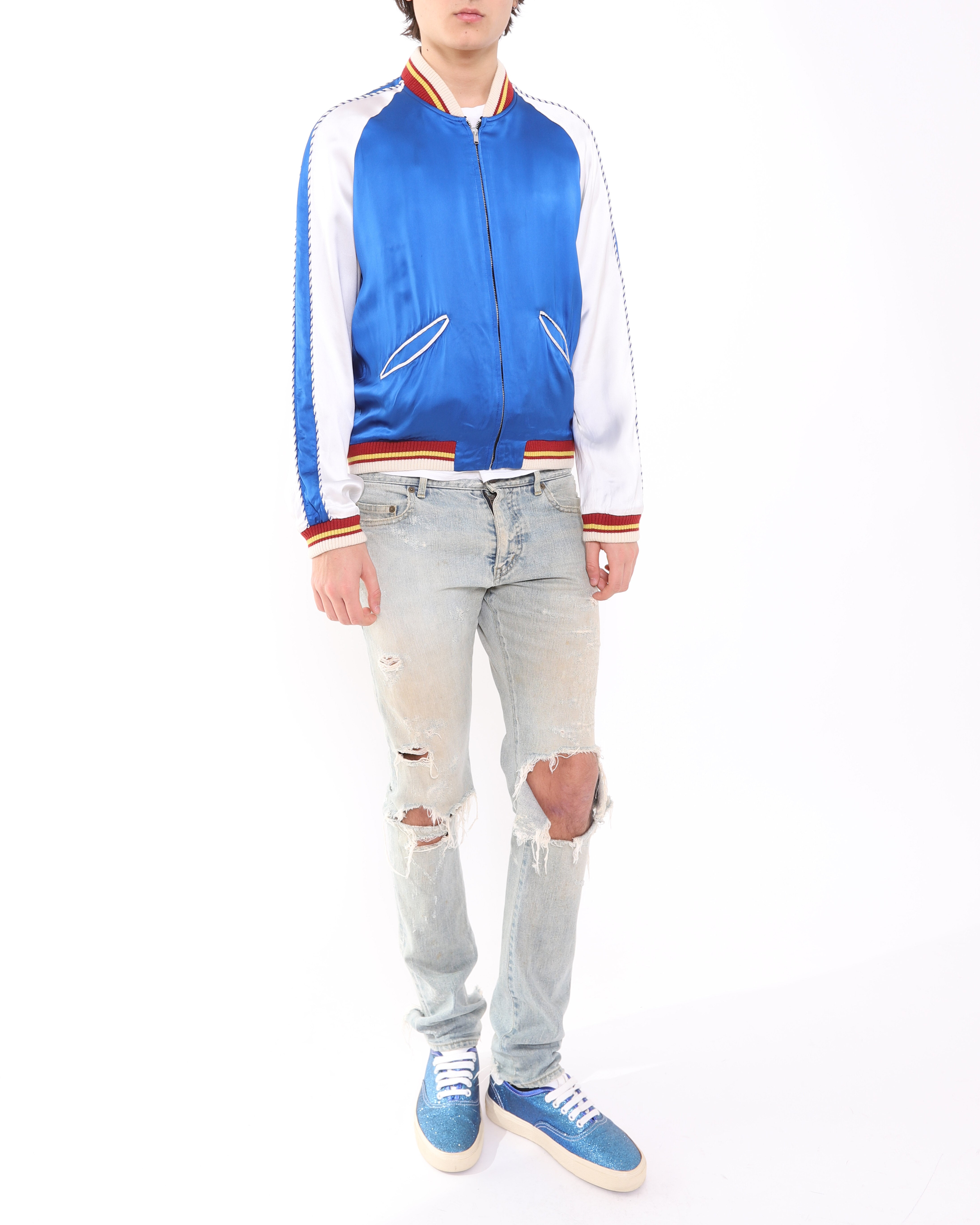 Sequins, metallic fabrics and bold patterns defined the season. Gold jackets, zebra print trousers and checkerboard bikers appeared alongside slim tailoring and polished accessories. Details such as silk blousons, mirrored sunglasses and bandanas added contrast between formality and rebellion.