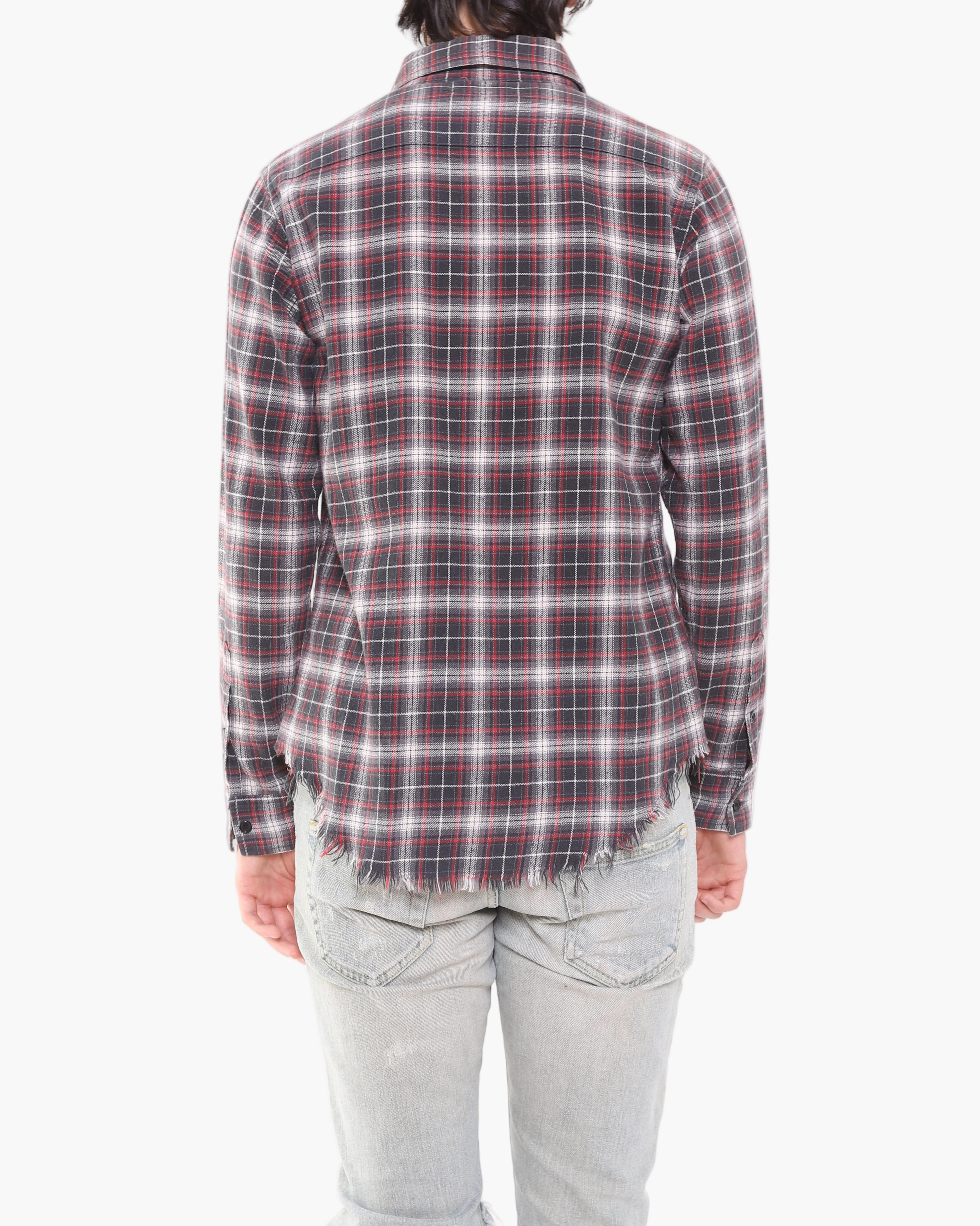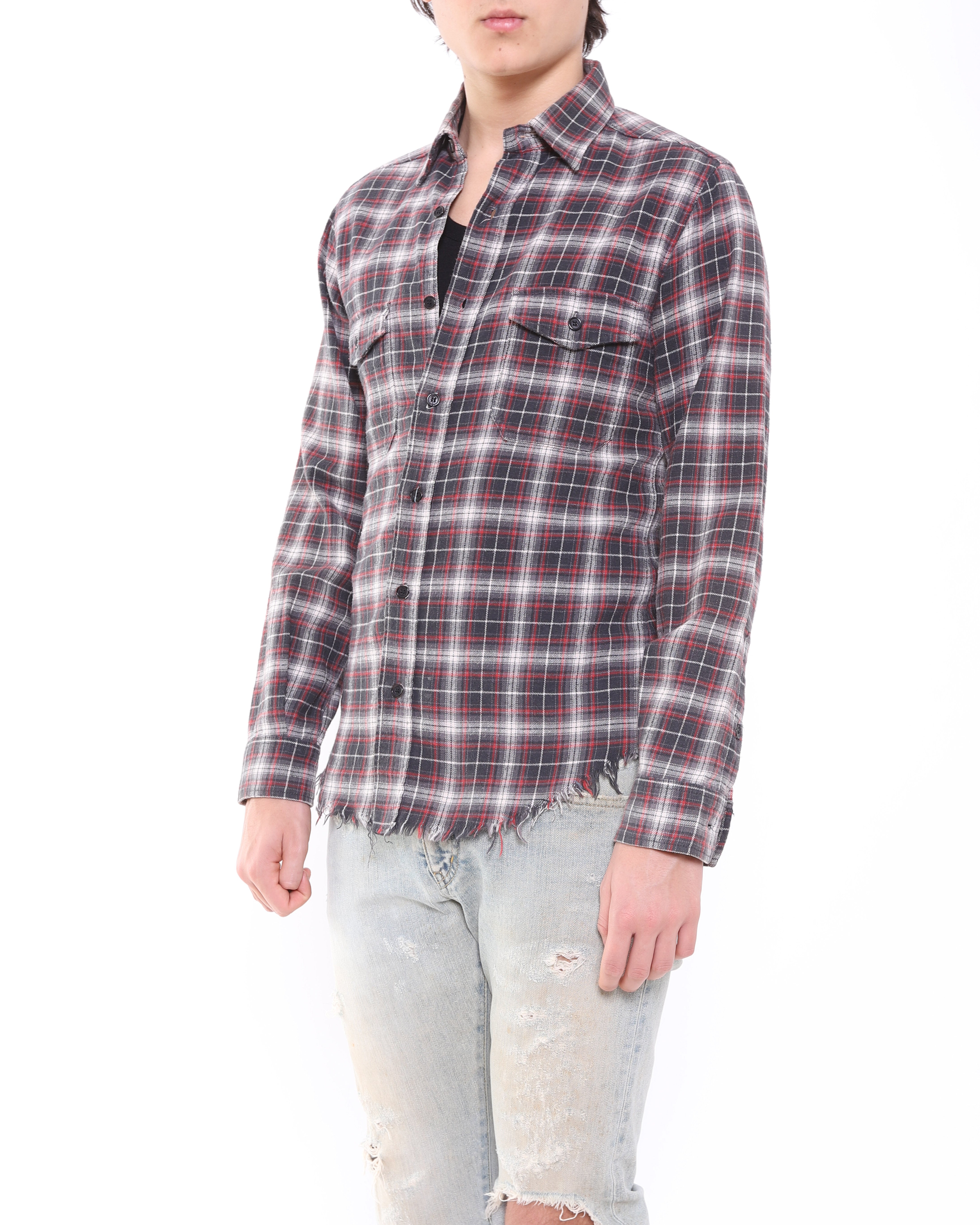 SS16 Distressed Hem Checked Flannel in Grey & Red