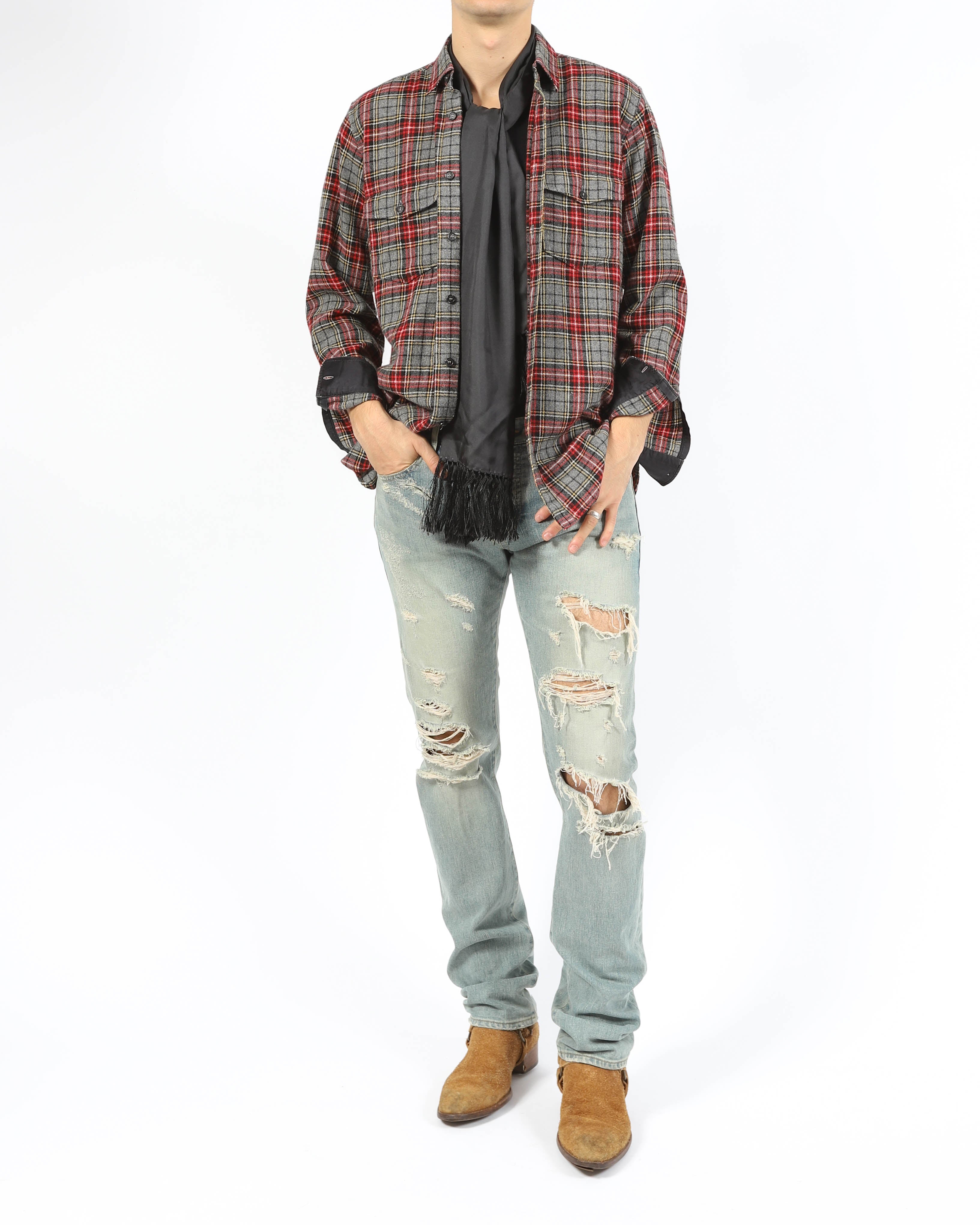 This oversized flannel in checked wool from FW13 combines volume with a warm, textured finish. The classic check pattern lends it a timeless, vintage edge, while the wool fabric adds depth and structure.