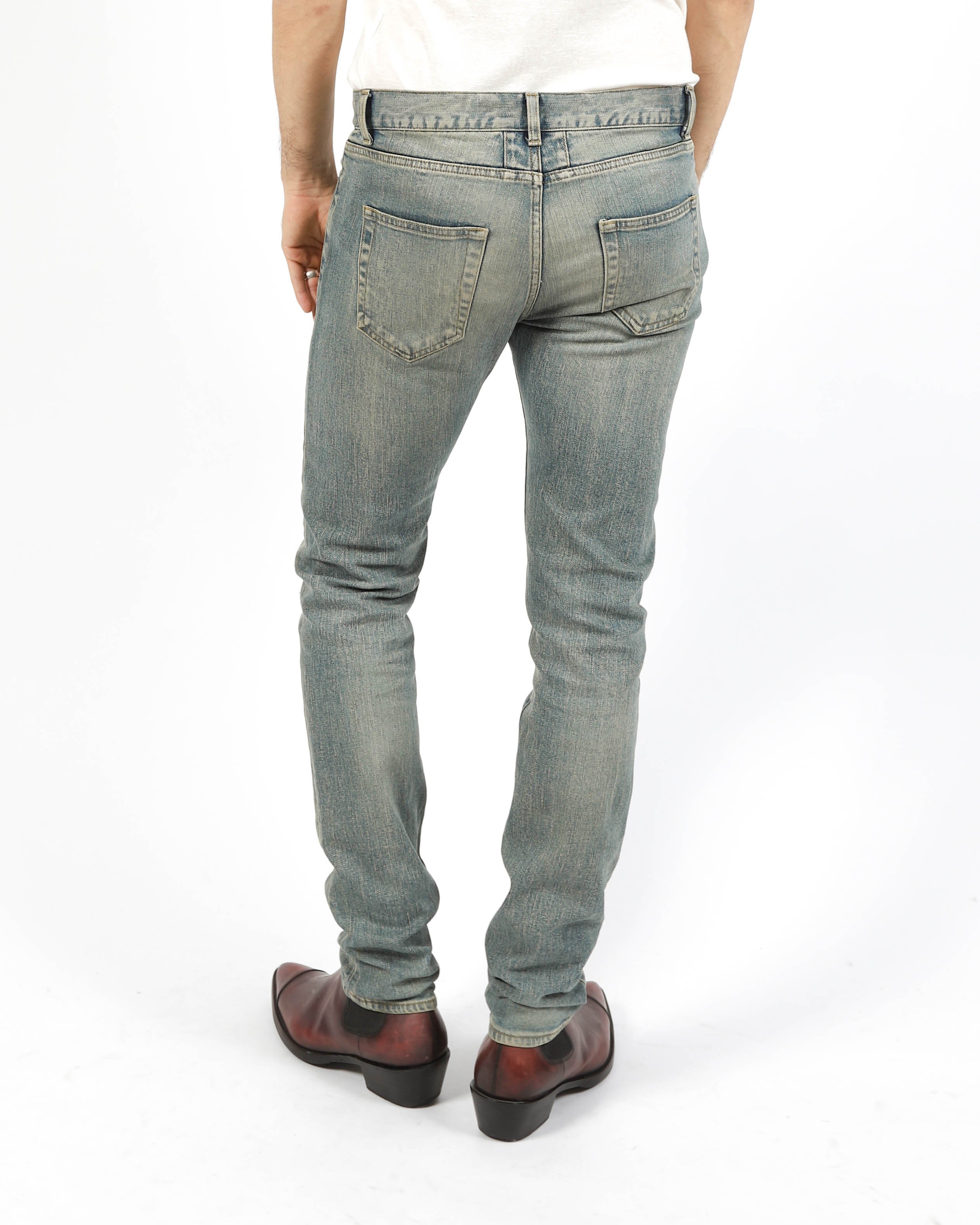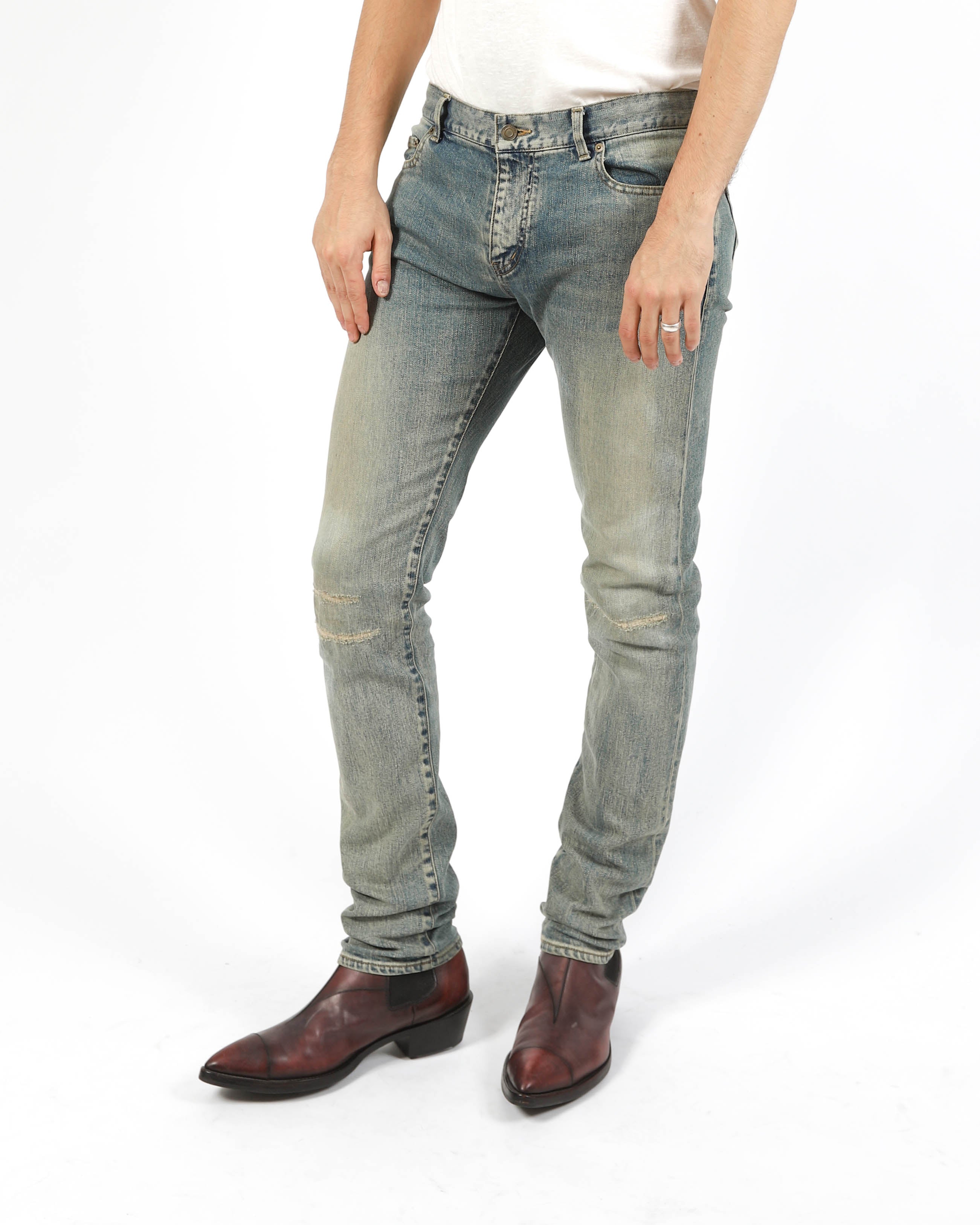 FW15 Skinny Repaired Knee Jeans in Dirty Washed Denim