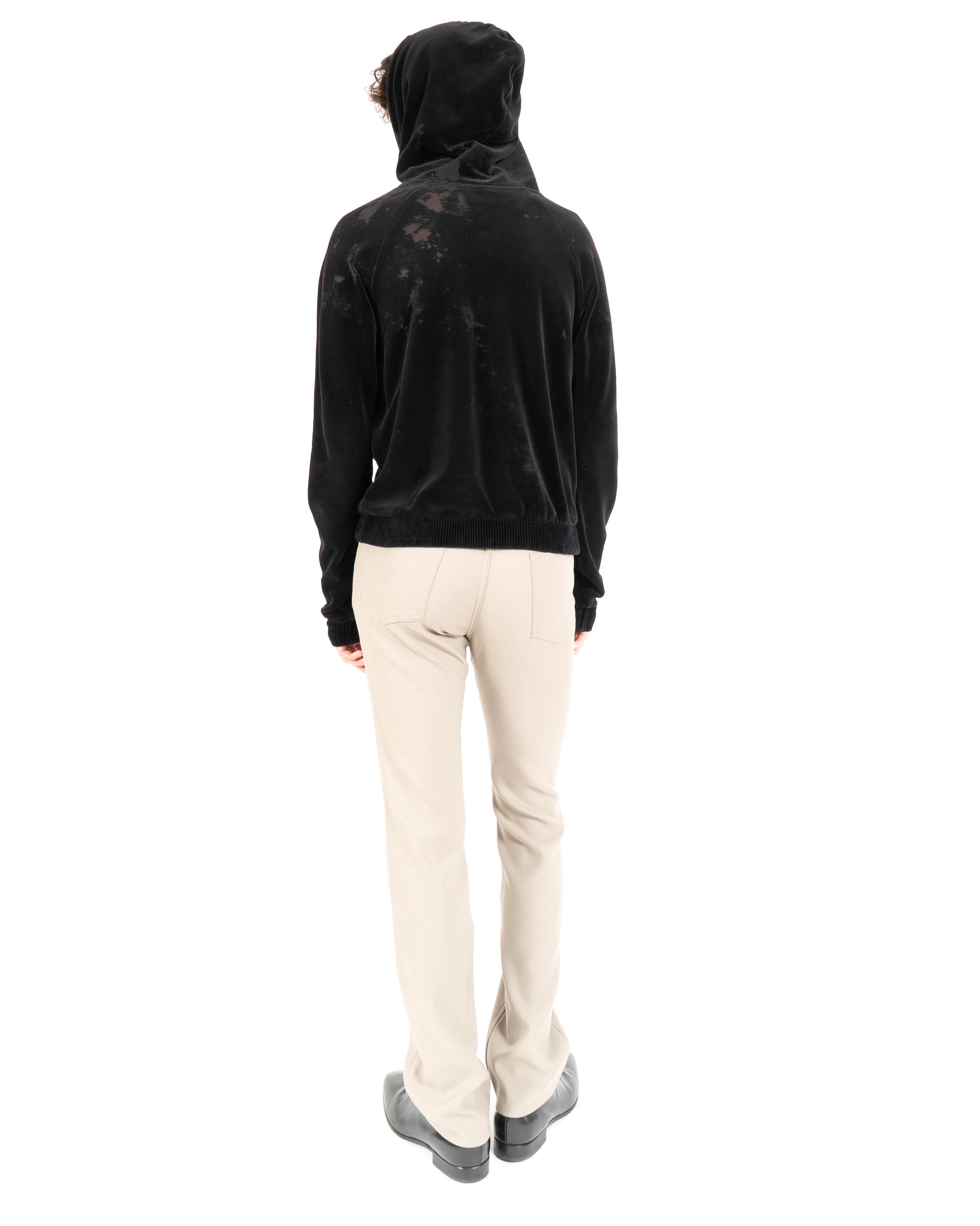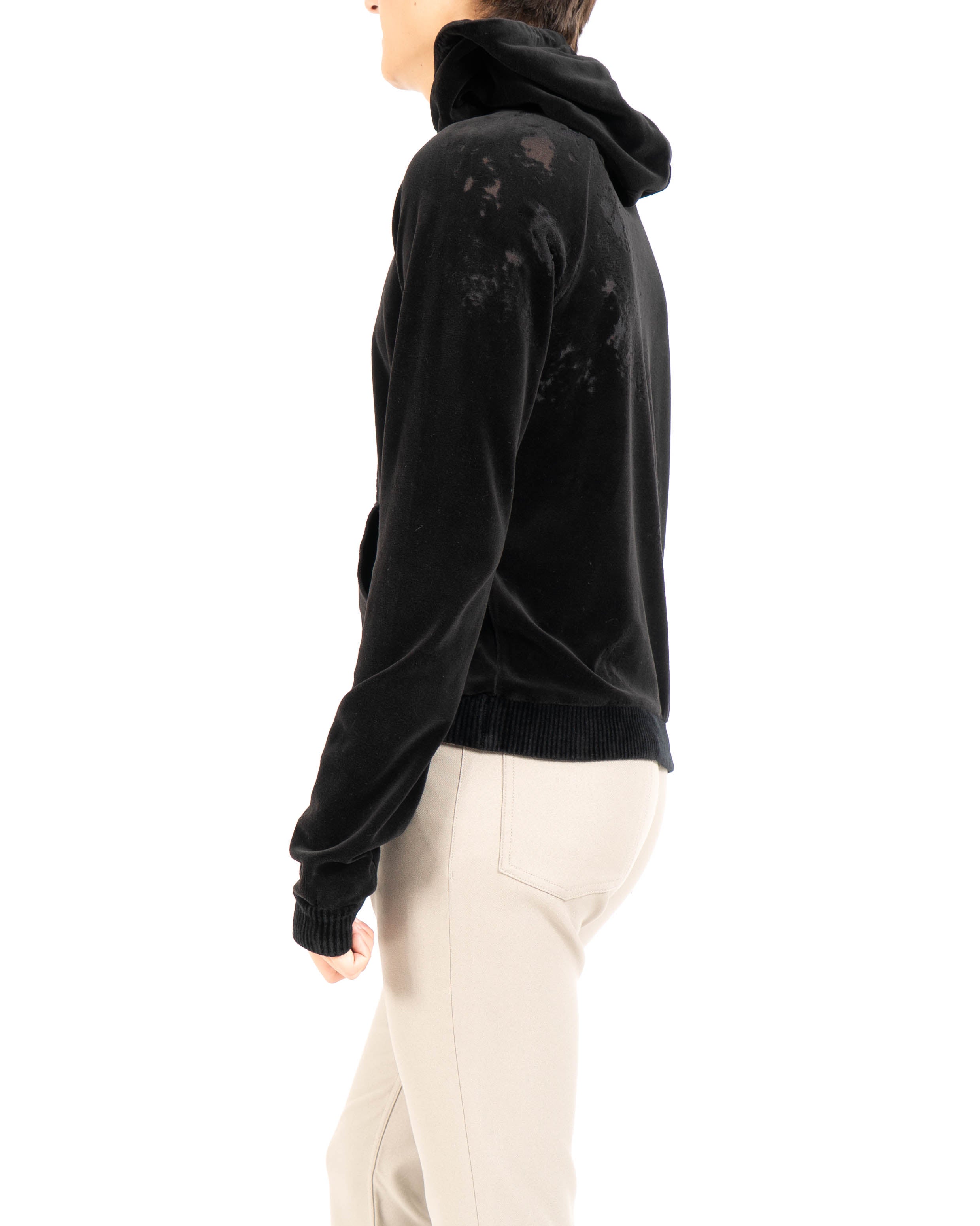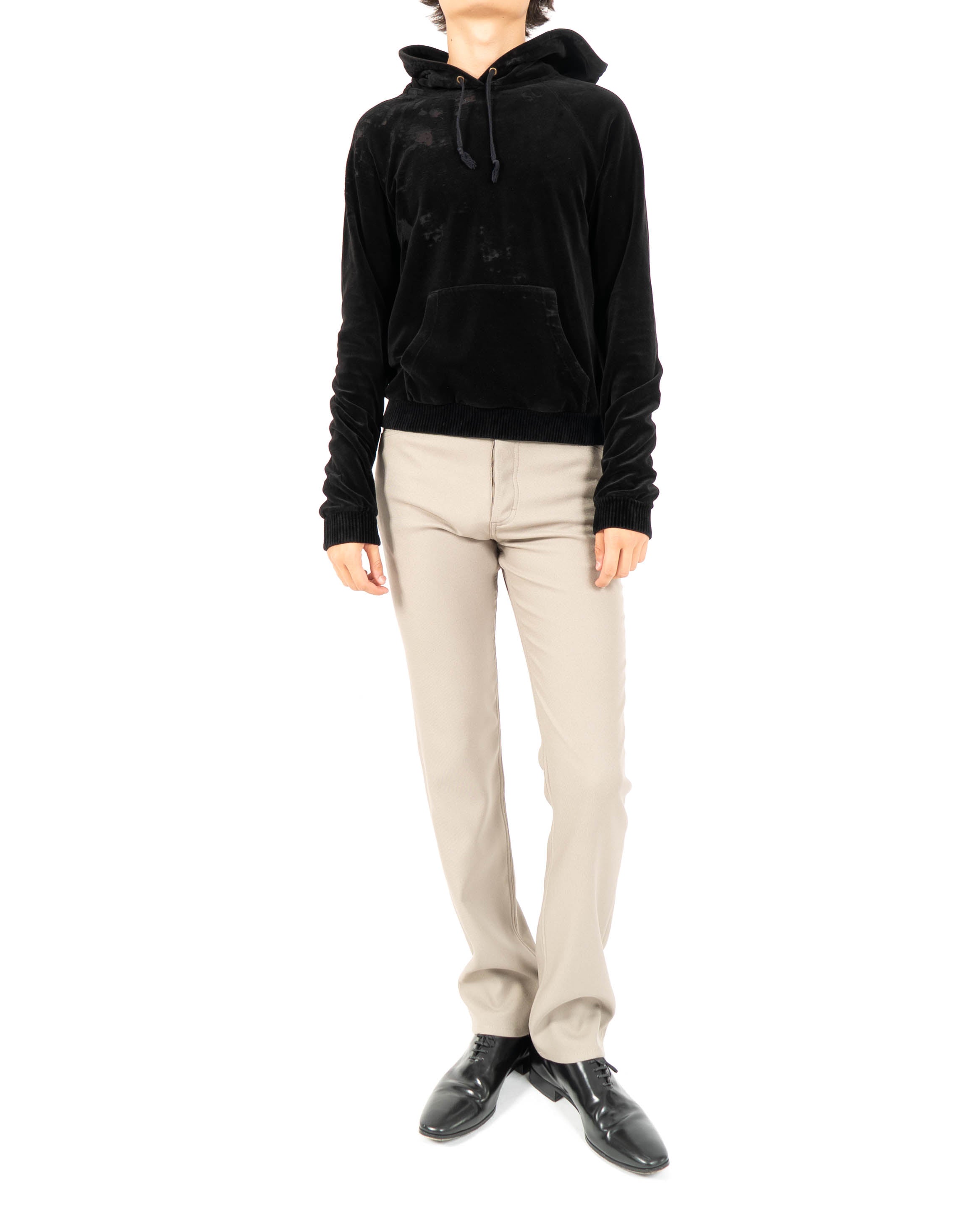 This Saint Laurent hoodie from FW18 reimagines casualwear with a subversive twist. Crafted from plush black velvet, the piece balances luxury and rebellion, while subtle distressing throughout introduces an intentionally used character. Its slouchy fit and soft feel contrast with the raw edge of the detailing, embodying Slimane’s ability to fuse refinement with grunge energy. A piece that transforms the everyday hoodie into something elevated.