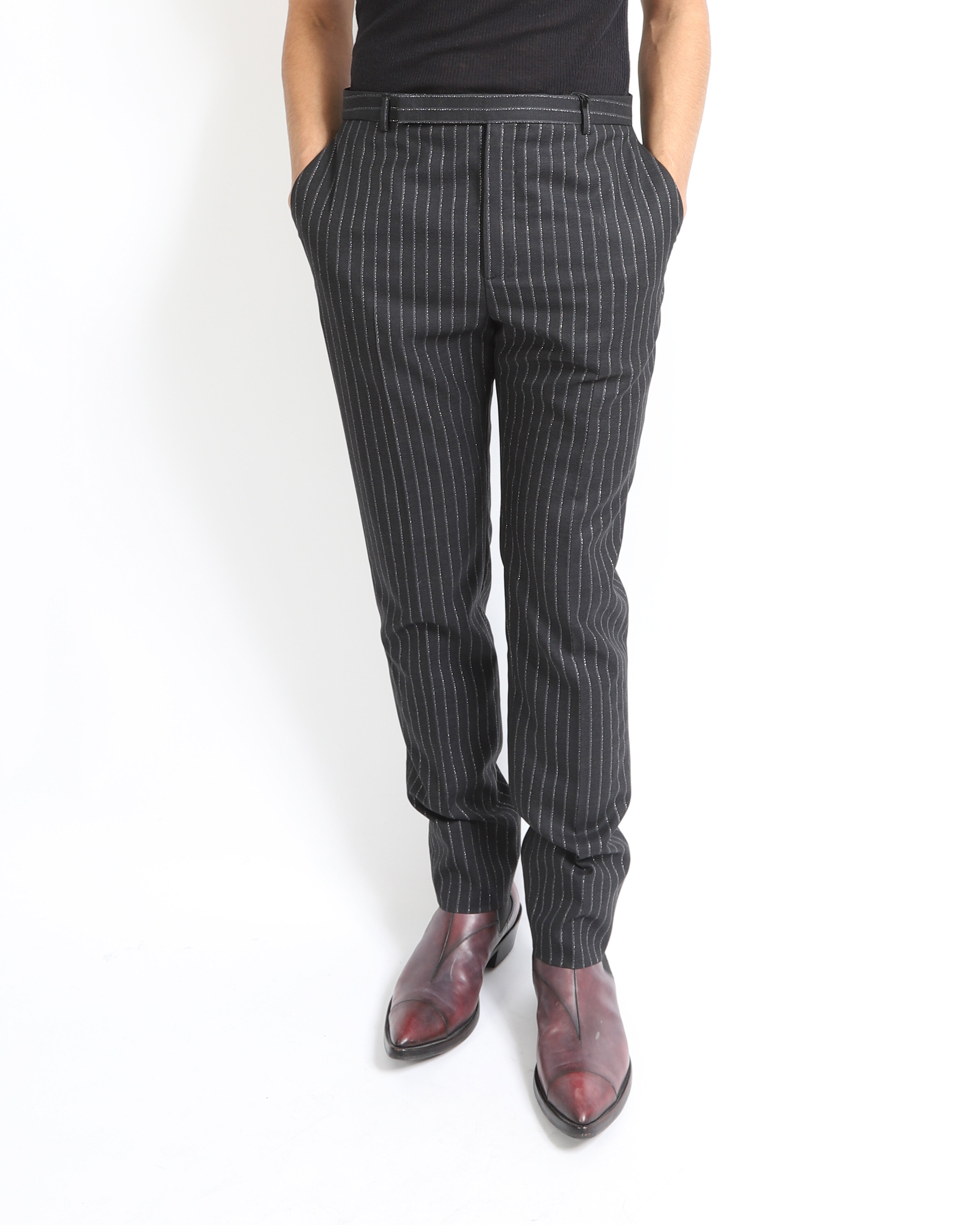 FW19 Slim Fit Glitter Trousers in Pinstriped Wool