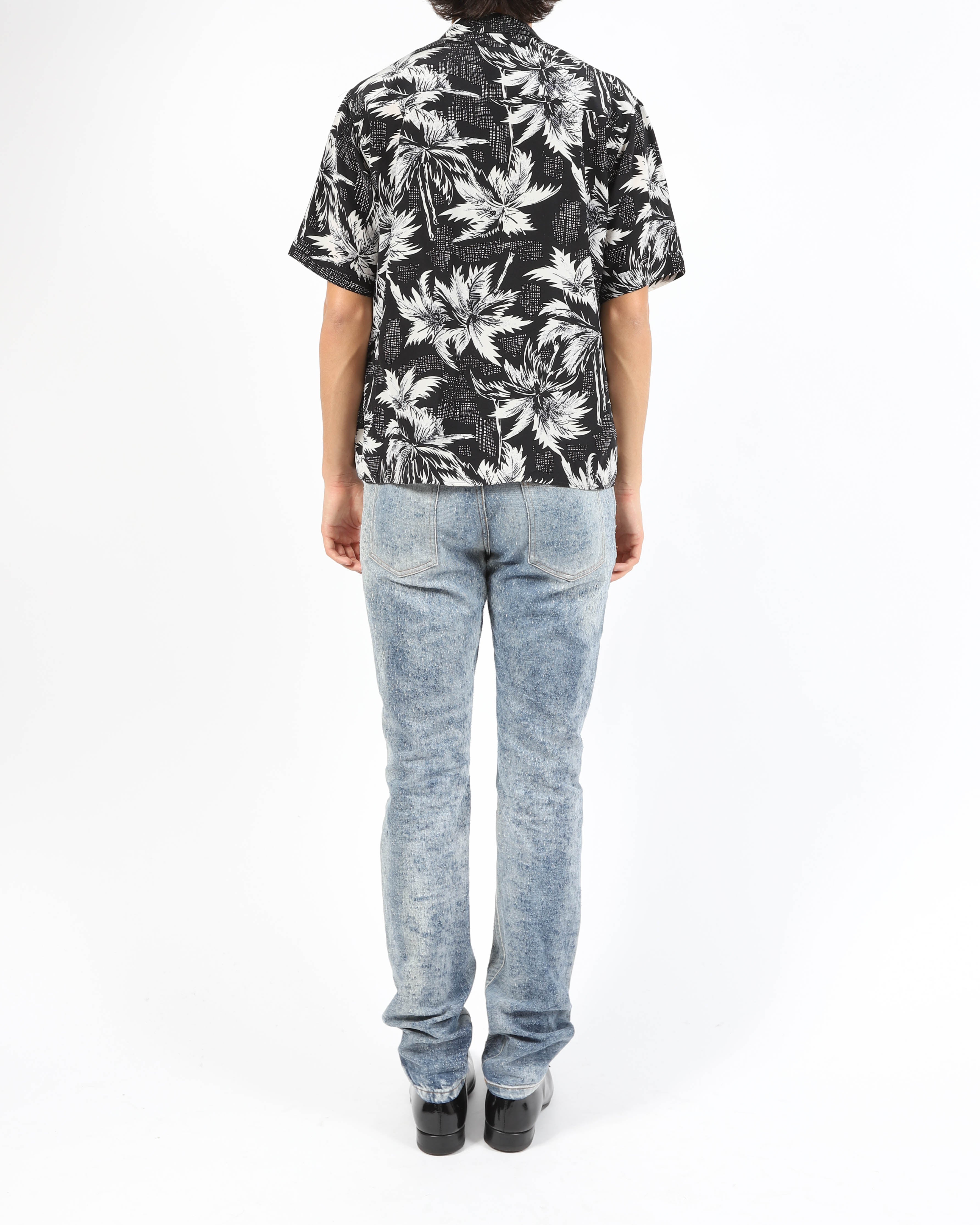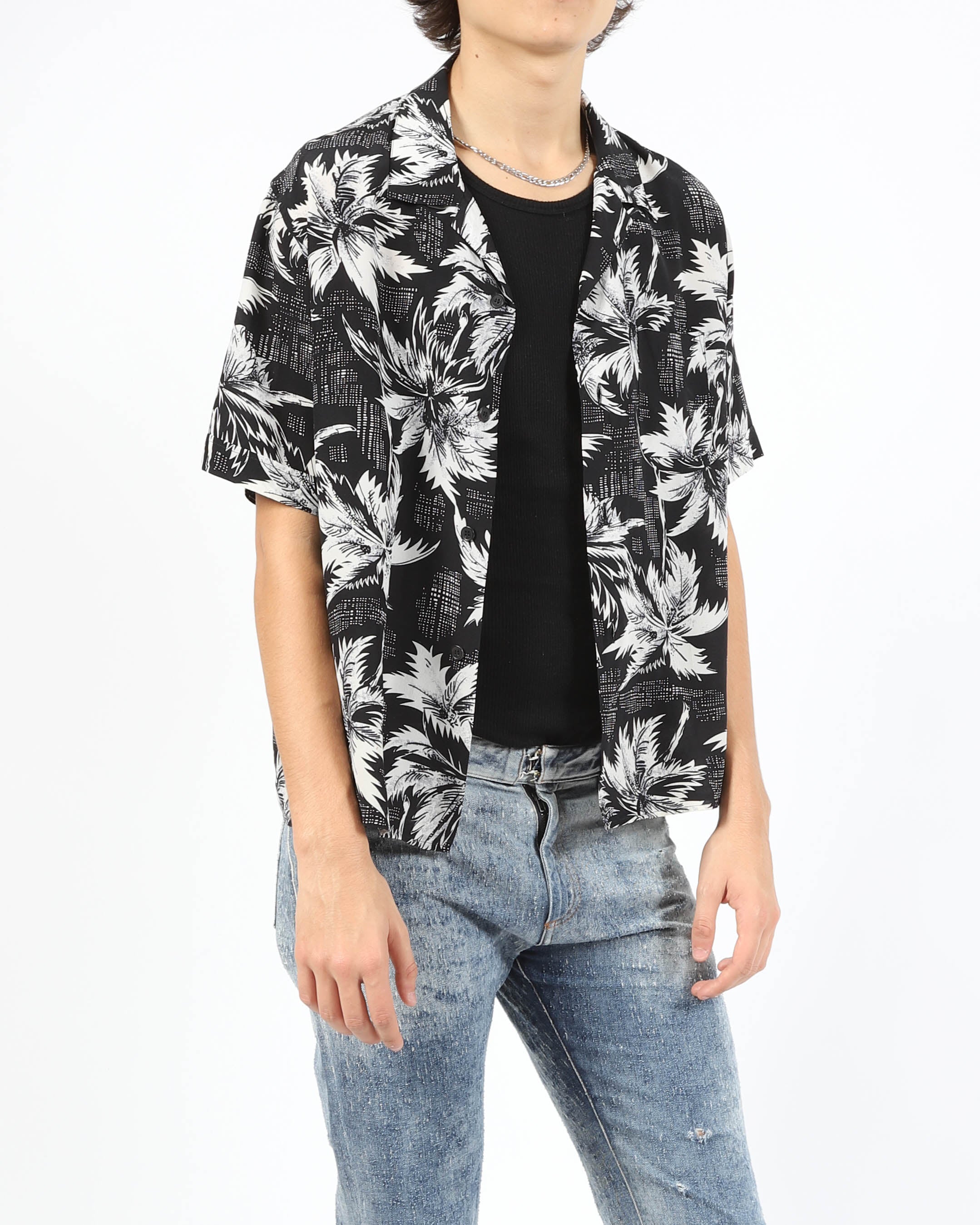 SS14 Shortsleeve Shirt in Black & White Floral Printed Silk