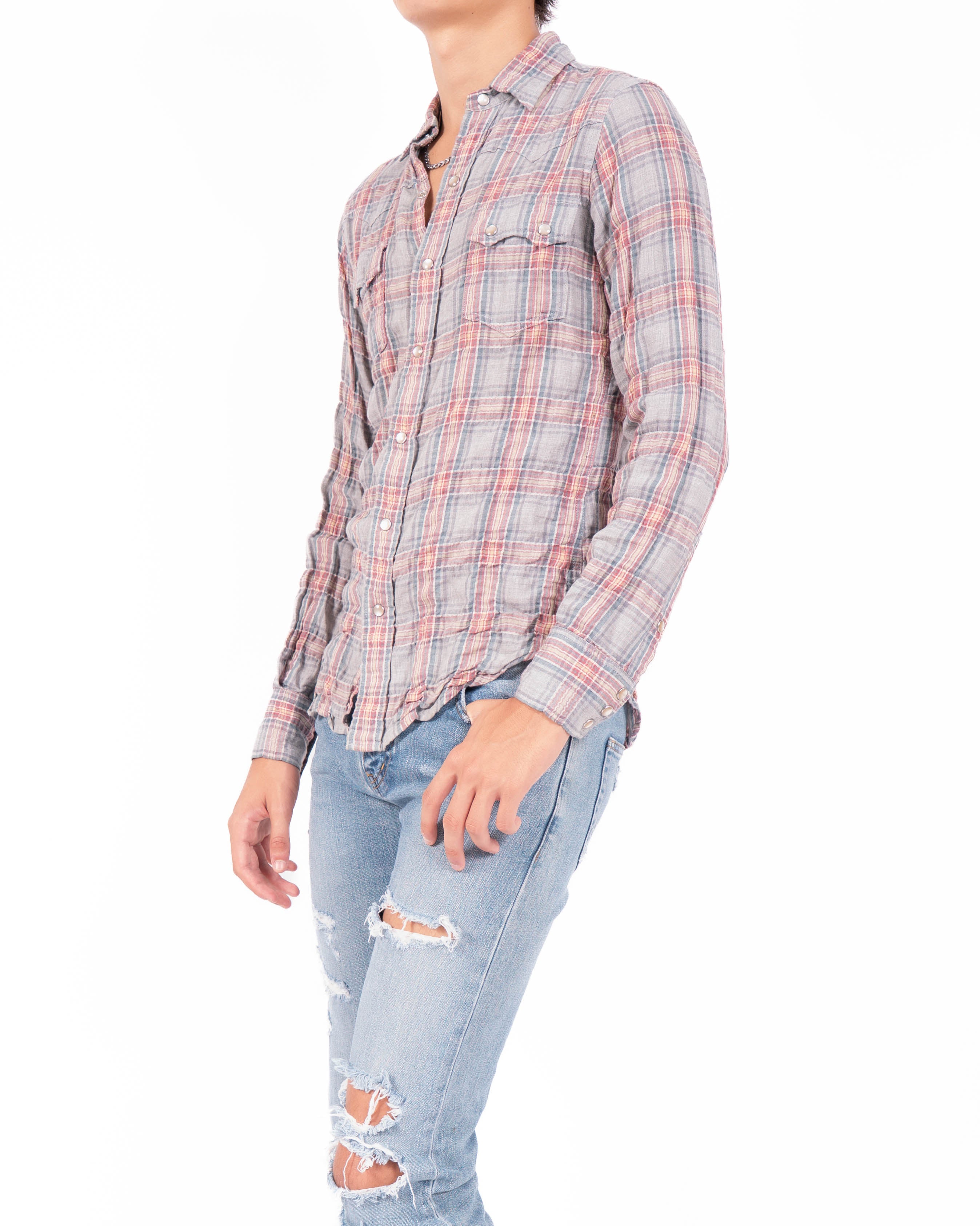 SS17 Flannel Shirt in Crinkled Checked Wool