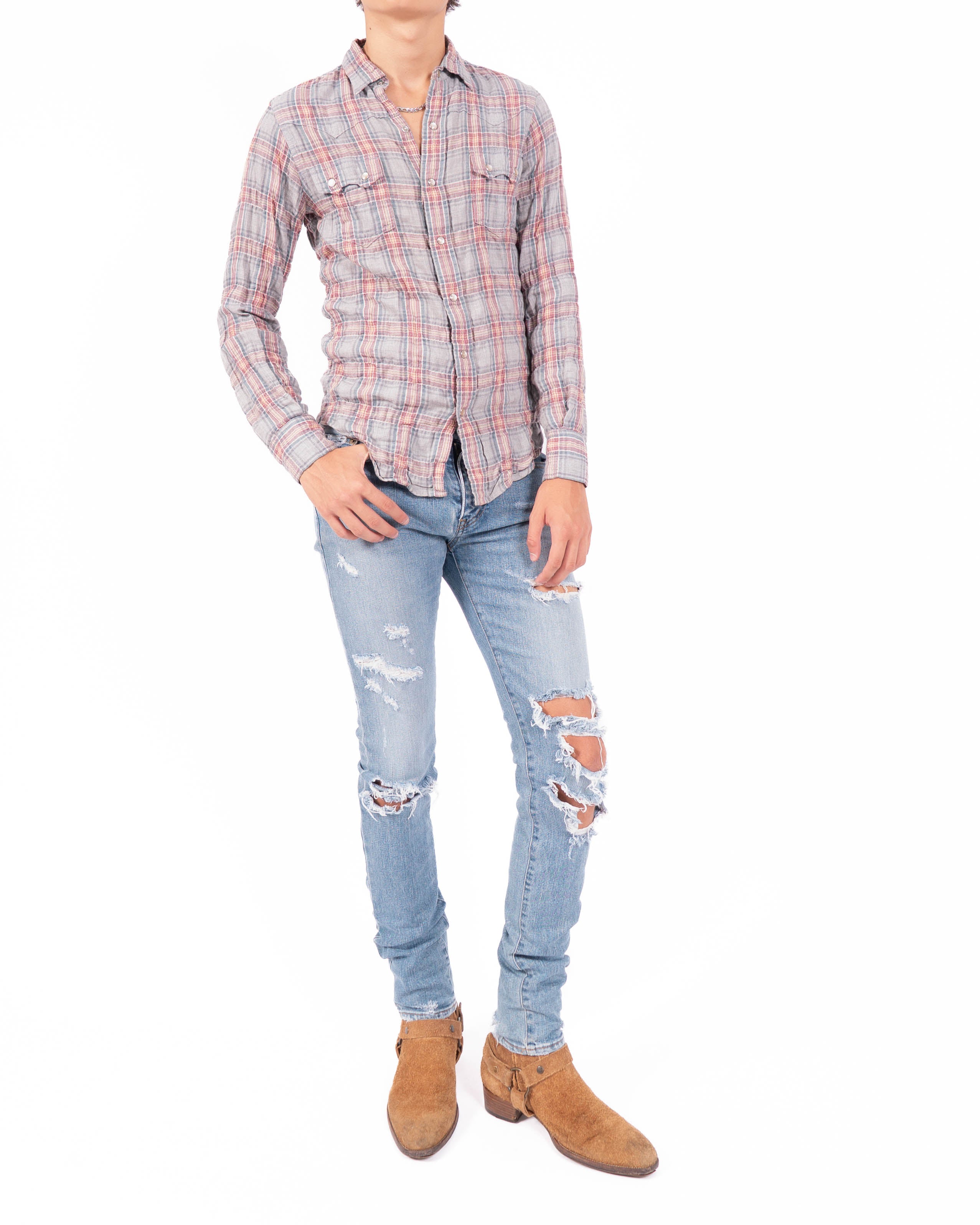 This piece reflects Hedi Slimane’s vision of combining refinement with everyday wear, transforming the grunge staple into something quietly luxurious. The muted red and grey check pattern adds depth while remaining understated, making the shirt versatile for layering over a tee or pairing with denim. With its soft hand and subtle irregular finish, the SS17 Flannel Shirt embodies Saint Laurent’s balance of elegance and rebellion.