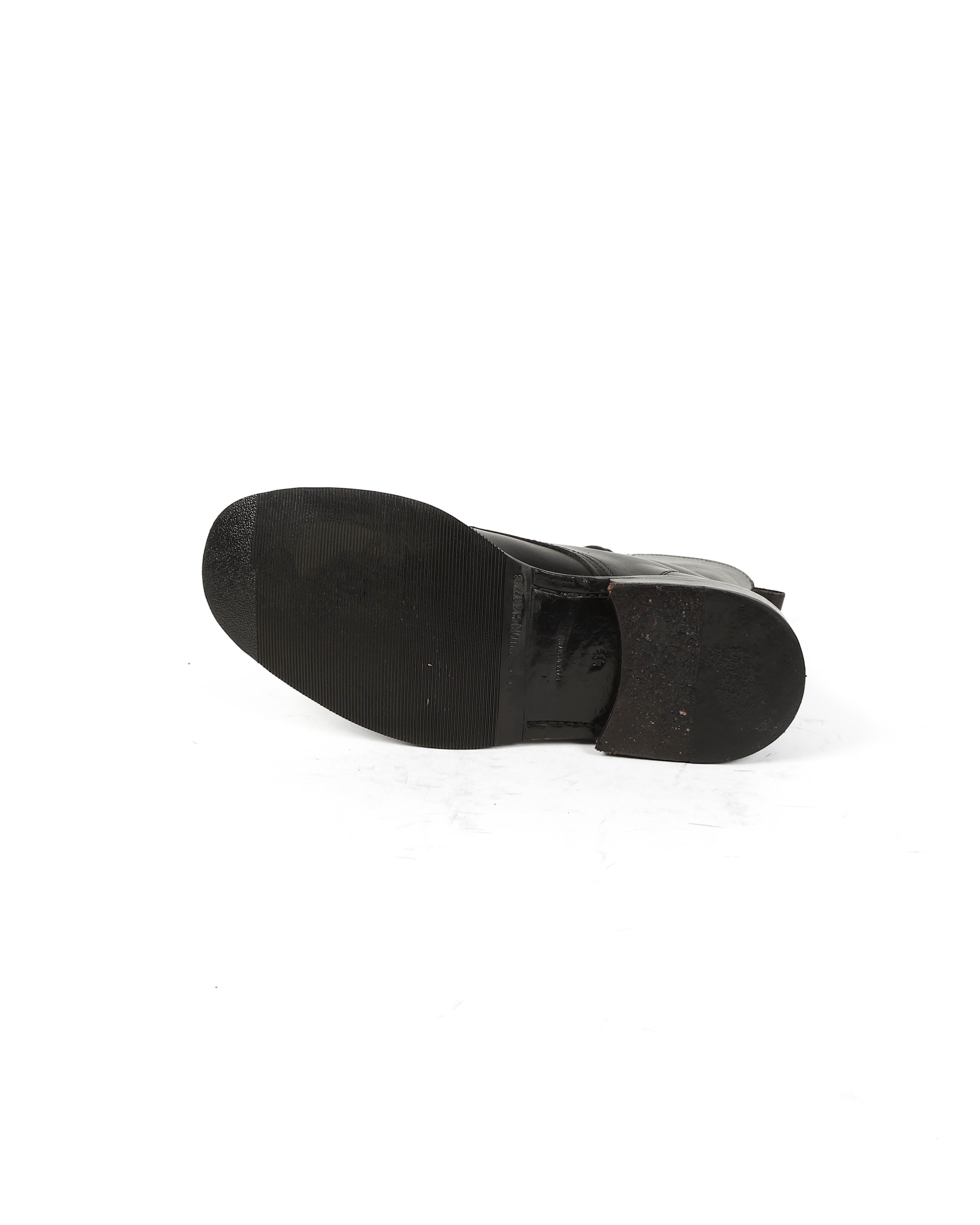 Heavy stitching reinforces the upper, while a robust sole grounds the design in function. The shape is muscular without being heeled, holding form while offering a powerful line. As a rare piece from the Hedi period, these boots carry an archival weight that speaks to their era of elevated utility.