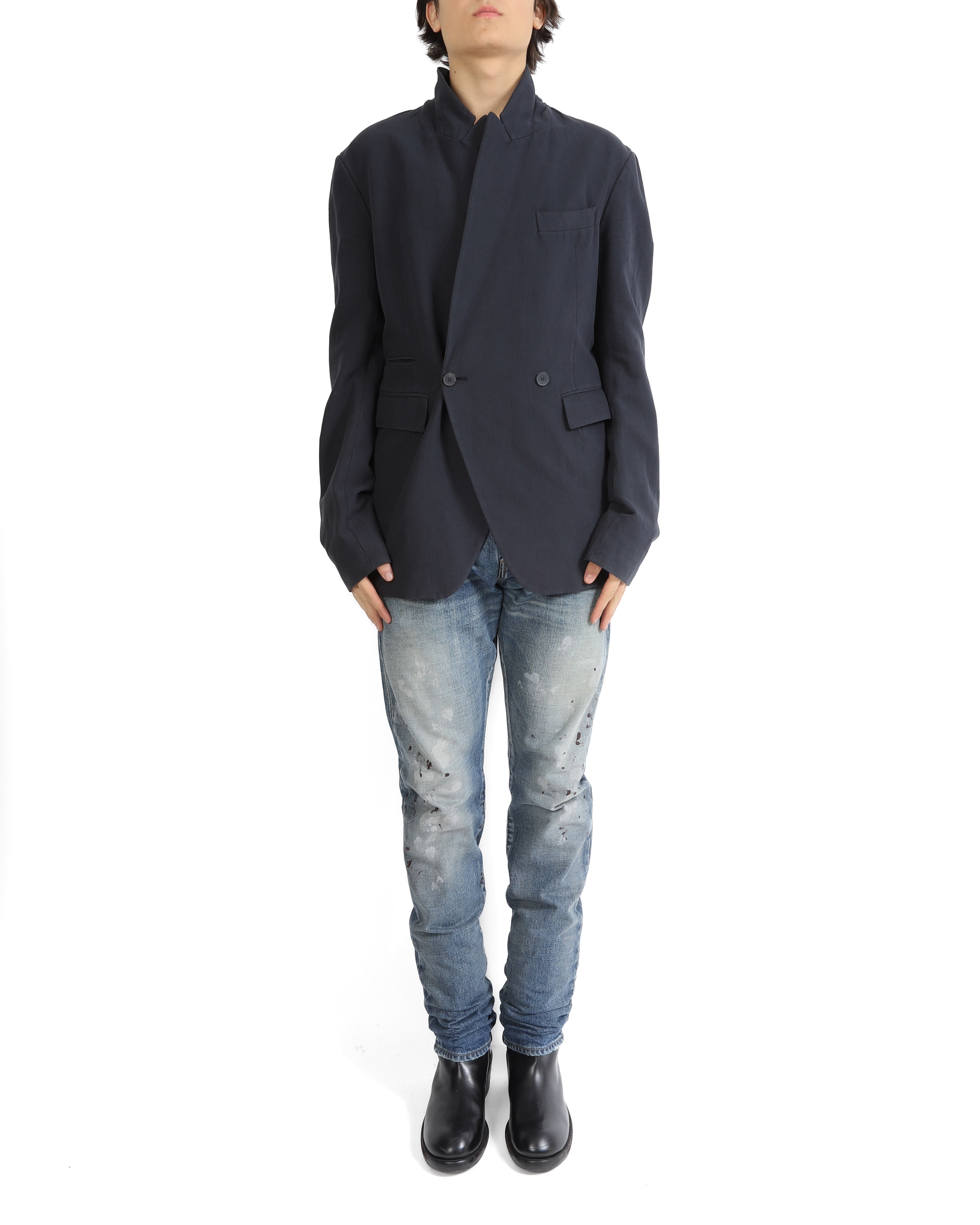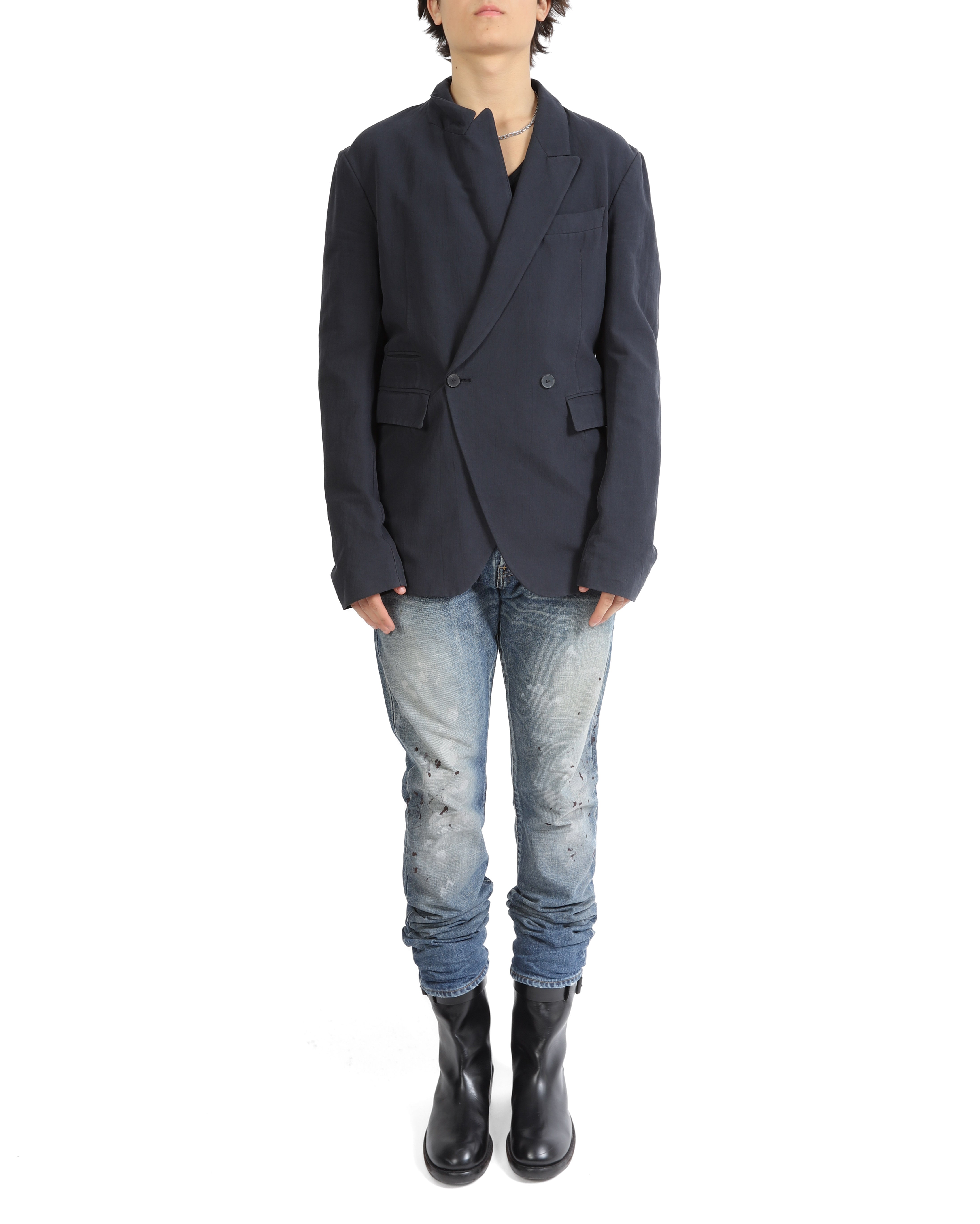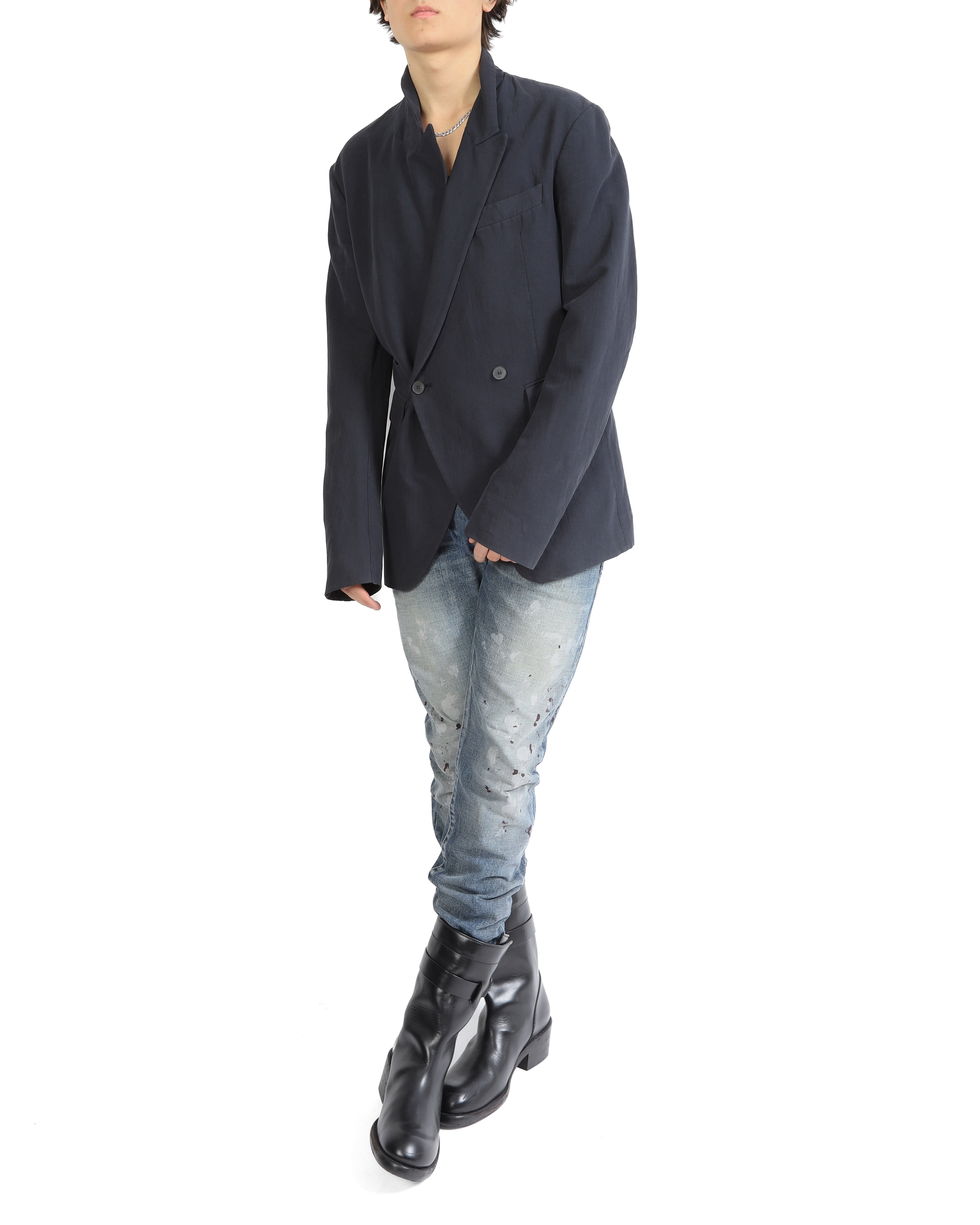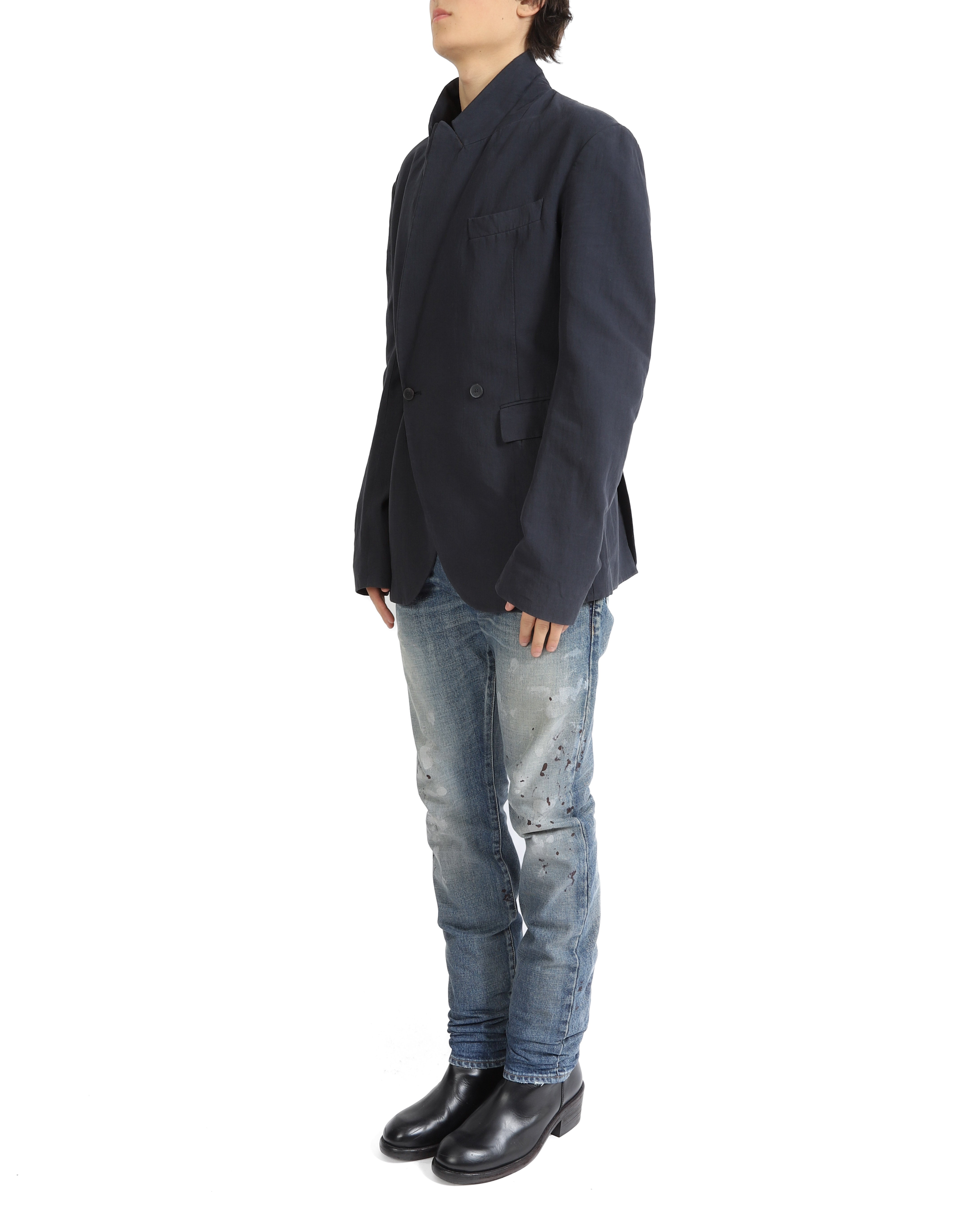 SS17 Double Breasted Blazer in Blue Cotton & Linen