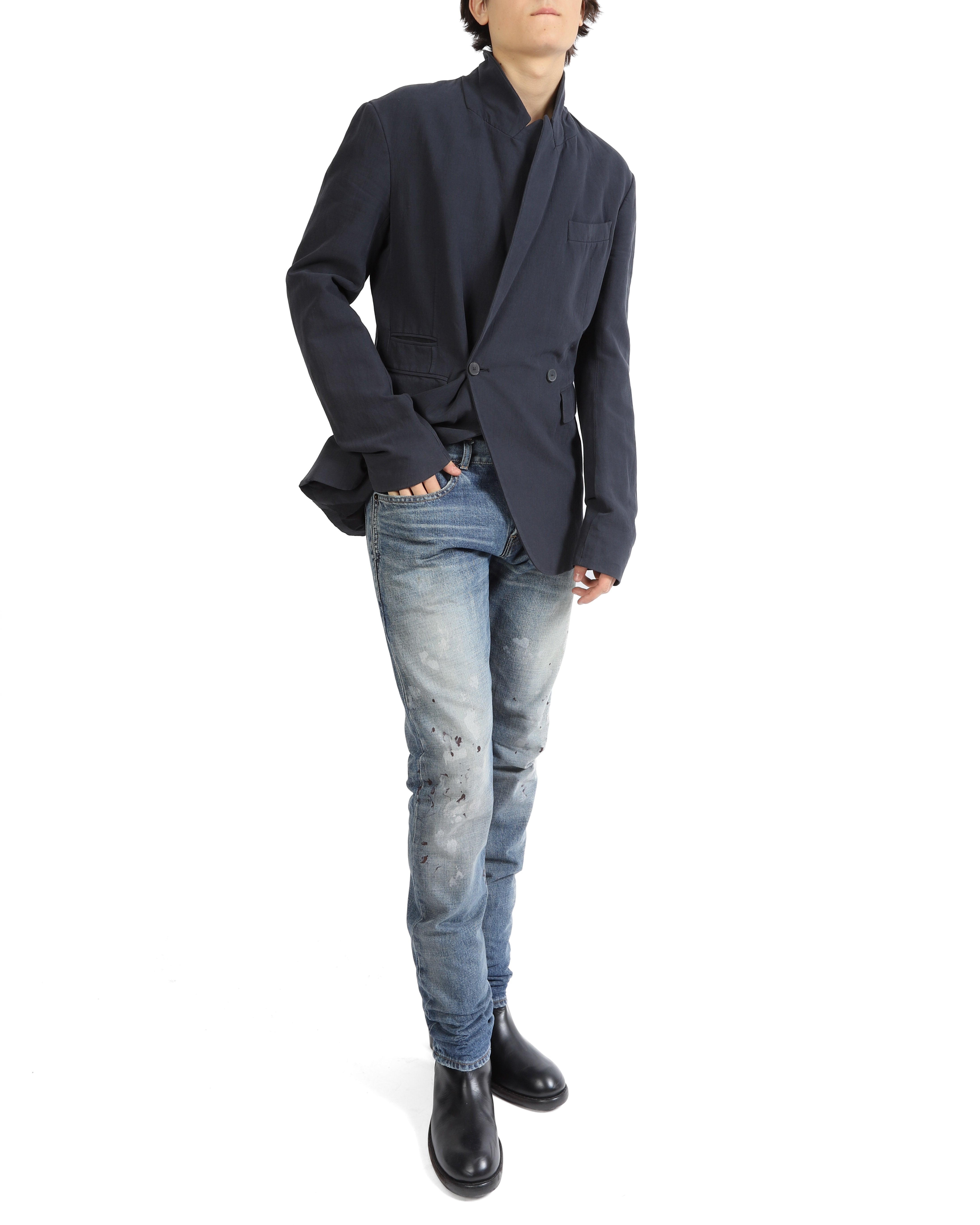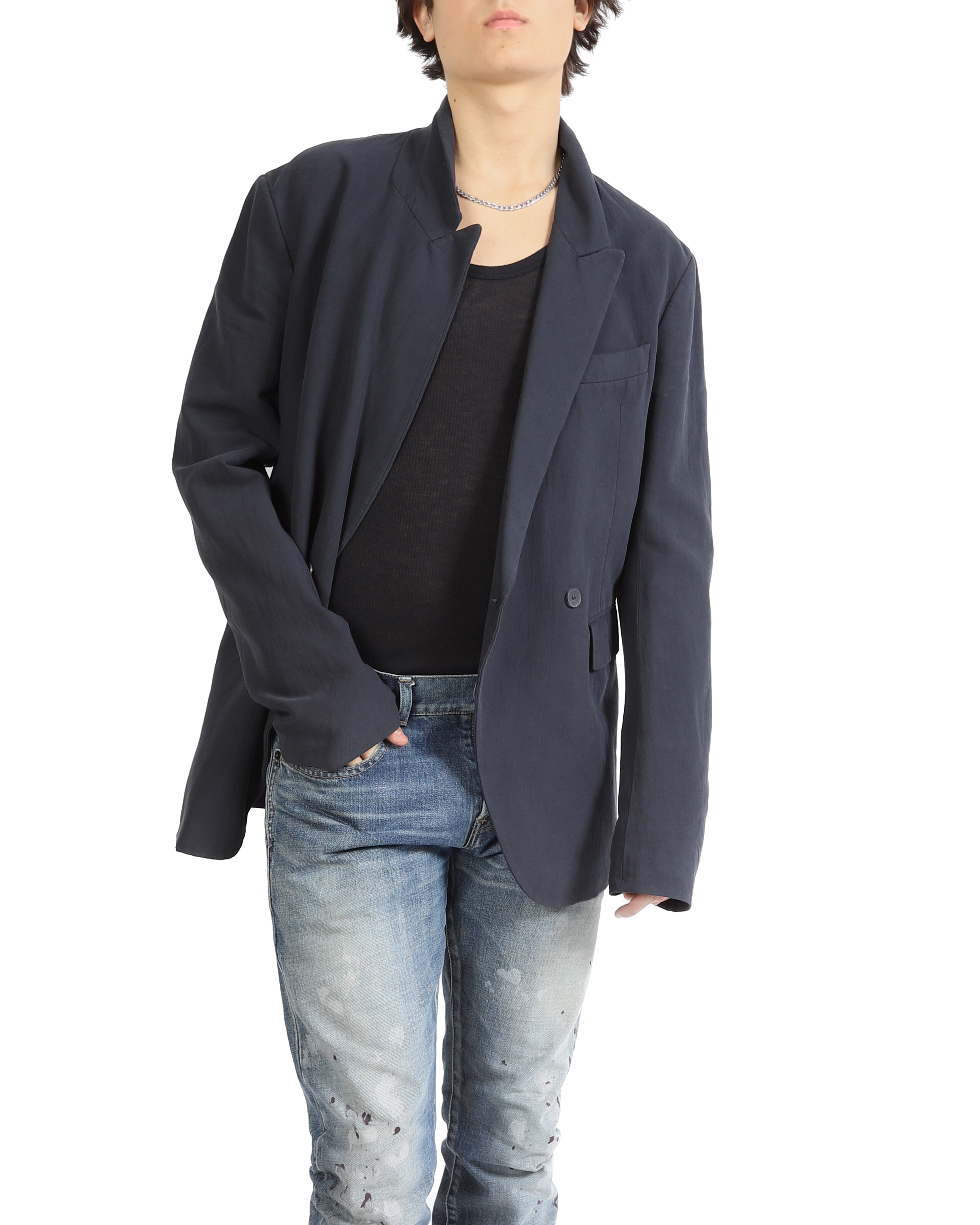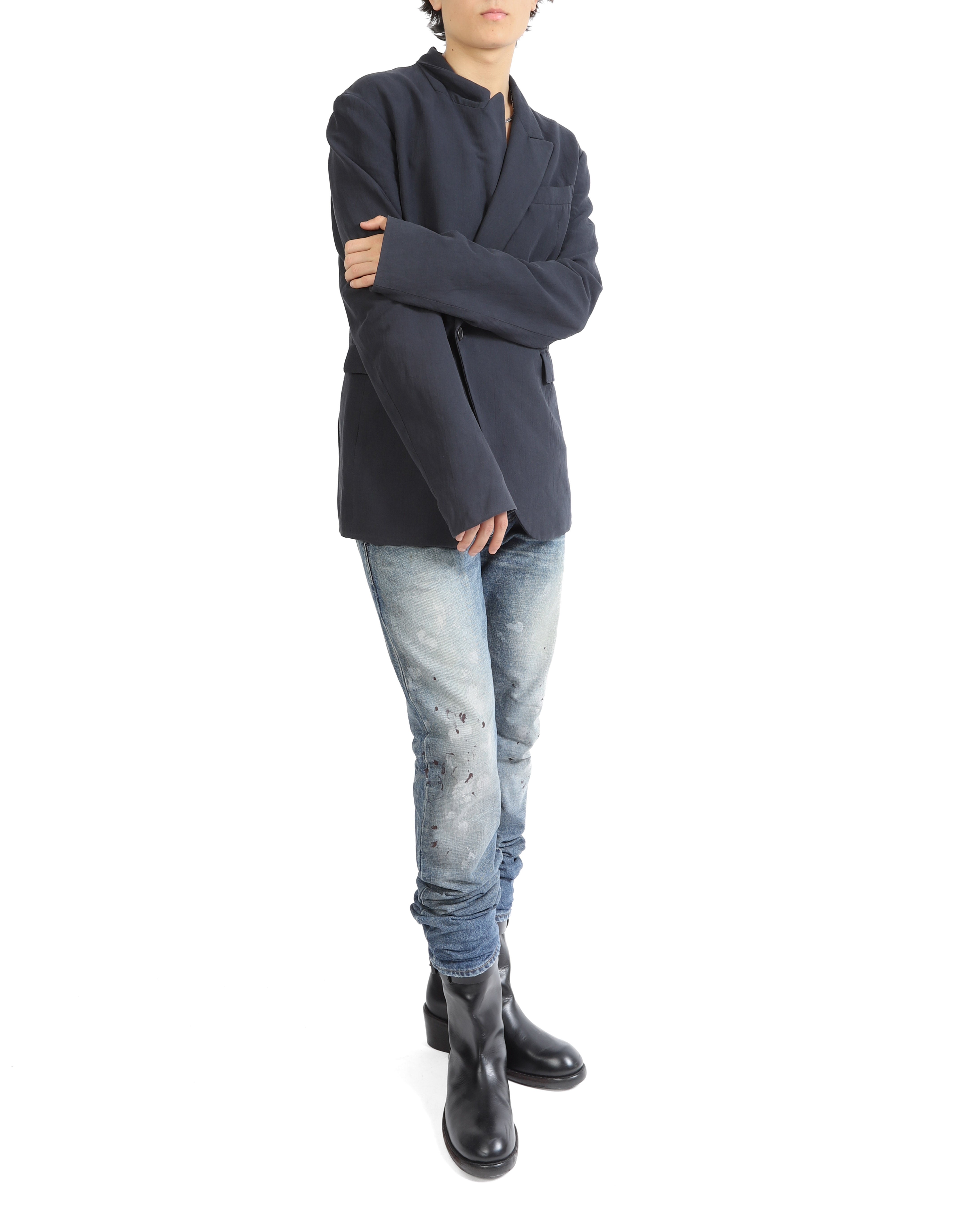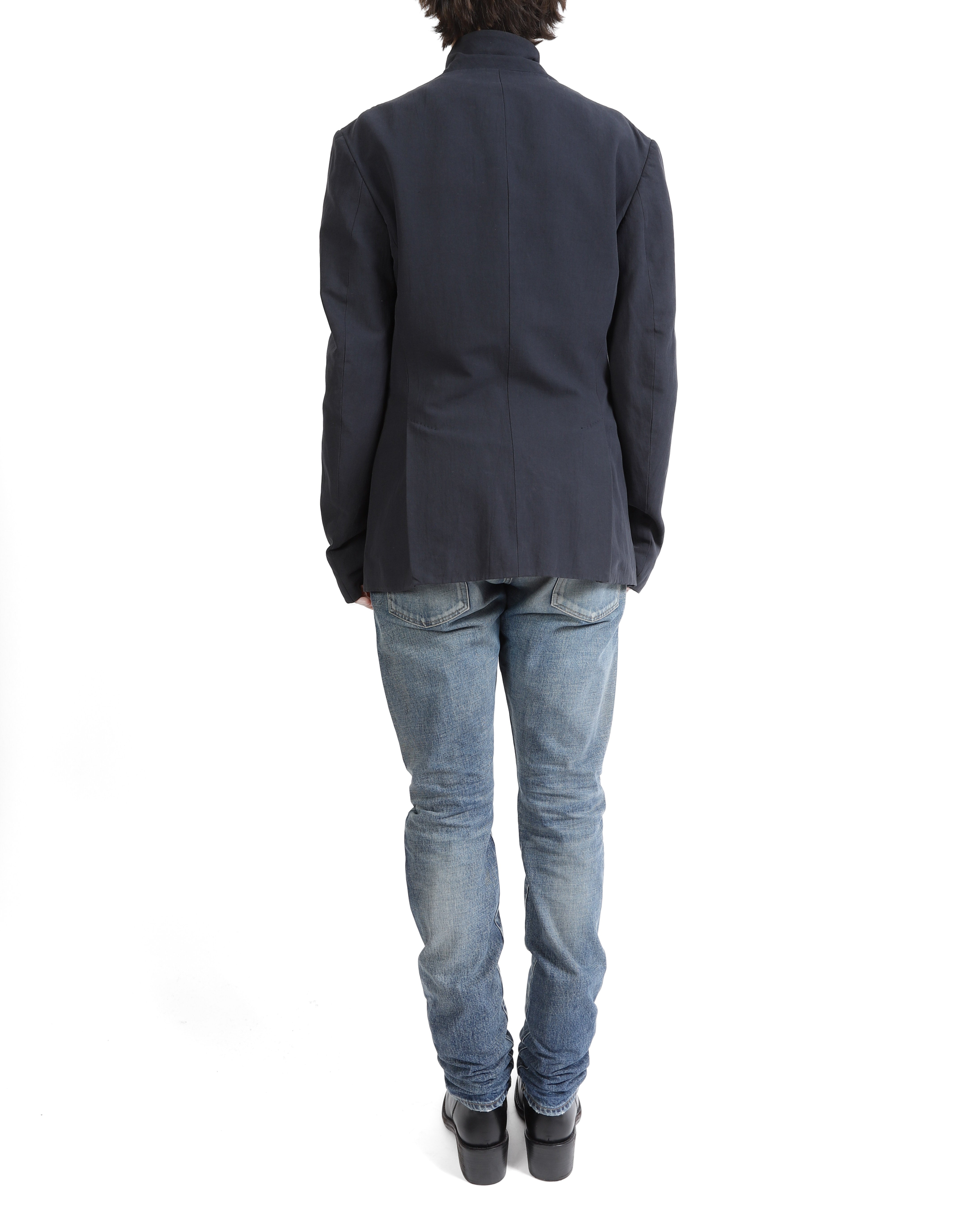 SS17 Double Breasted Blazer in Blue Cotton & Linen