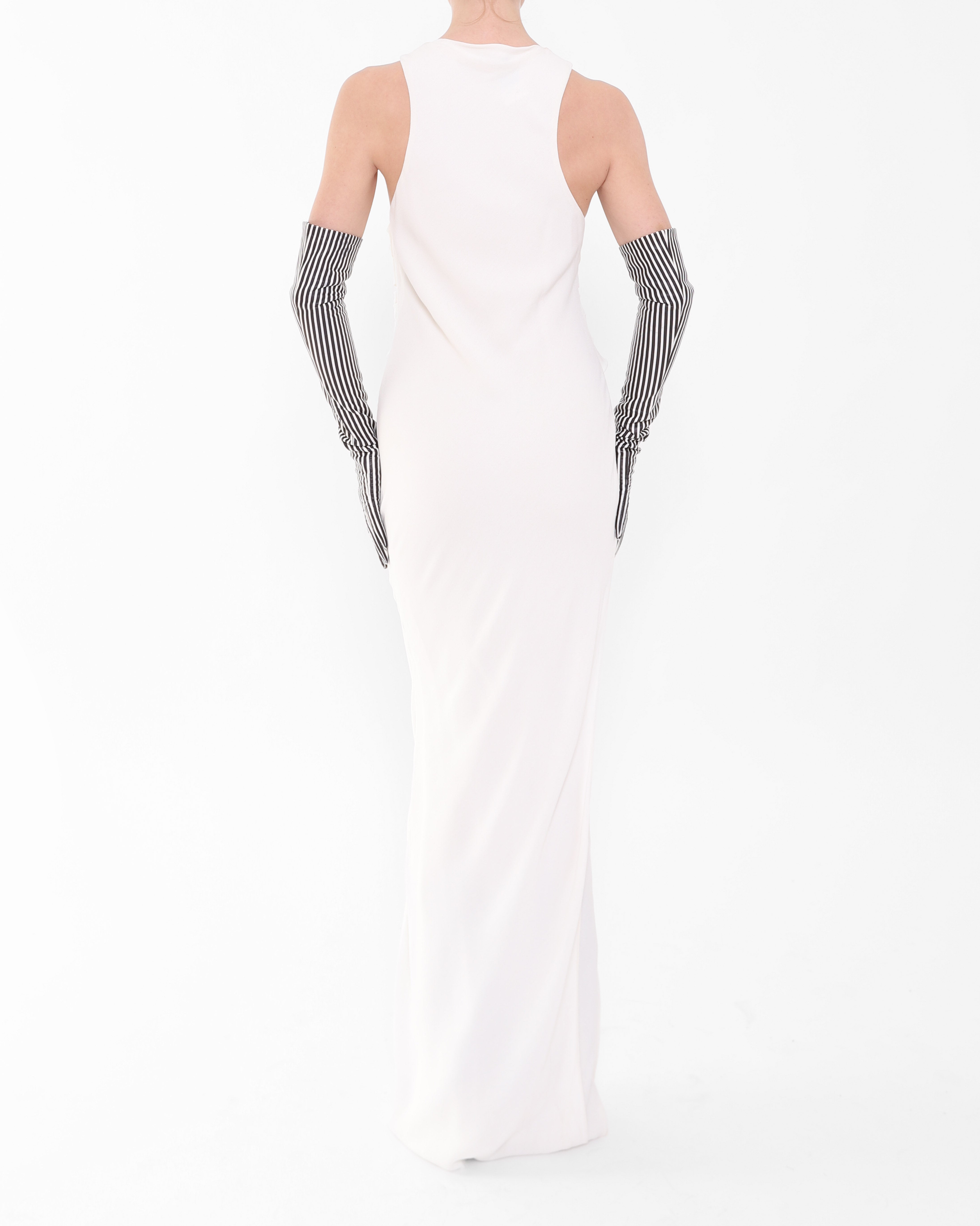 SS18 Draped Black Dress in White Silk