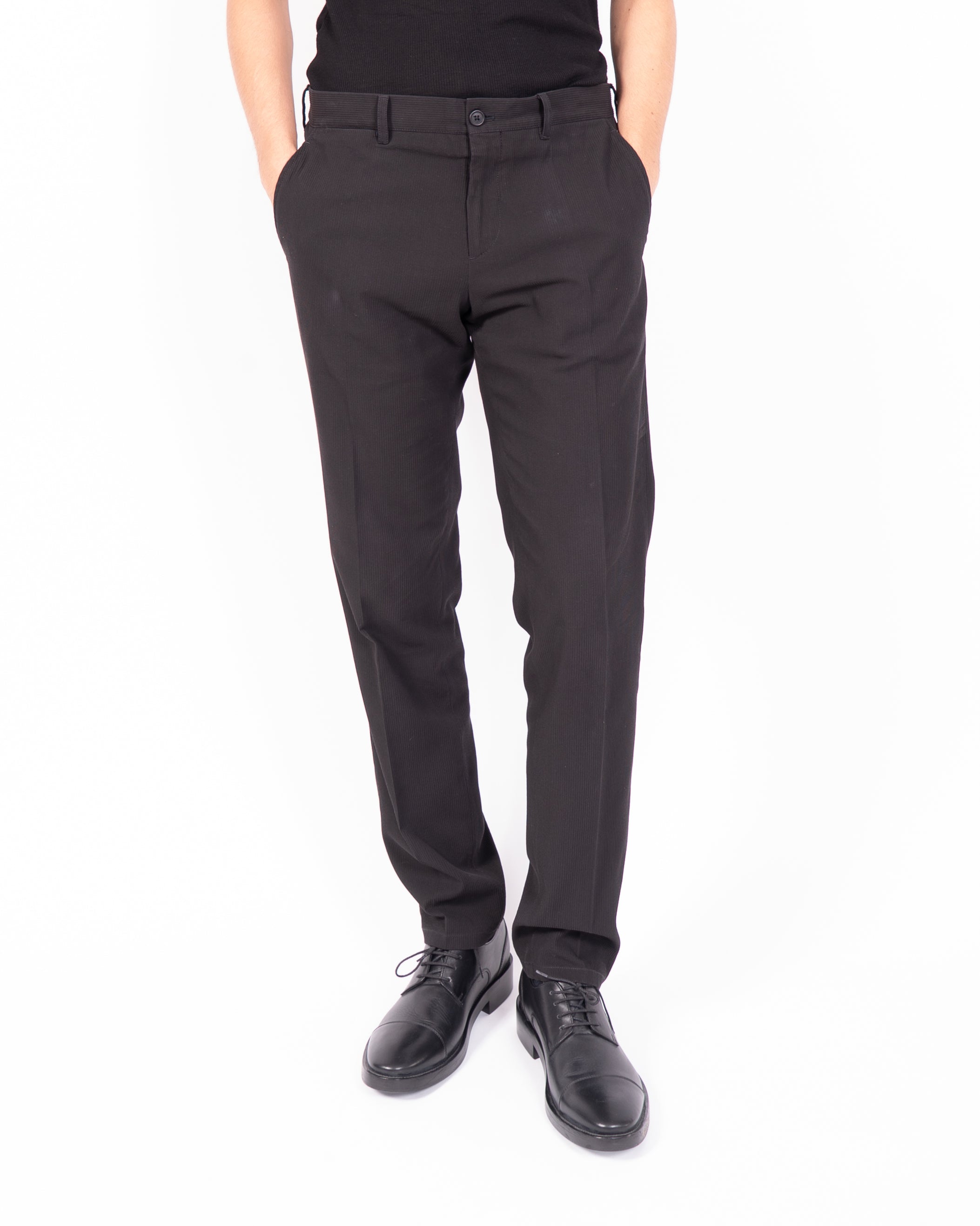 Cut with a relaxed straight leg, the silhouette balances ease and proportion. Side slash pockets and a clean waistband maintain functionality without clutter. The deep black tone lets the fabric’s surface take center stage.