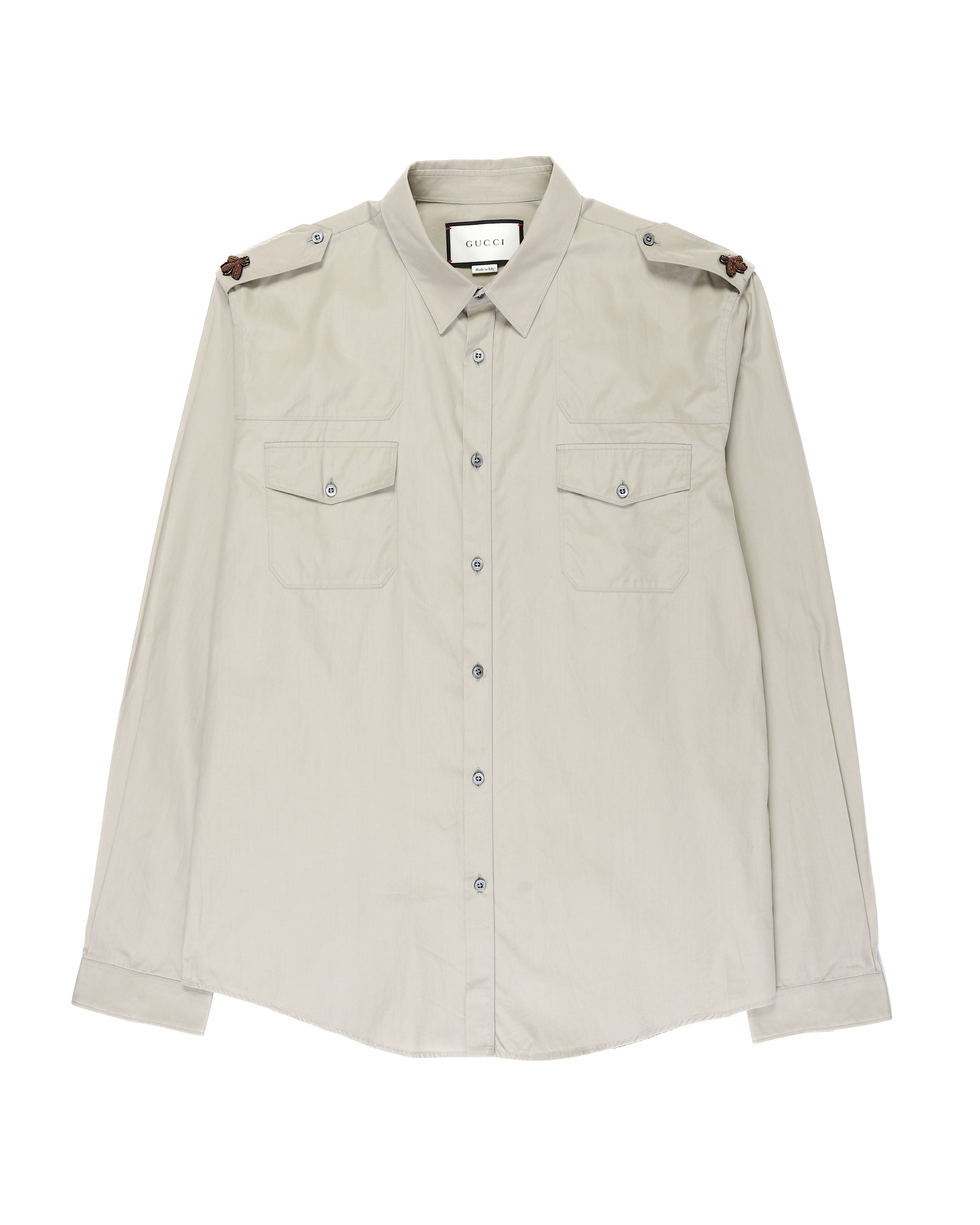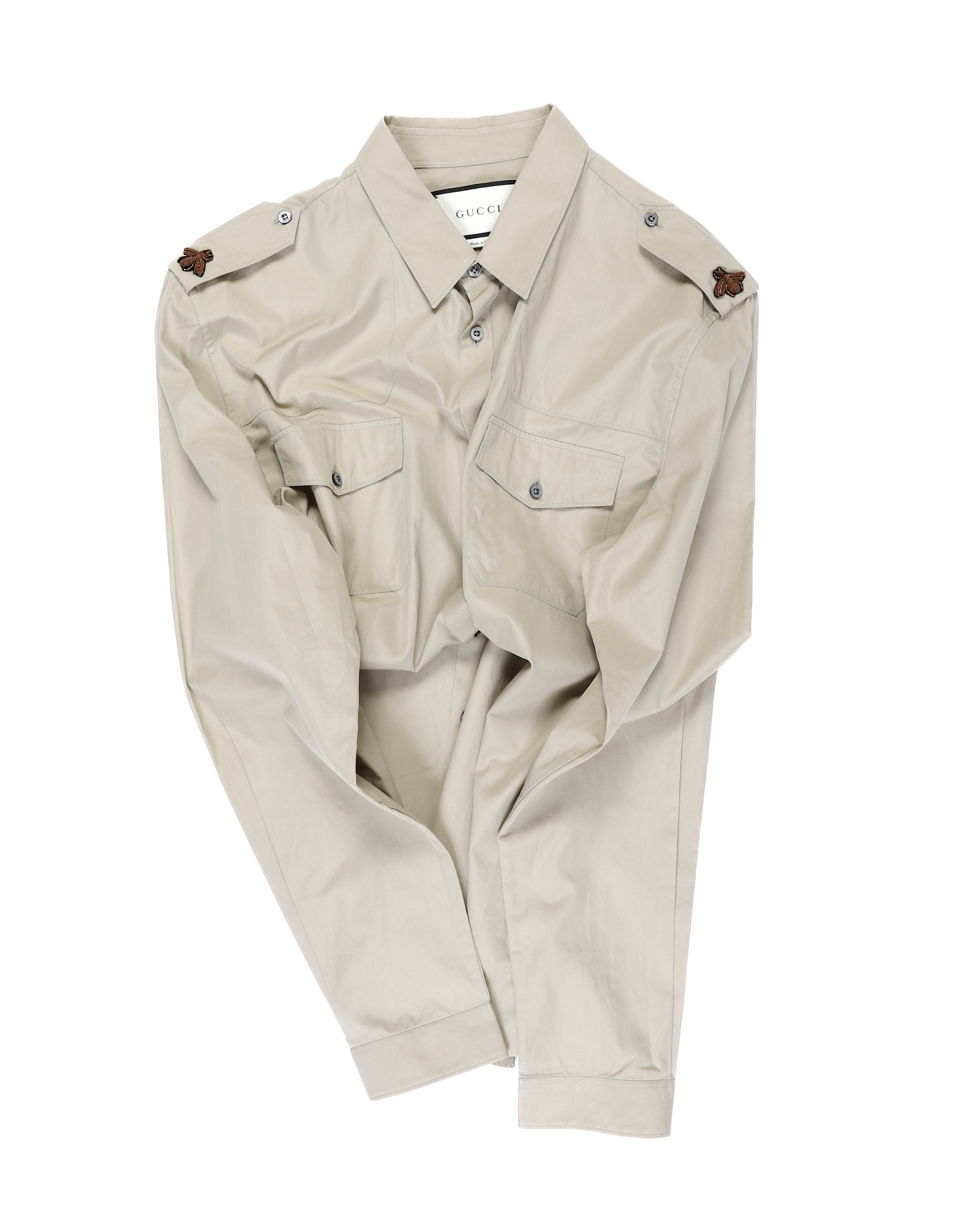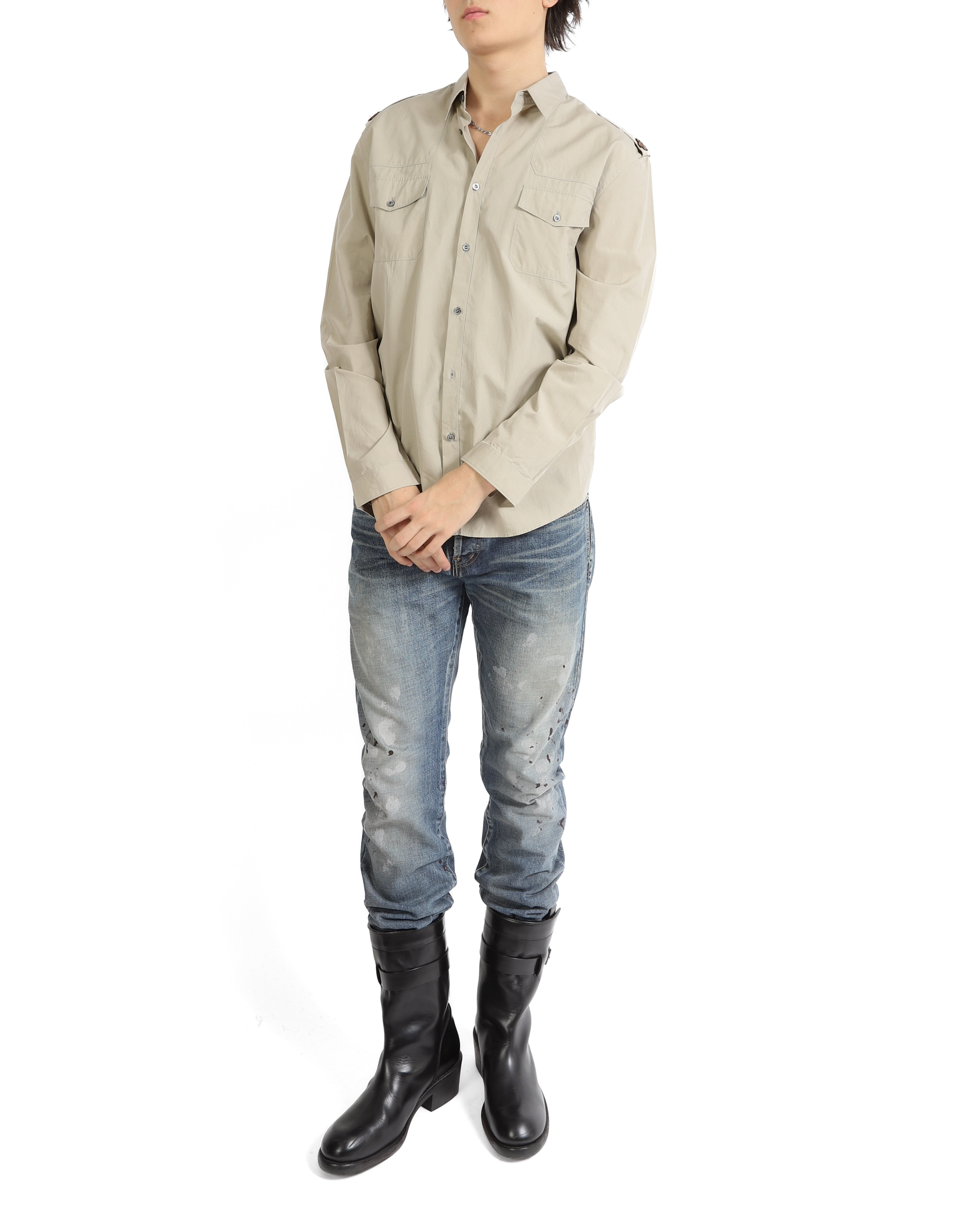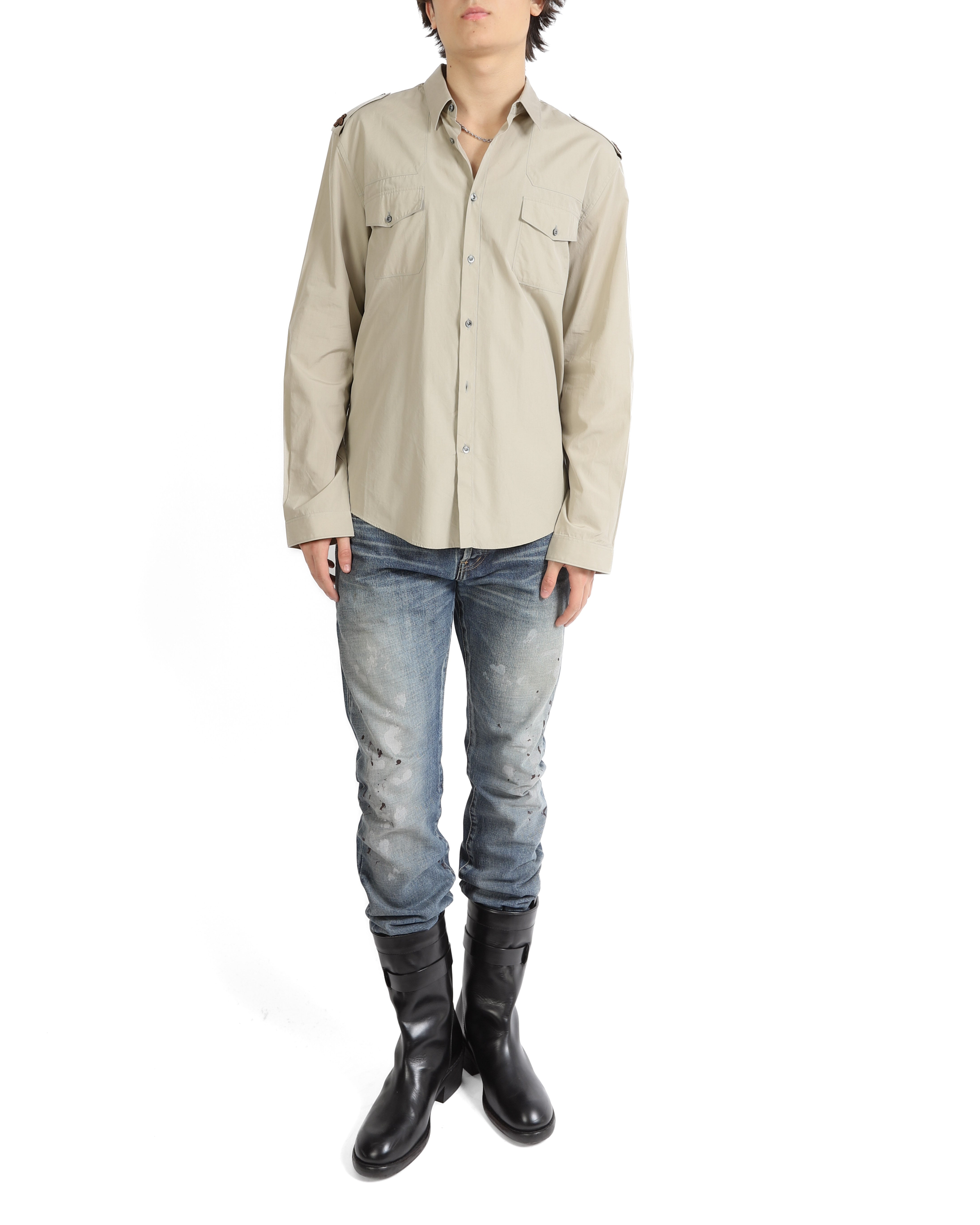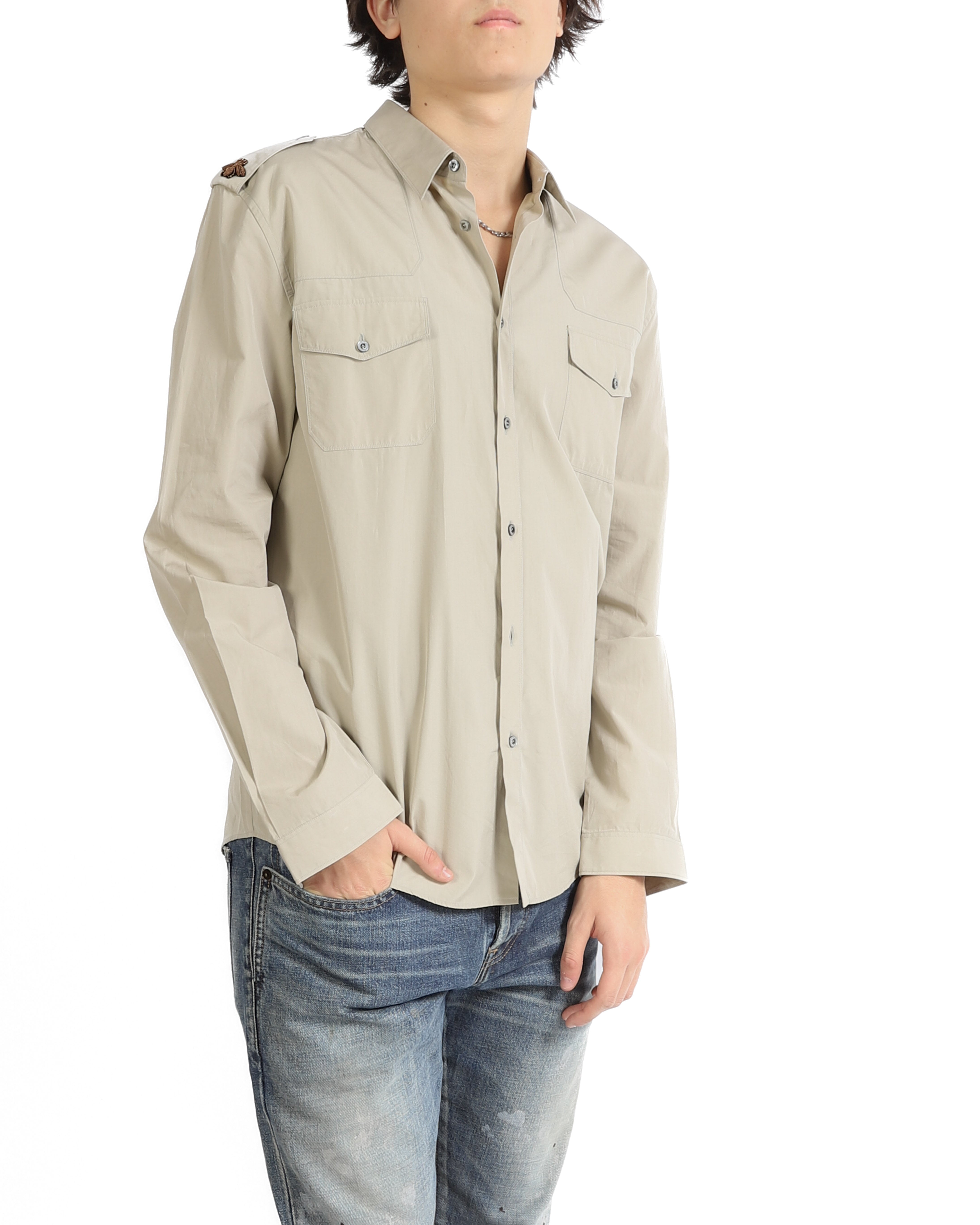 FW16 Metal Cat Applique Beige Workwear Shirt