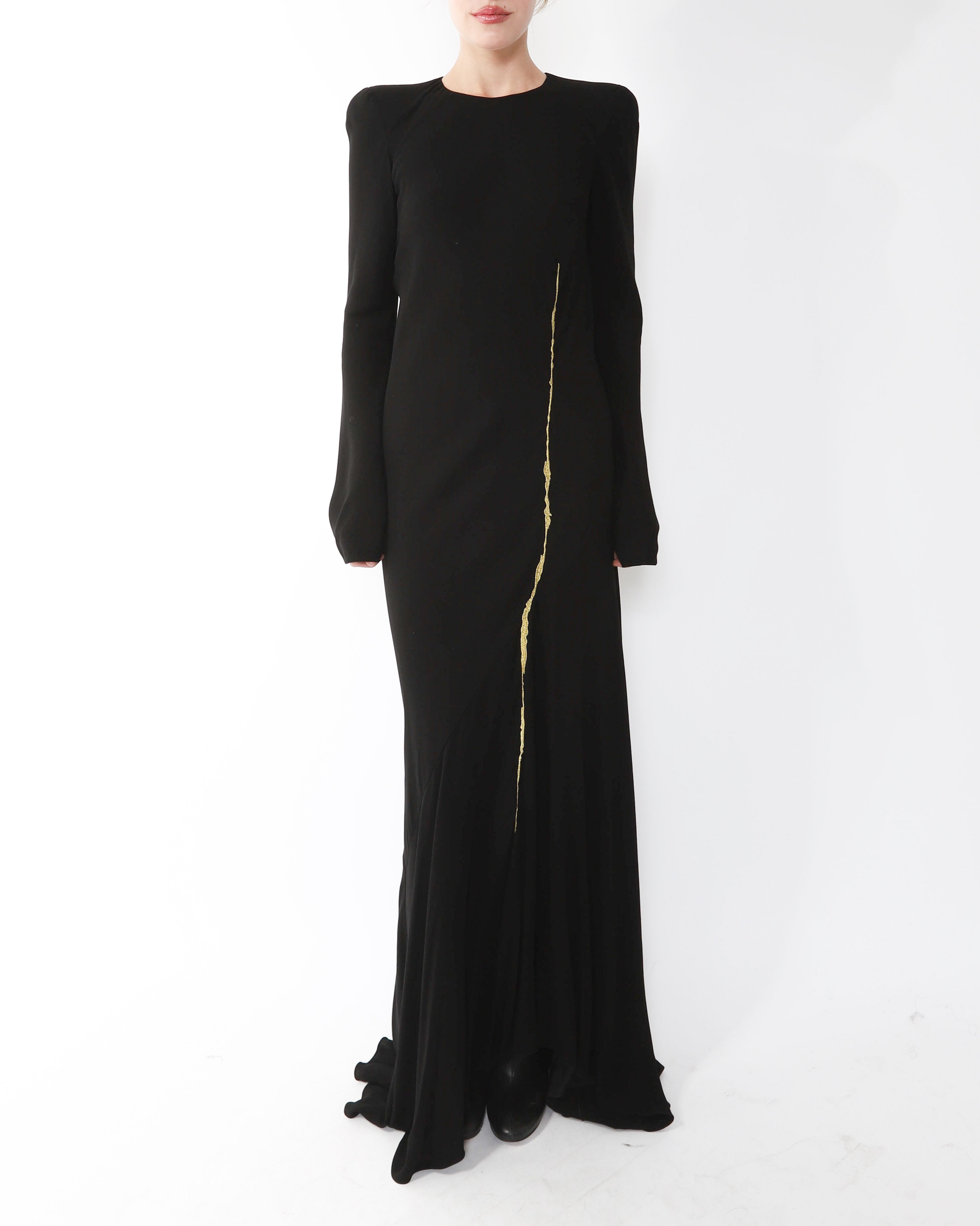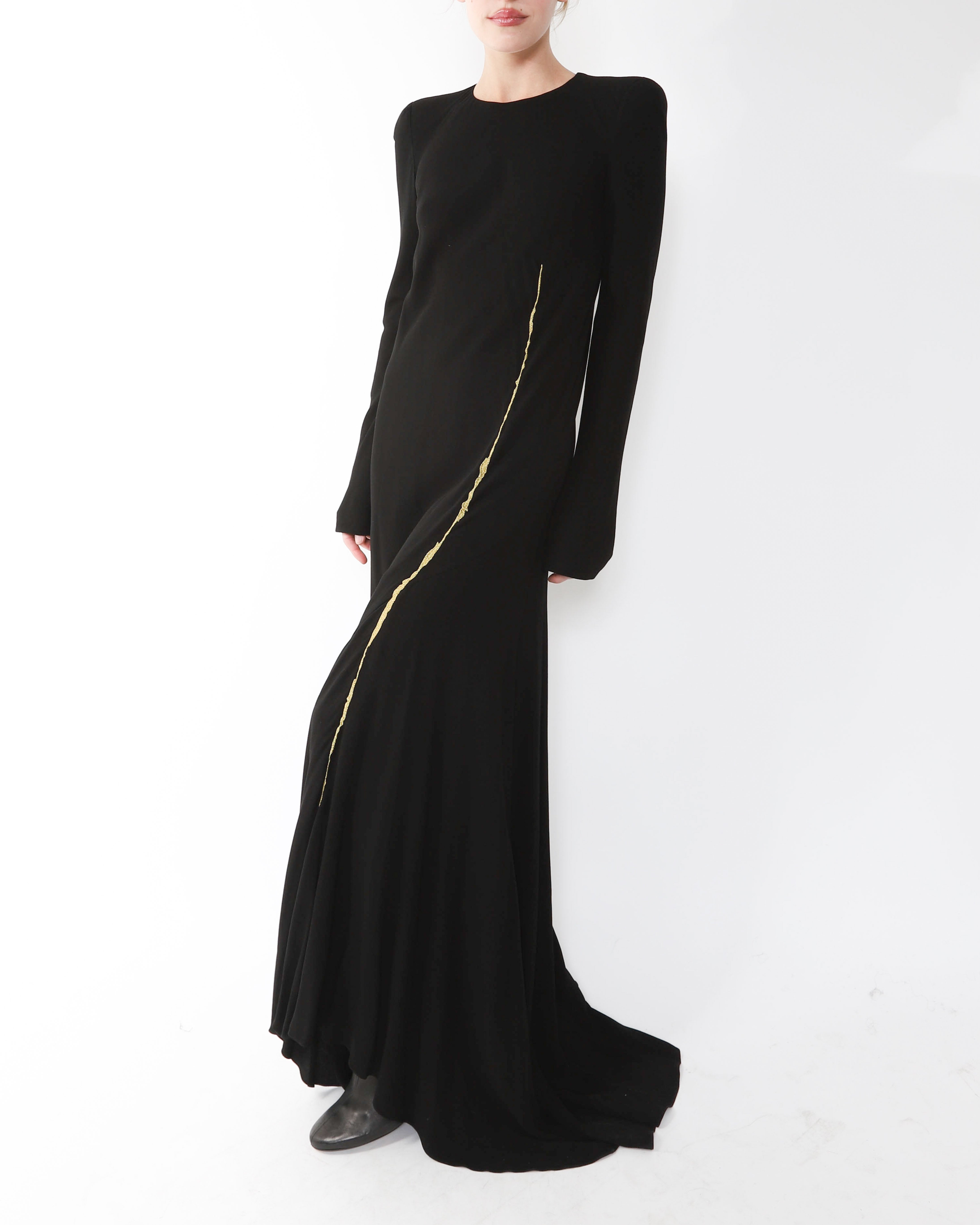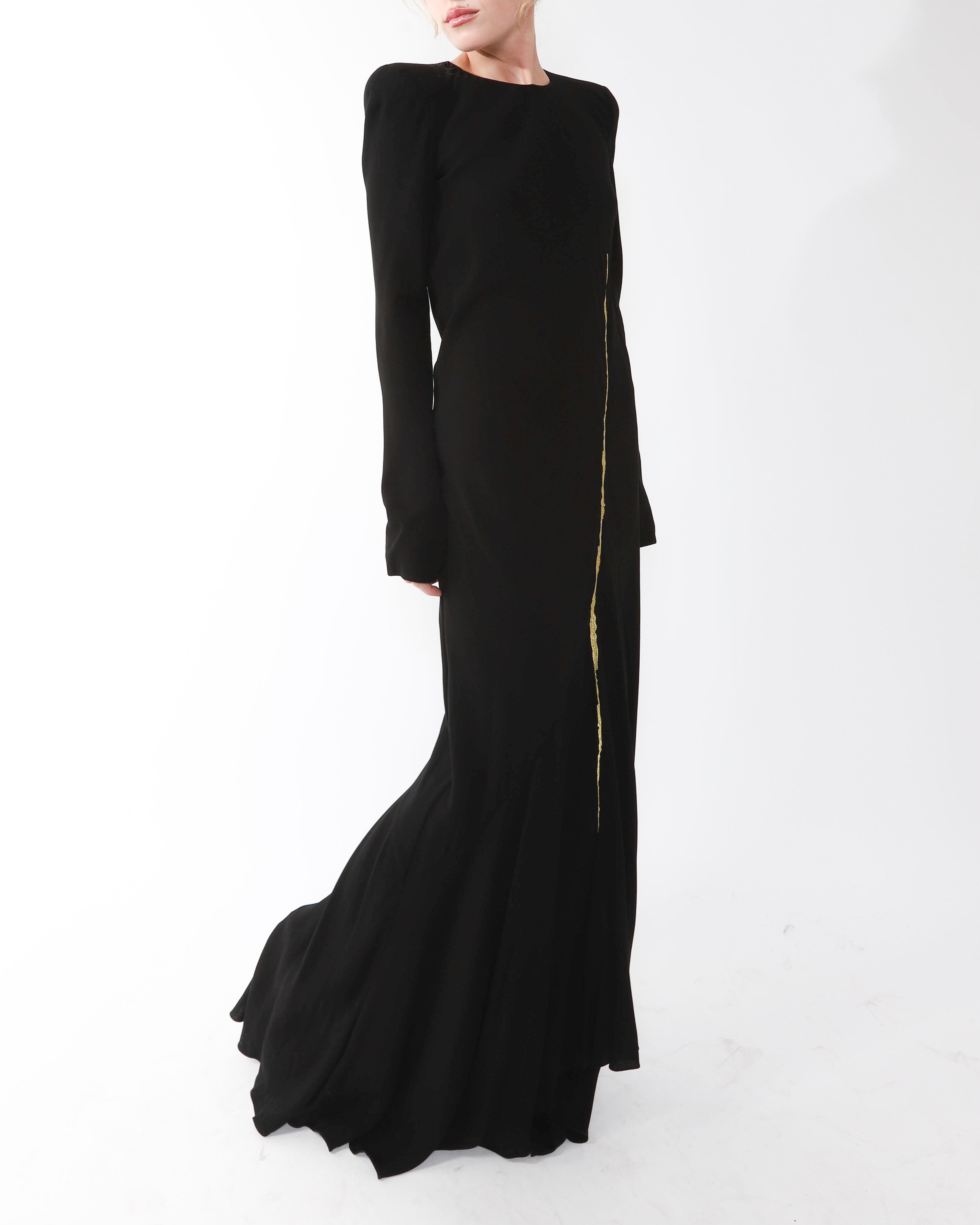 FW17 Maxi Dress with Gold Detail in Black Viscose