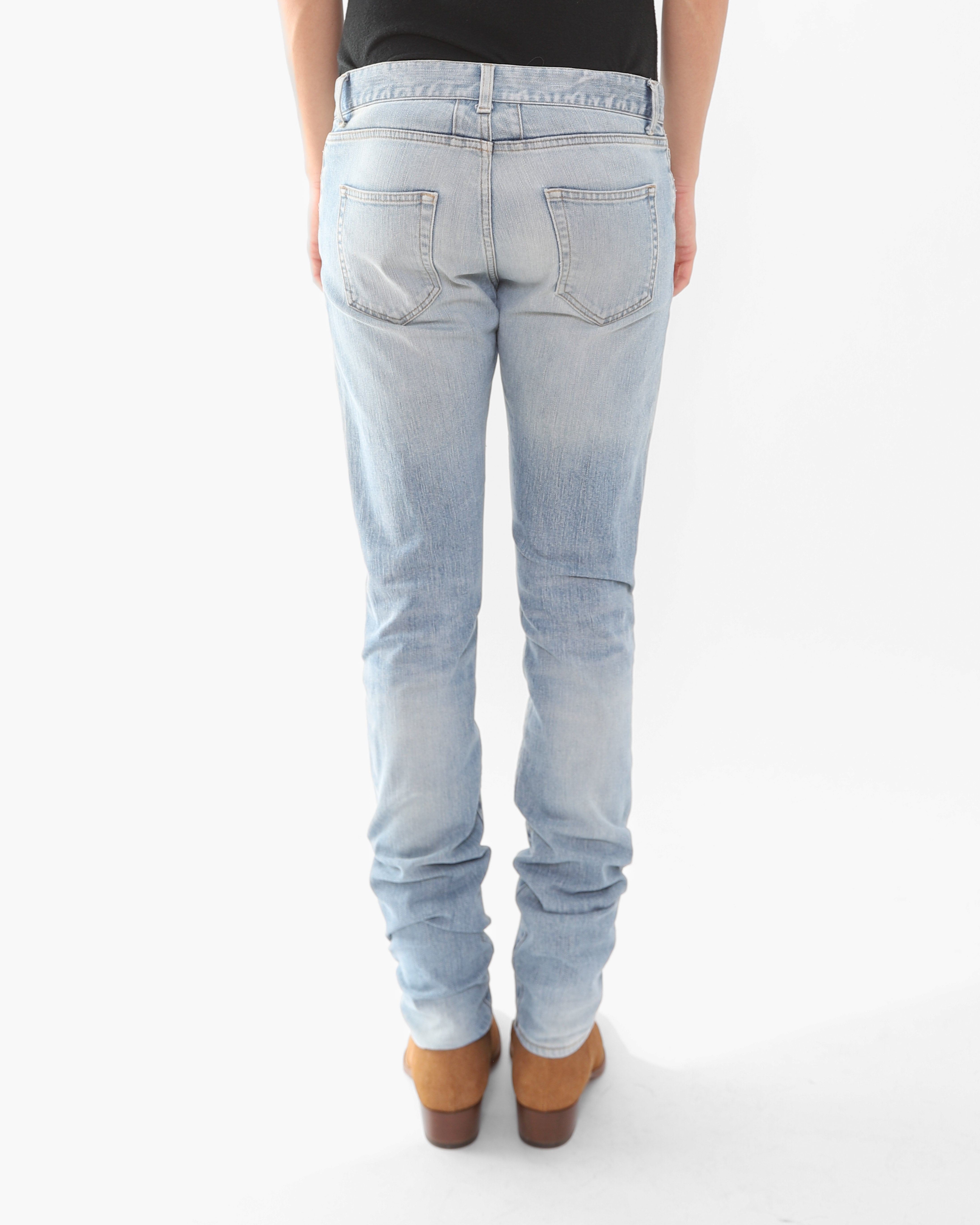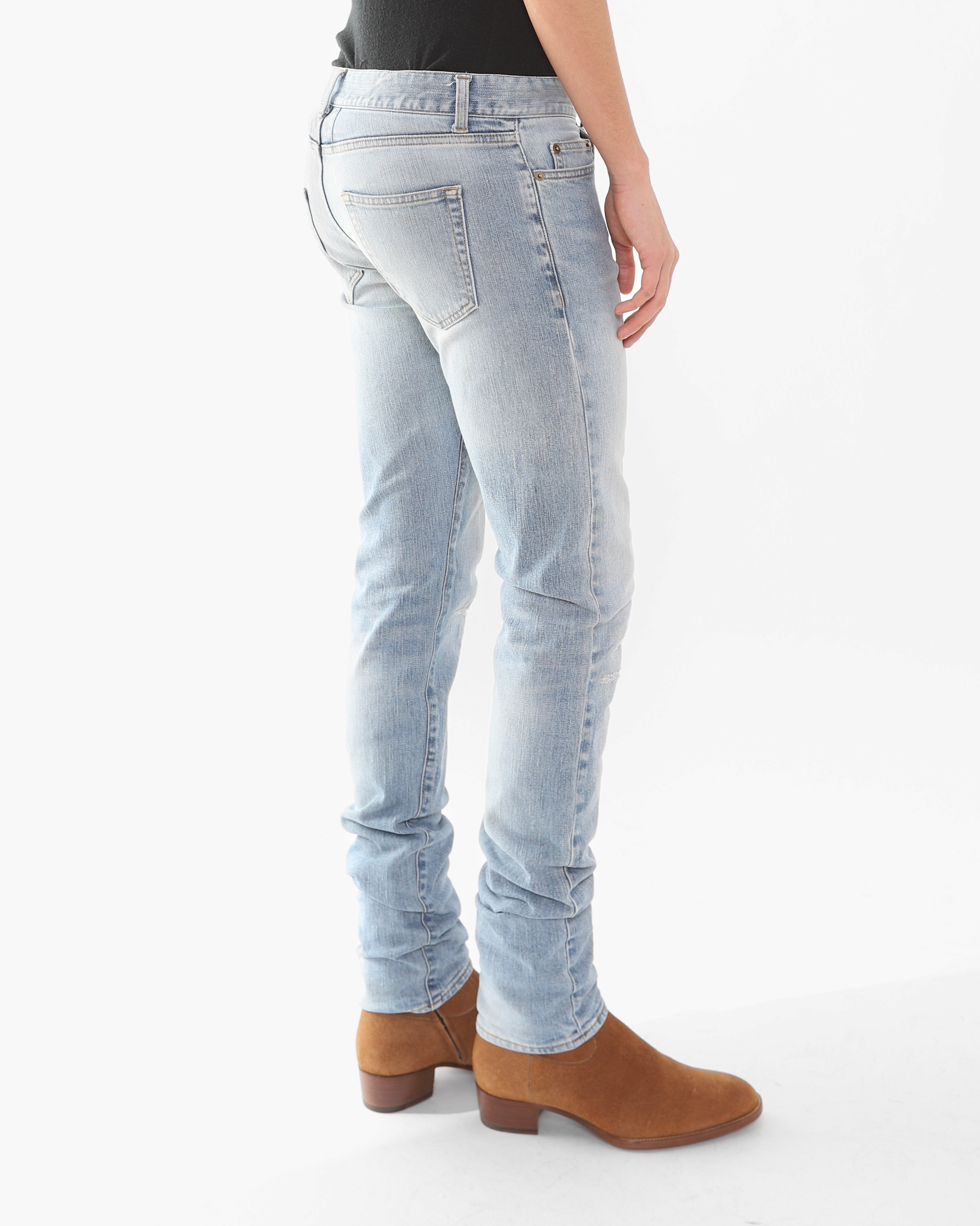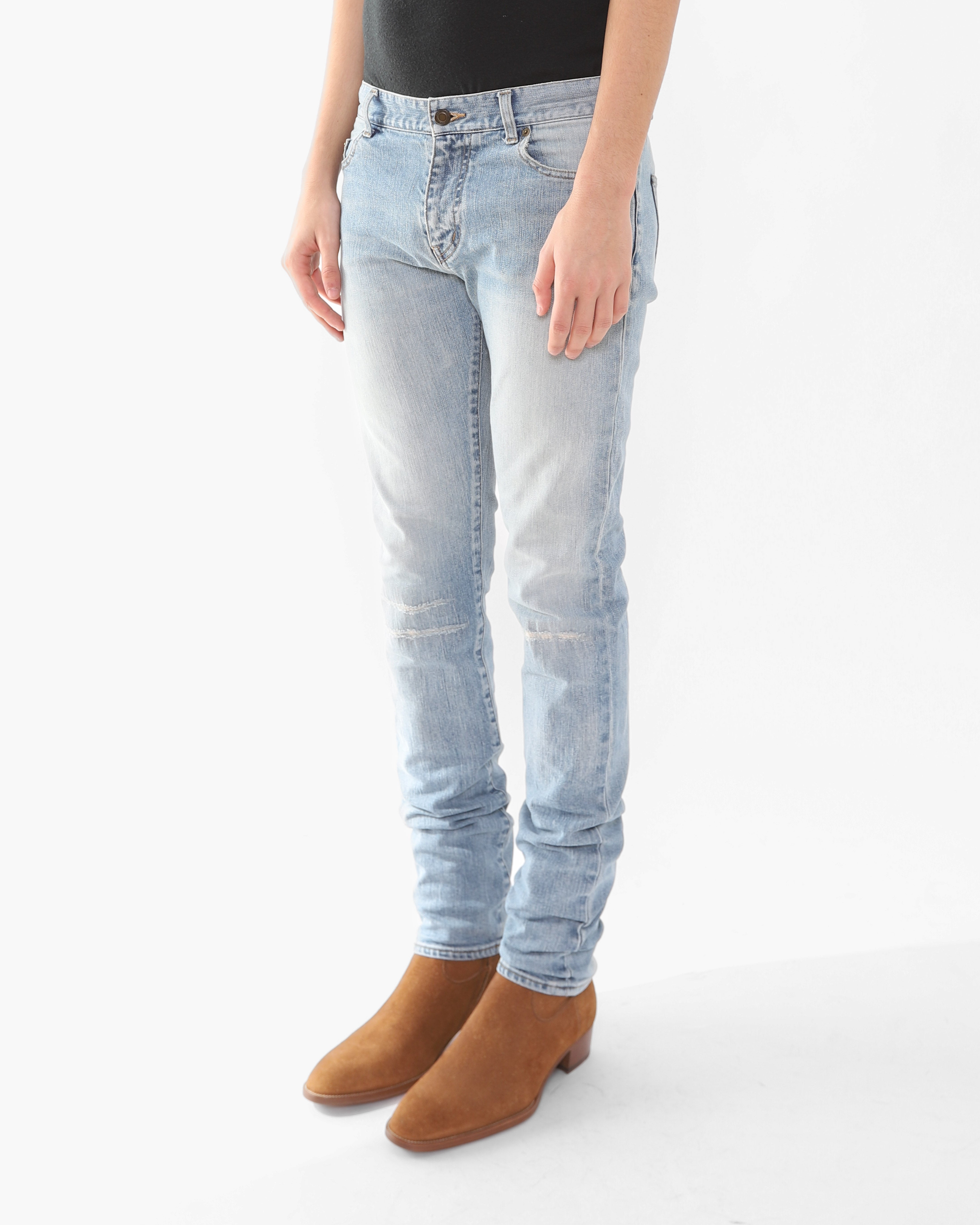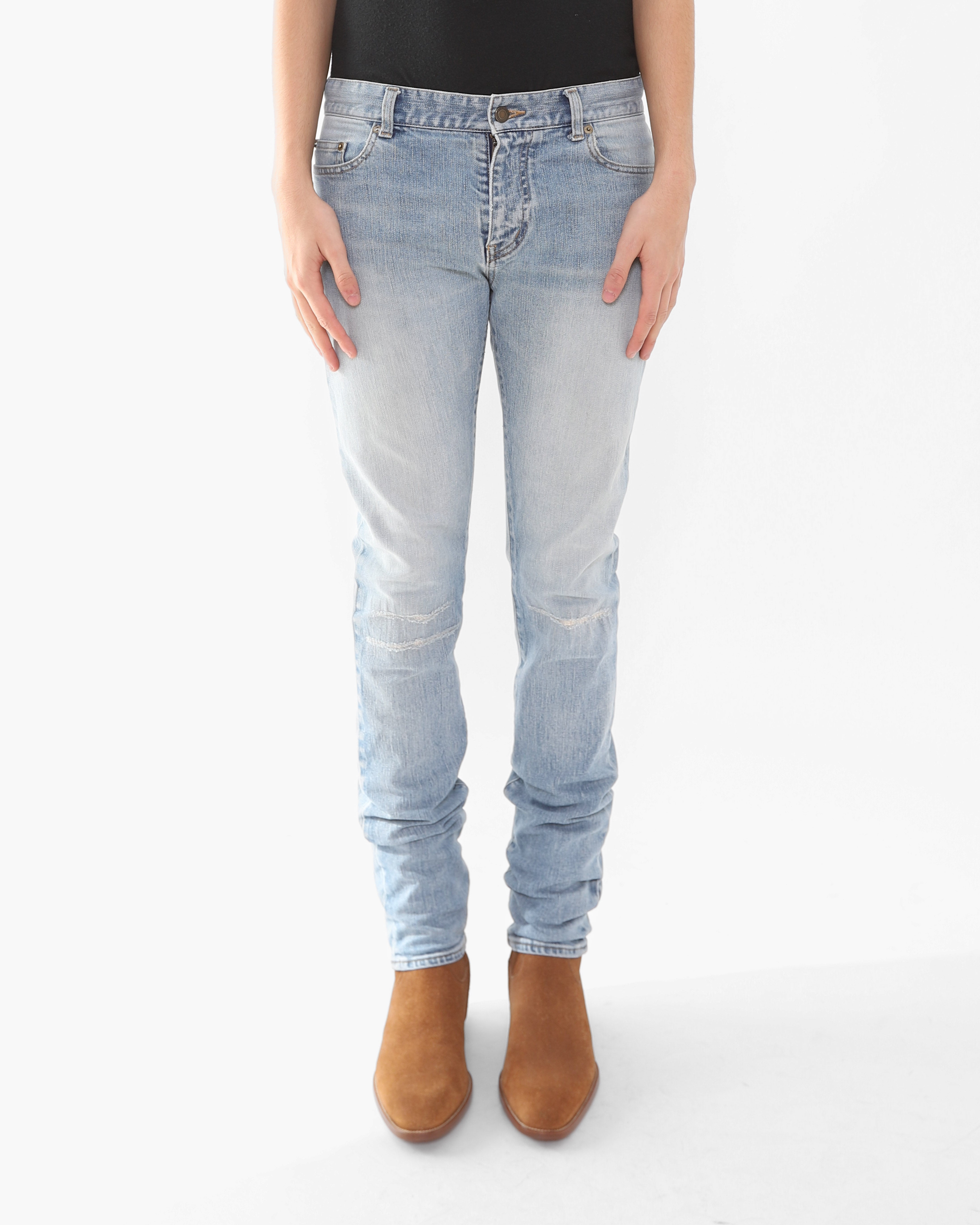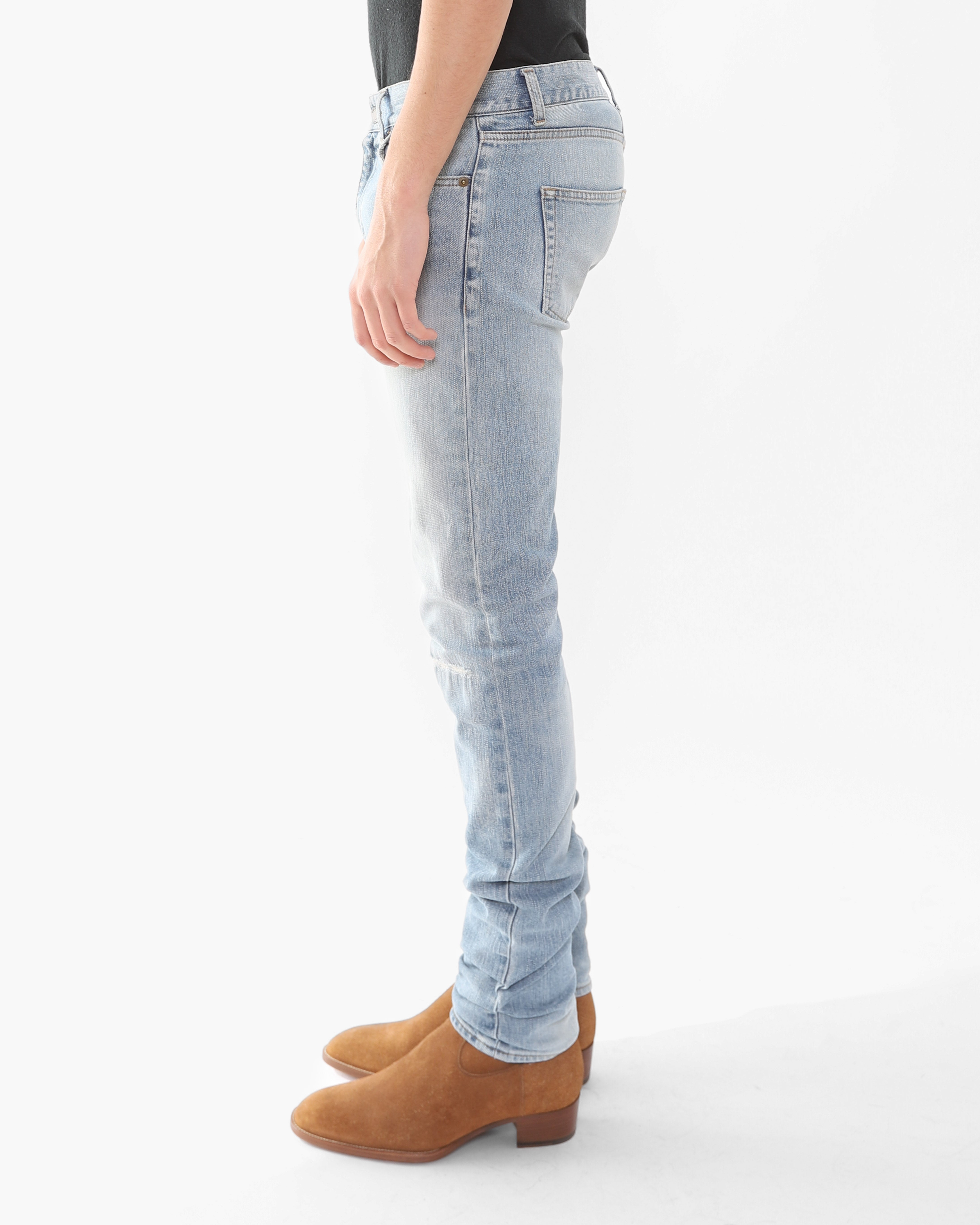 FW16 Patched Knee Skinny Jeans in Light Washed Denim