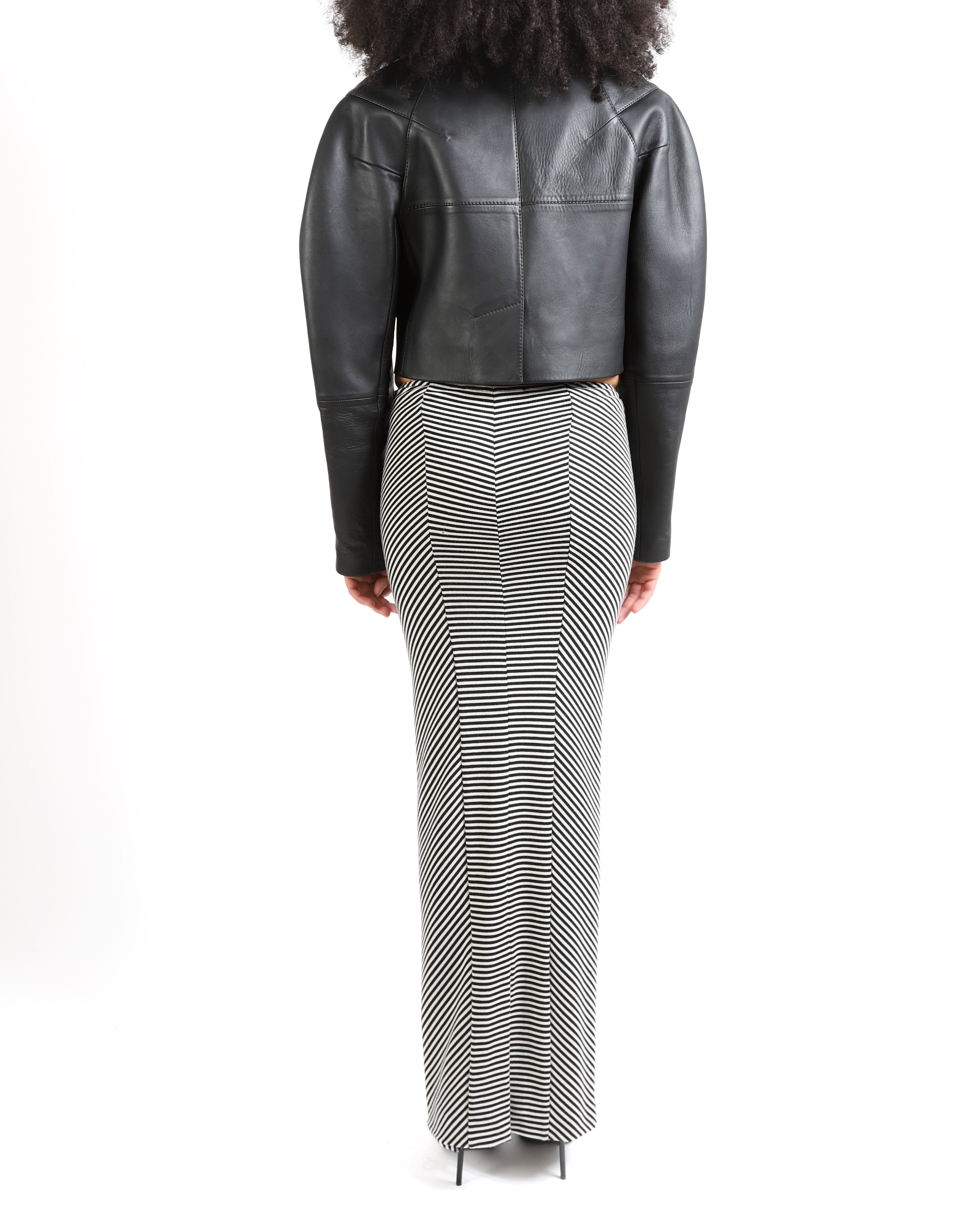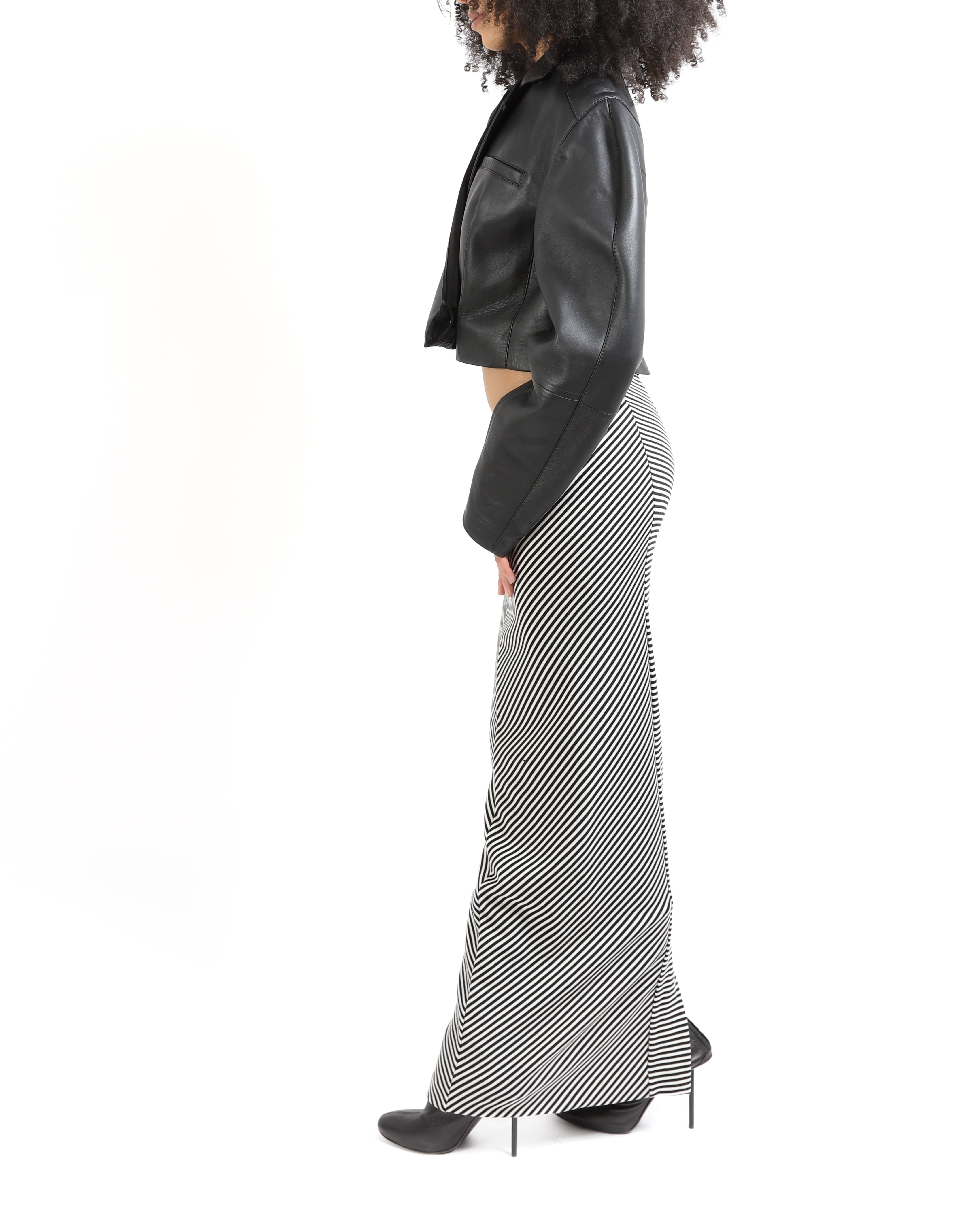 FW19 Low waisted Long Skirt in Black and White Striped Cotton