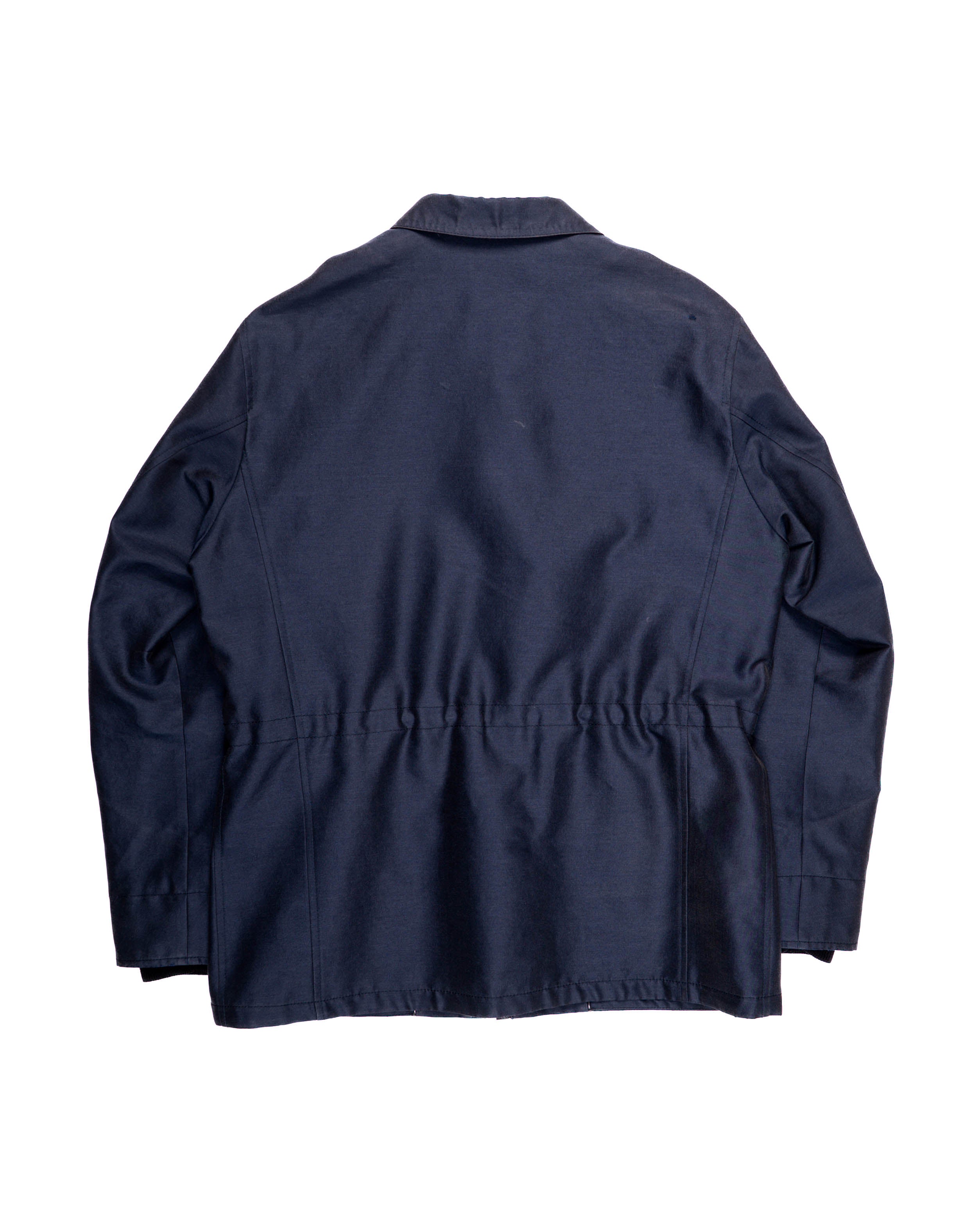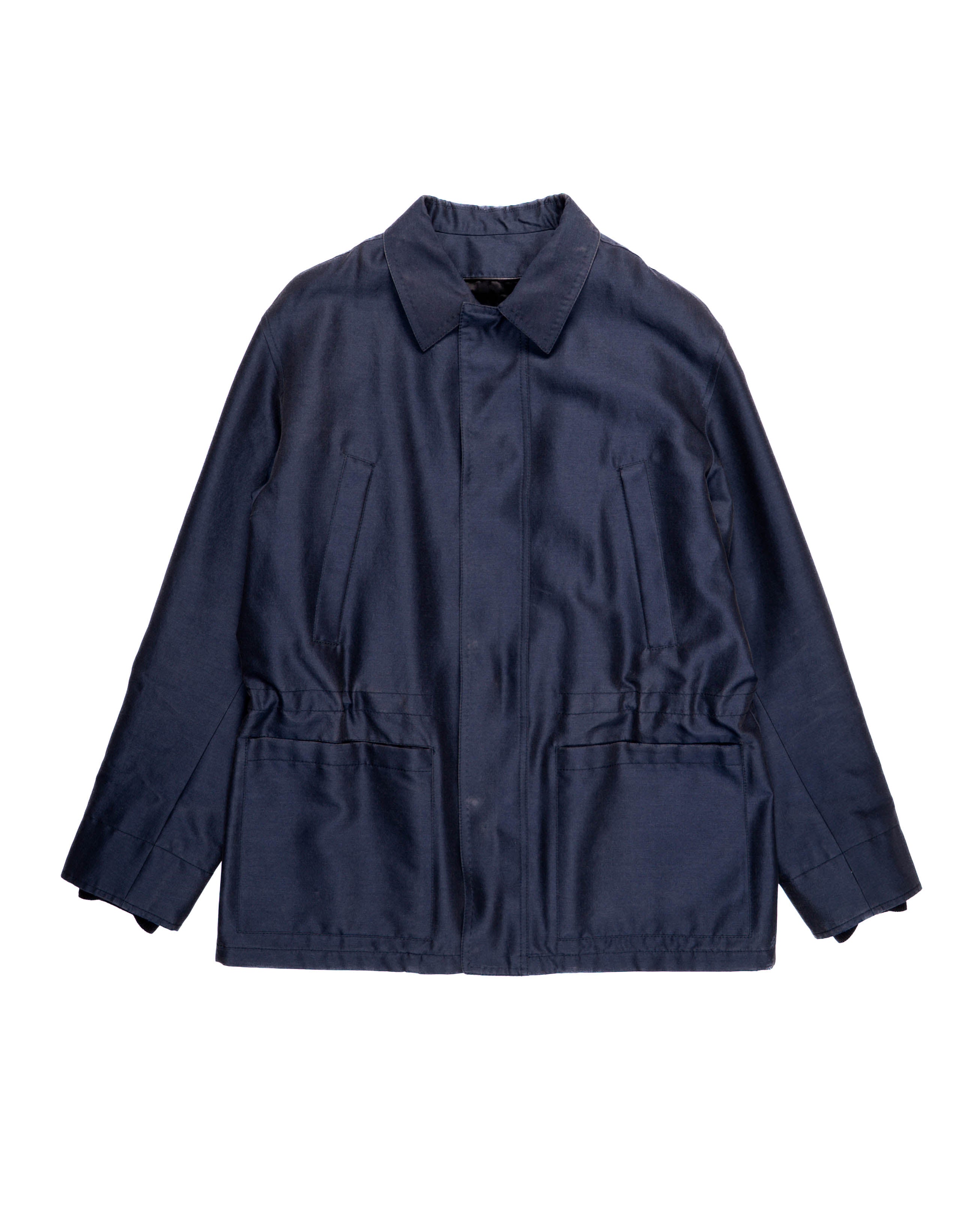 This military-inspired jacket from Berluti’s FW18 collection is crafted from a luxurious blue wool-silk blend, offering both structure and subtle sheen. The piece embodies Berluti’s refined approach to tailoring, merging utilitarian design elements with elegant ease.